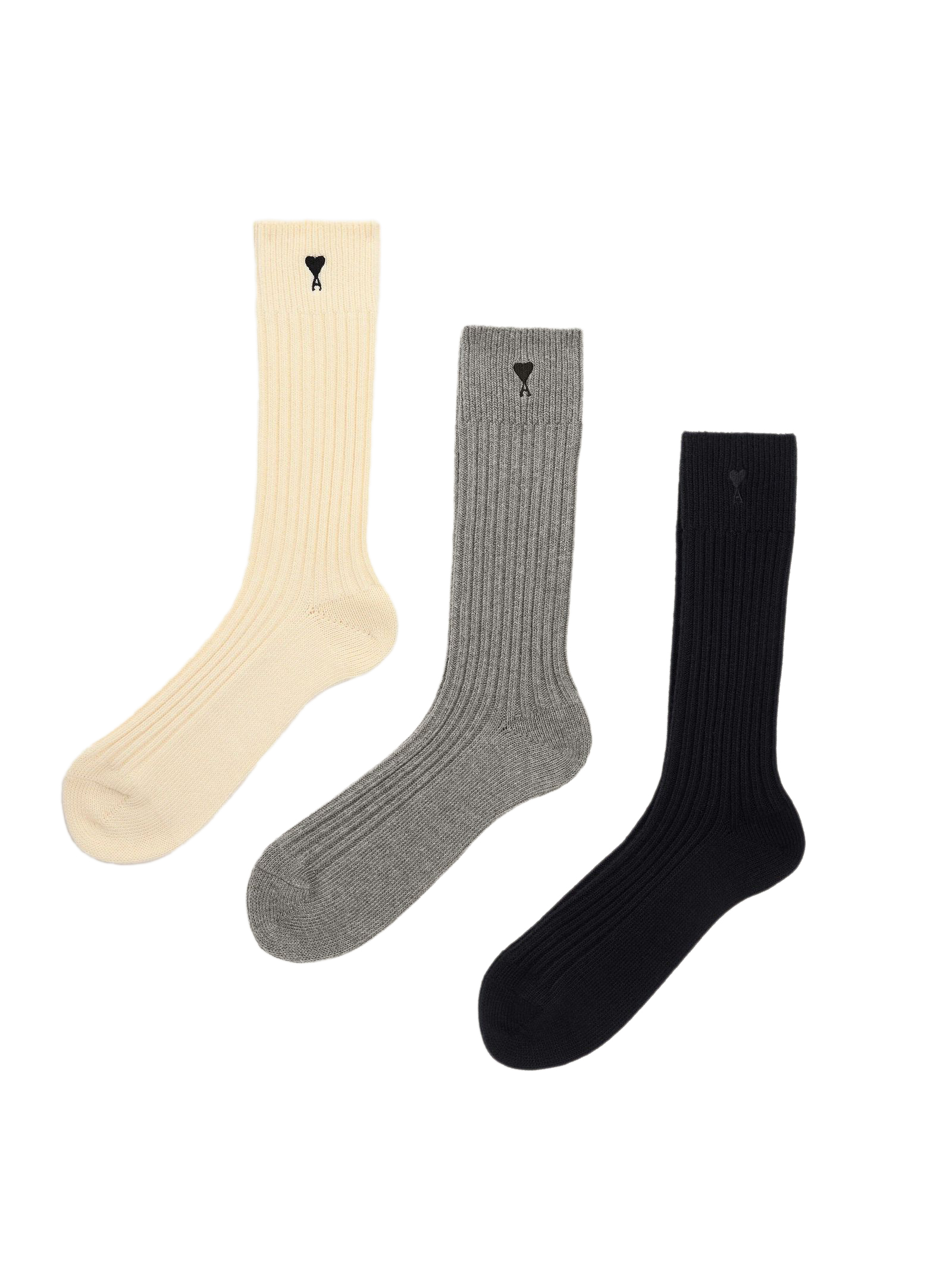 Confezione da tre paia di calzini in misto cotone, prodotto unisex, cotone biologico, ricamo Ami de Coeur a punto pieno in nero