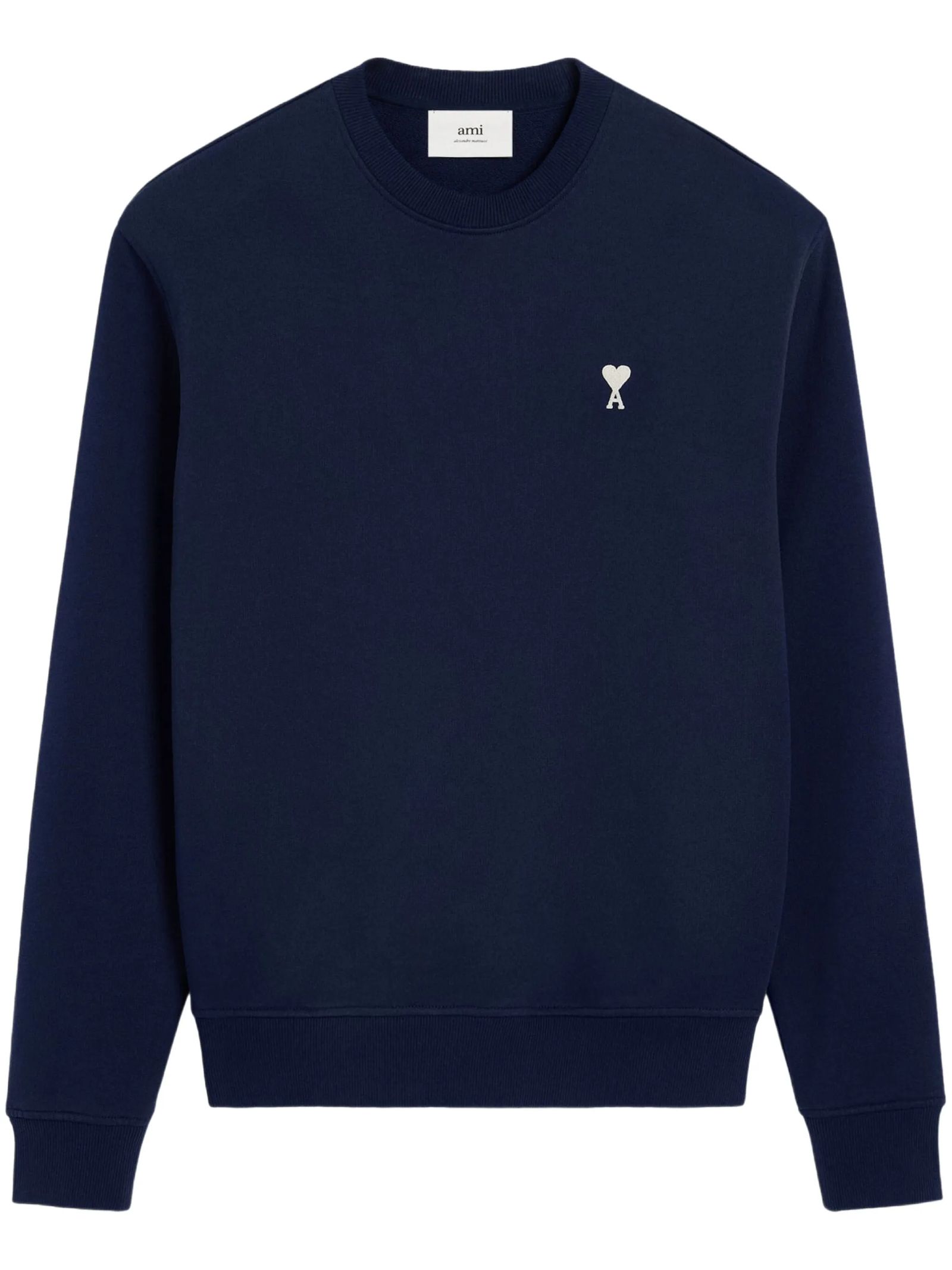Felpa in cotone blu, logo sul petto, girocollo, maniche con spalle scese, orlo e polsini a coste
