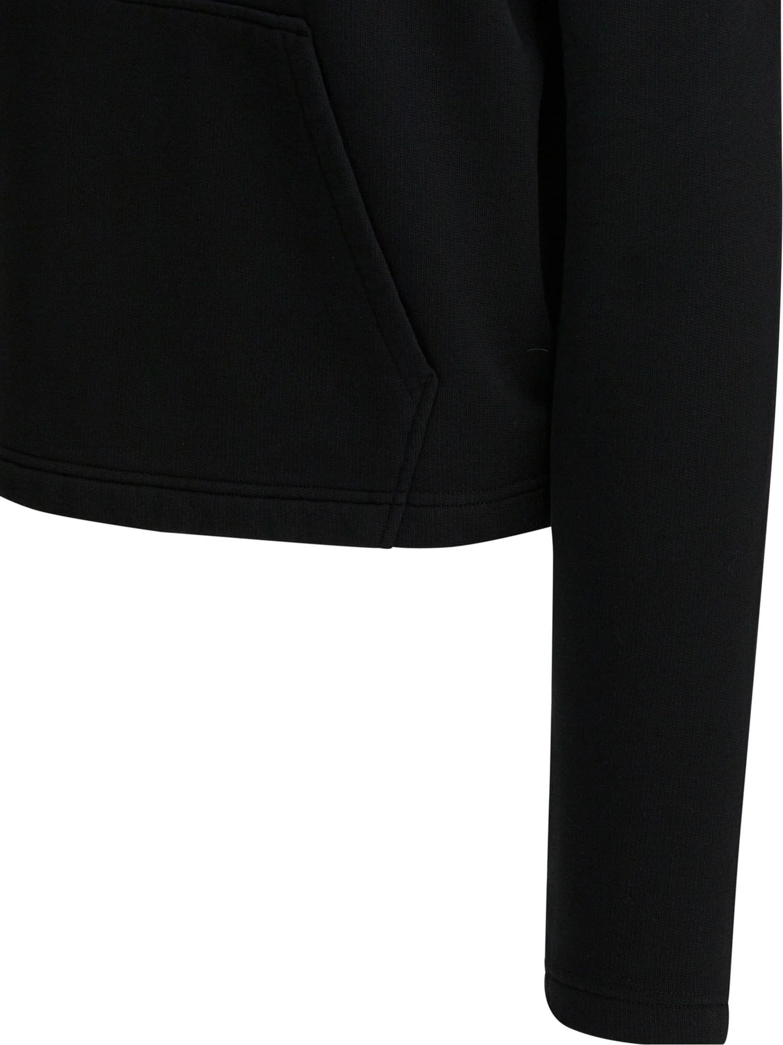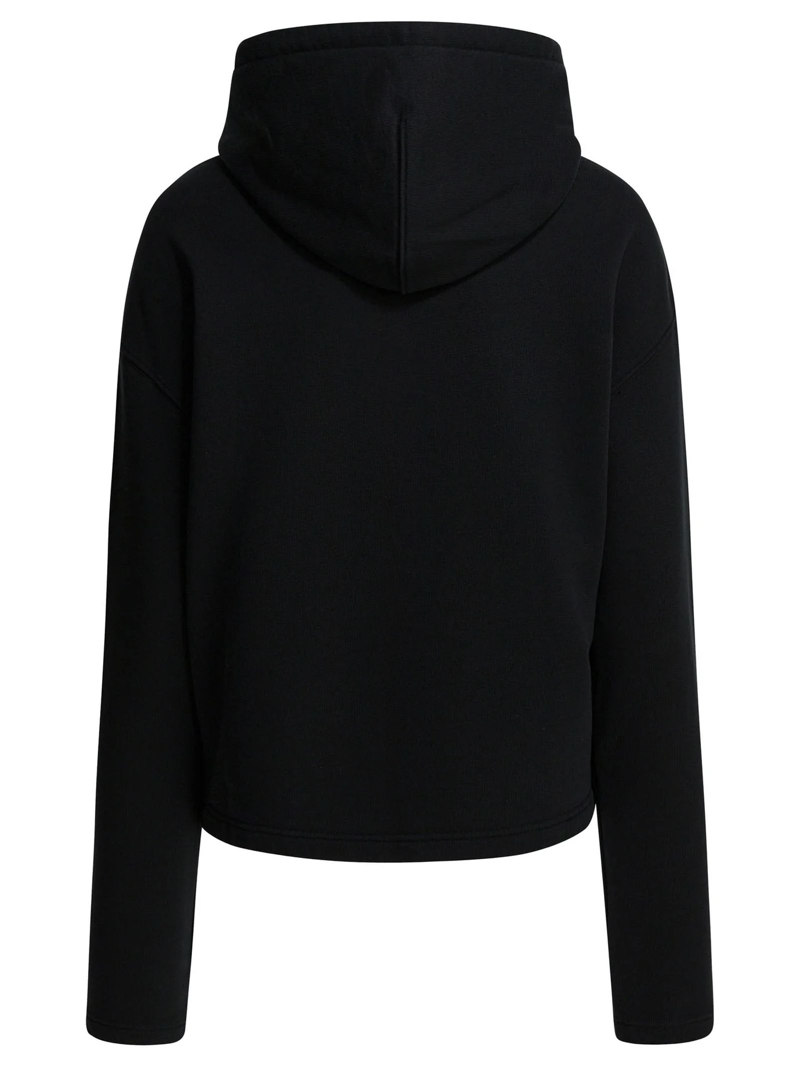 Felpa in cotone nero con cappuccio, cappuccio con coulisse, applicazione con logo, tasca a marsupio frontale, maniche lunghe, orlo a coste