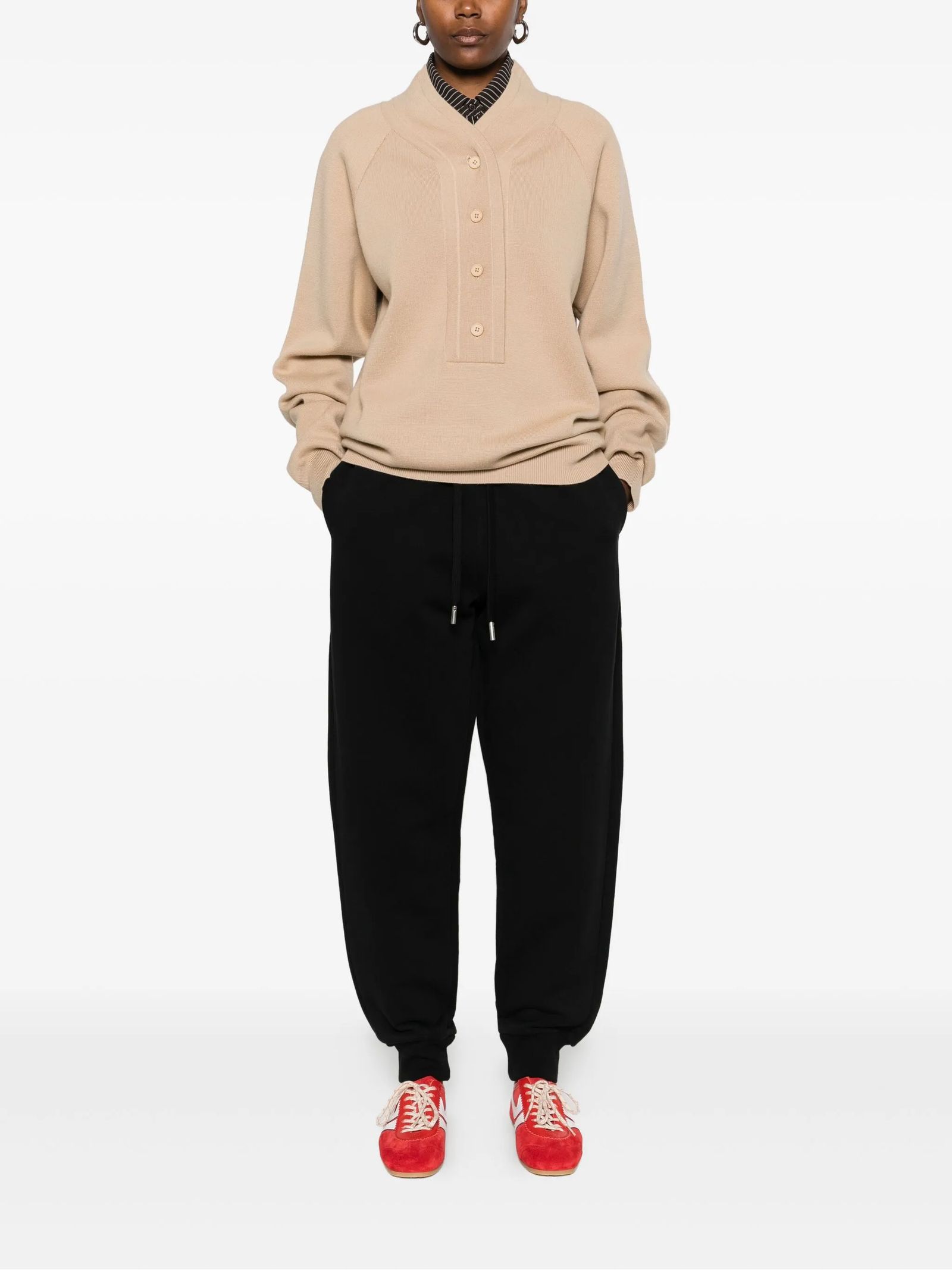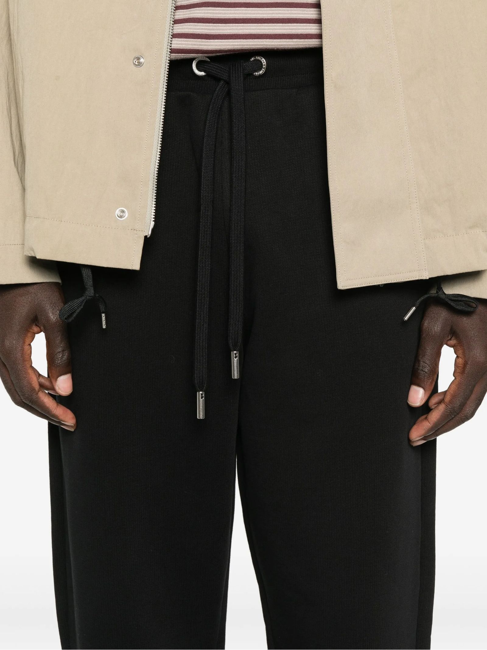 Pantaloni sportivi in cotone nero, chiusura con coulisse, orlo con risvolto, senza pinces