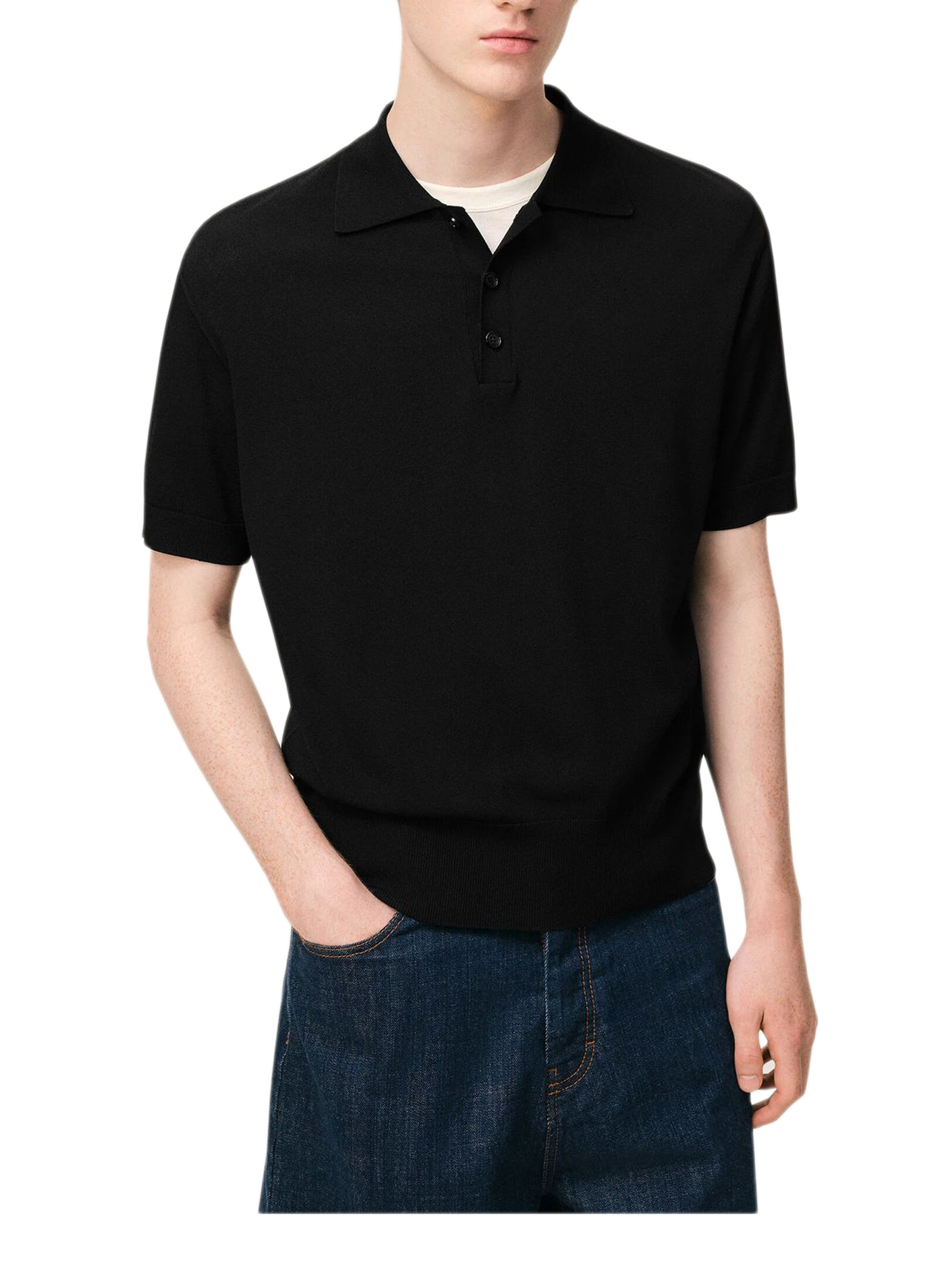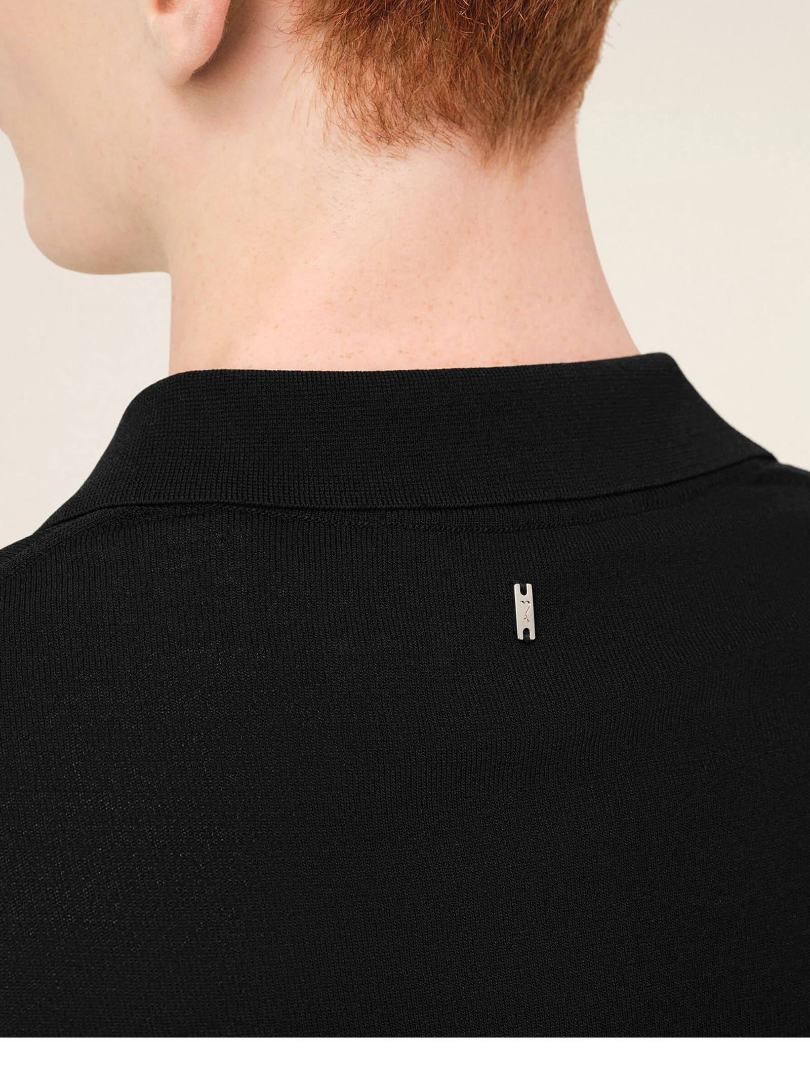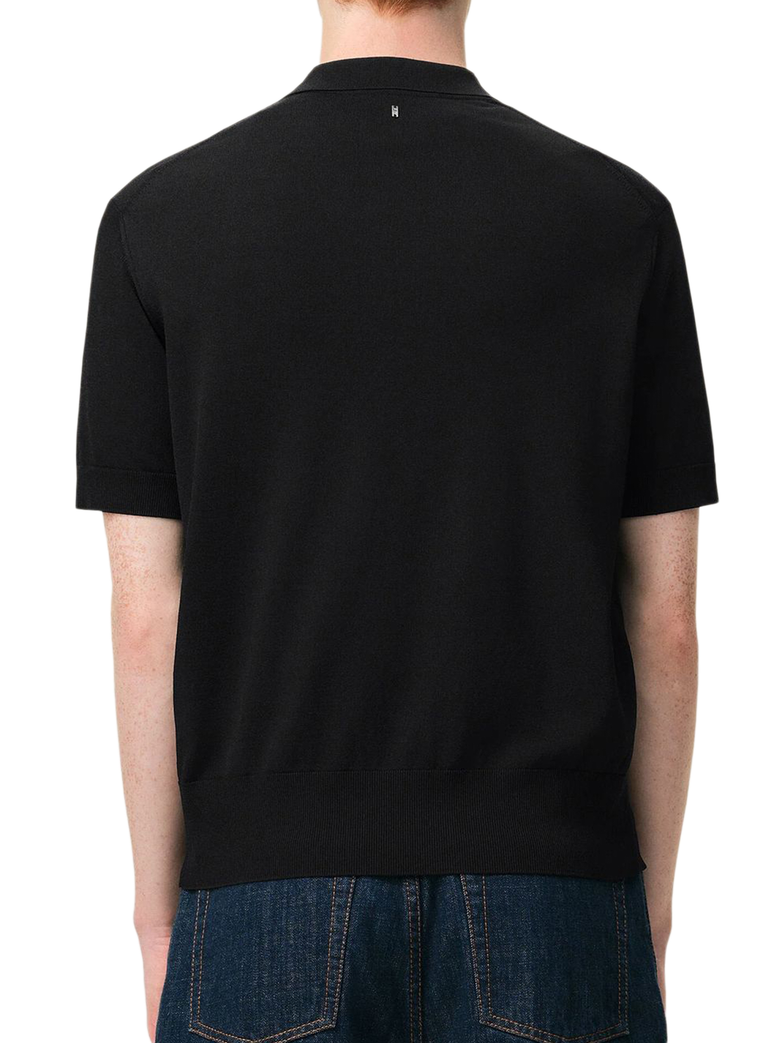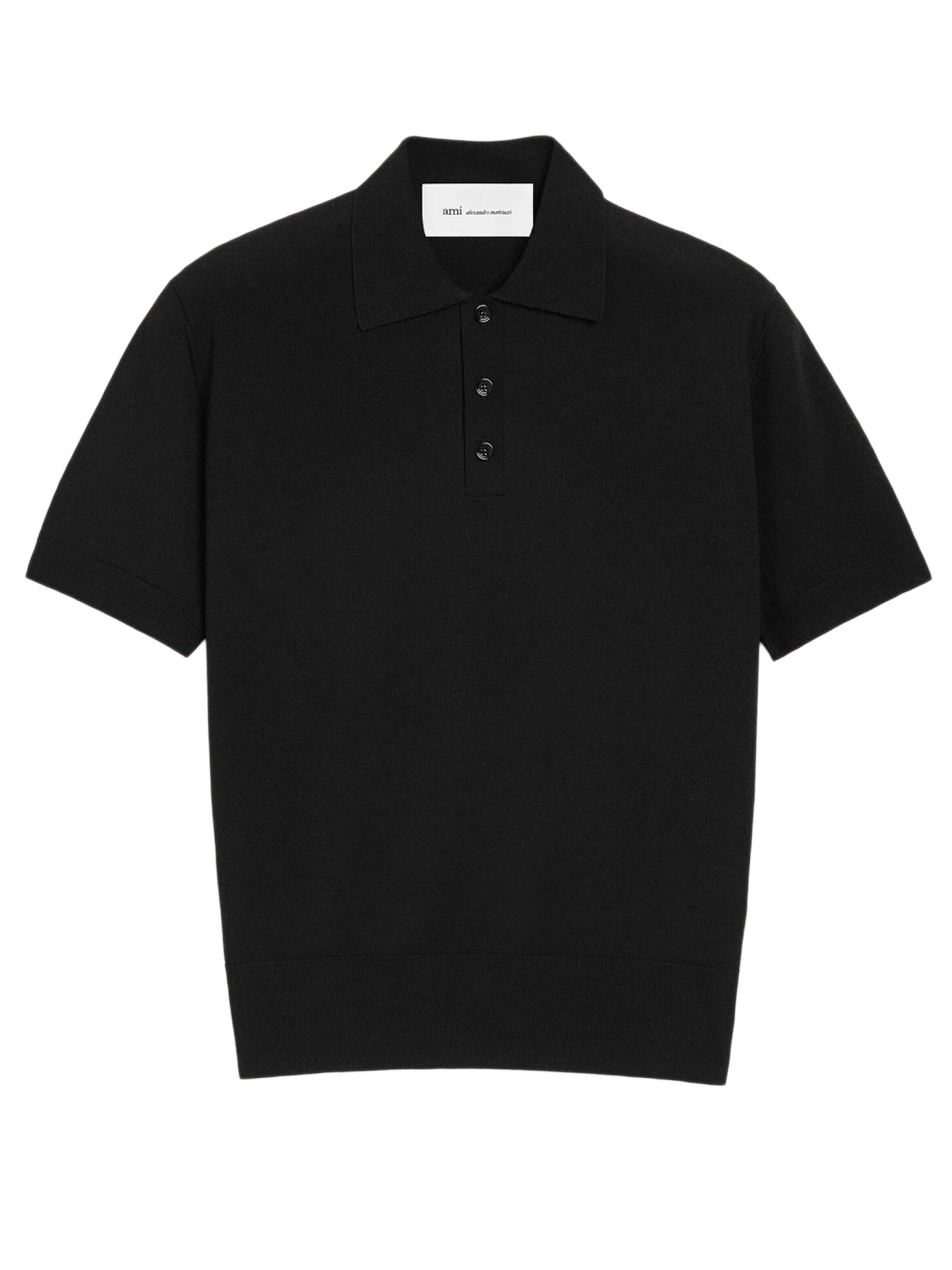 Polo in maglia leggera di viscosa, colletto alla camicia, maniche corte, lavorazione a maglia jersey, bottoni Ami Galalithe, placca Ami de Coeur sul retro sotto il colletto