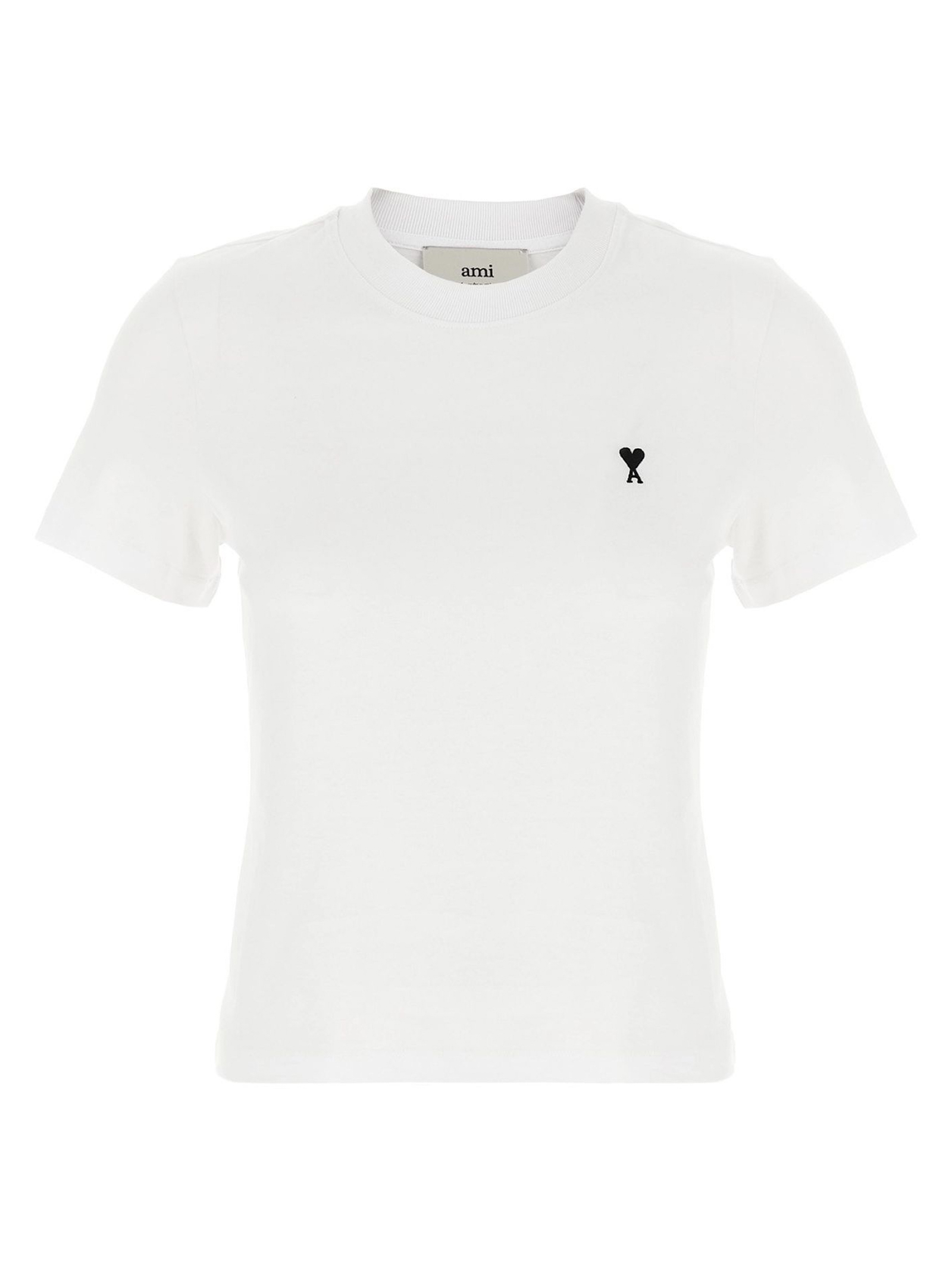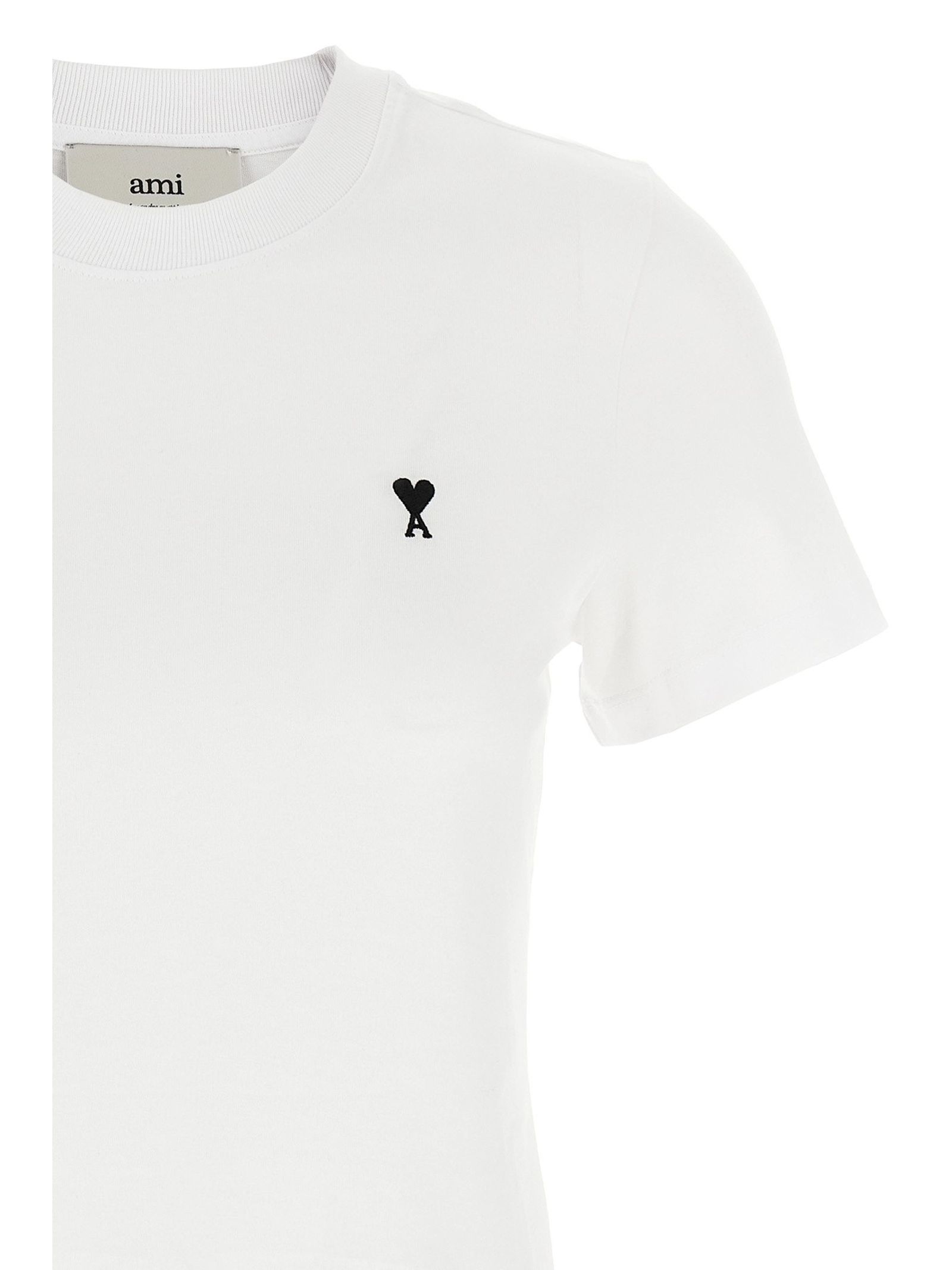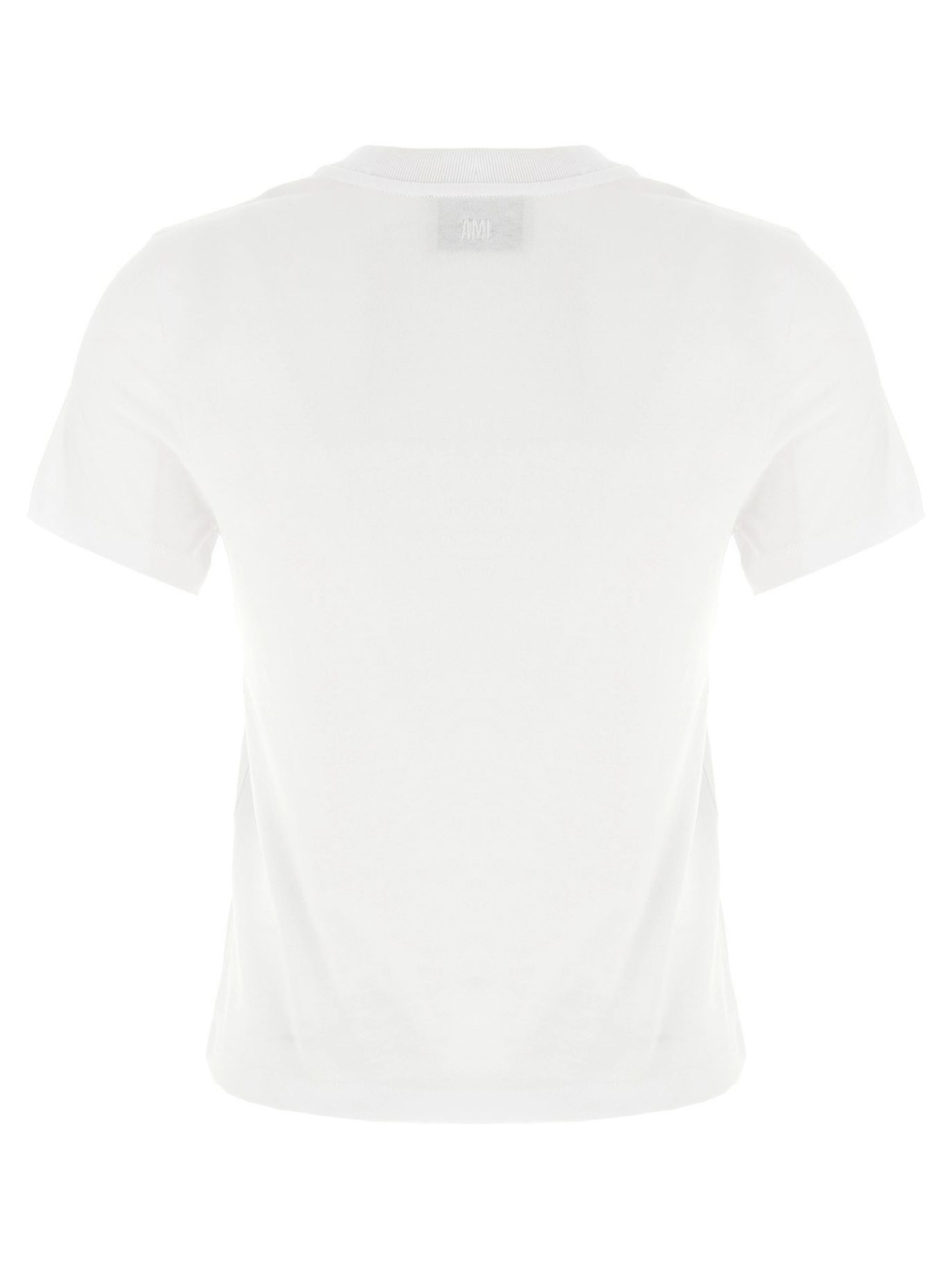 T-shirt Ami de Coeur in cotone a coste, ricamo Ami de Coeur bianco crema al centro del petto, ricamo AMI tono su tono alla base del collo sul retro