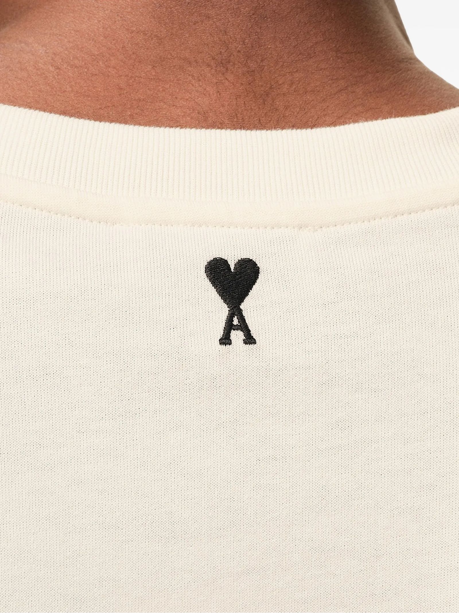 T-shirt a maniche corte in jersey di cotone pesante, prodotto unisex, vestibilità boxy, Stampa firma sul davanti, ricamo sotto lo scollo posteriore Ami de Coeur nero