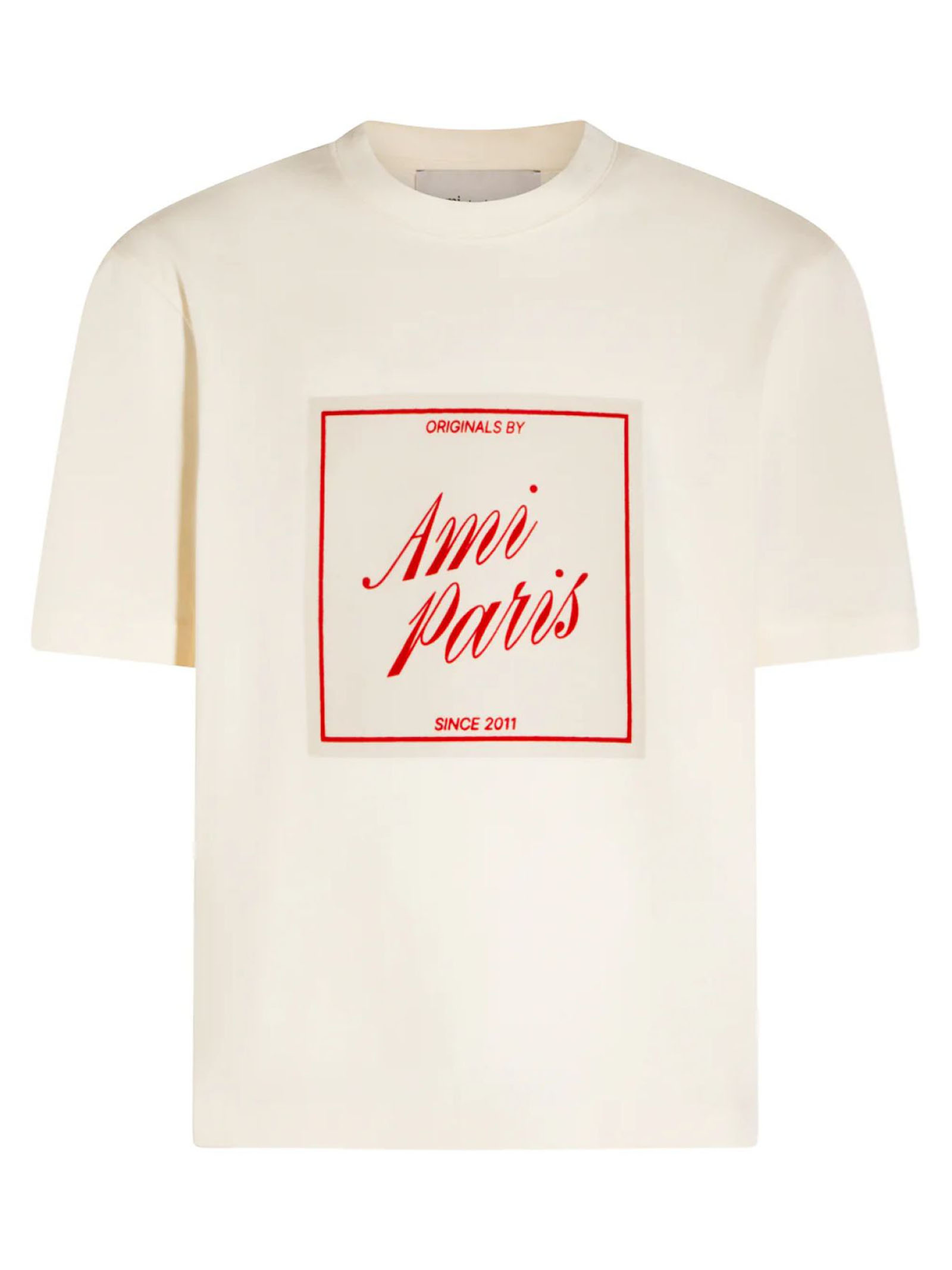 T-shirt a maniche corte in jersey di cotone pesante, prodotto unisex, vestibilità boxy, Stampa firma sul davanti, ricamo sotto lo scollo posteriore Ami de Coeur nero