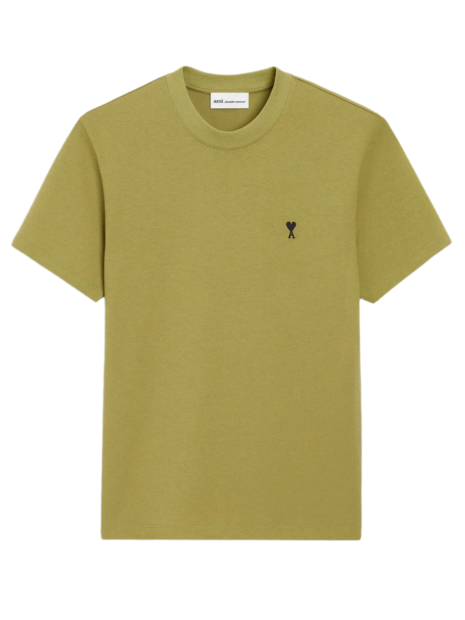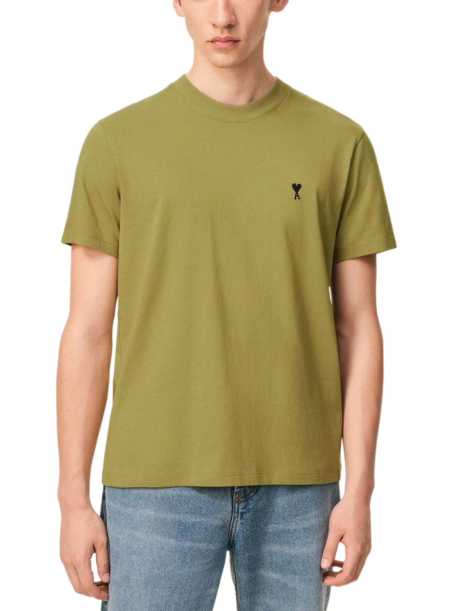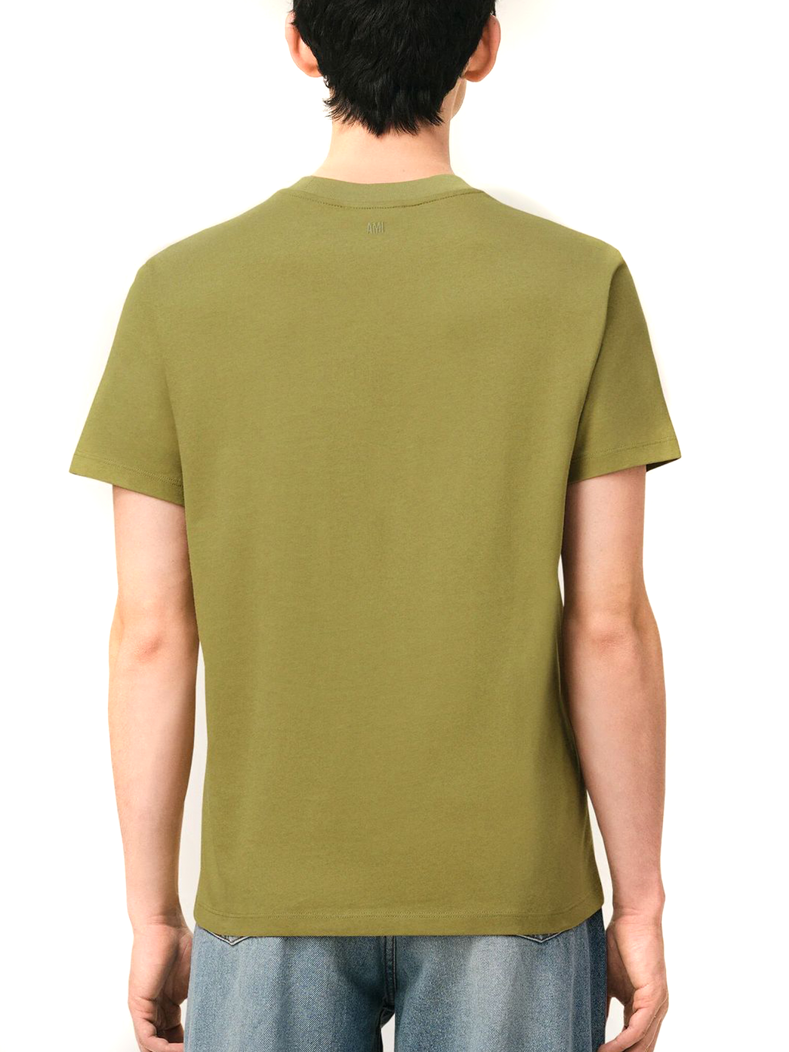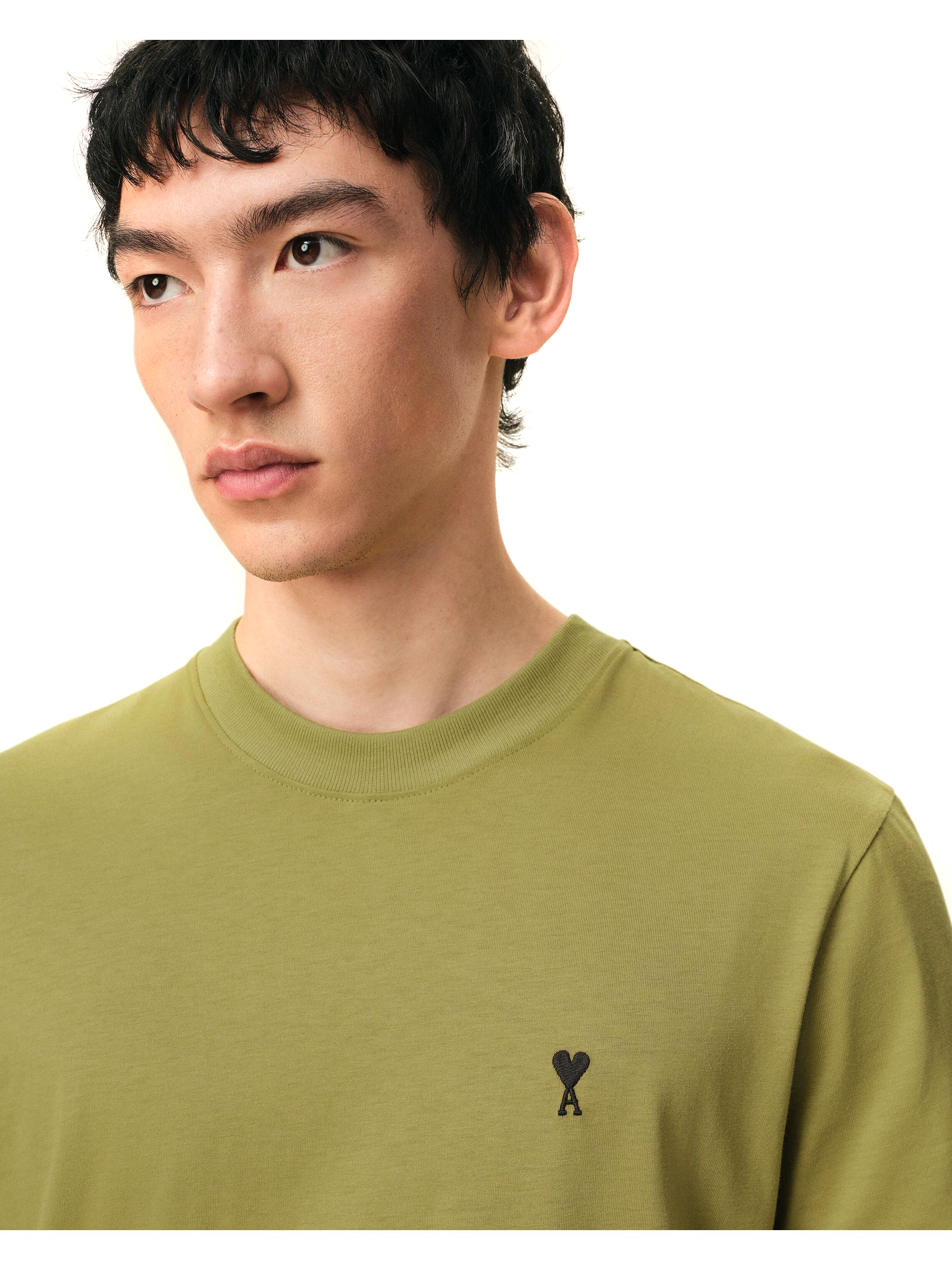T-shirt in jersey di cotone verde, vestibilità classica, ricamo Ami de Coeur bianco sul petto, ricamo Ami tono su tono sotto lo scollo posteriore.