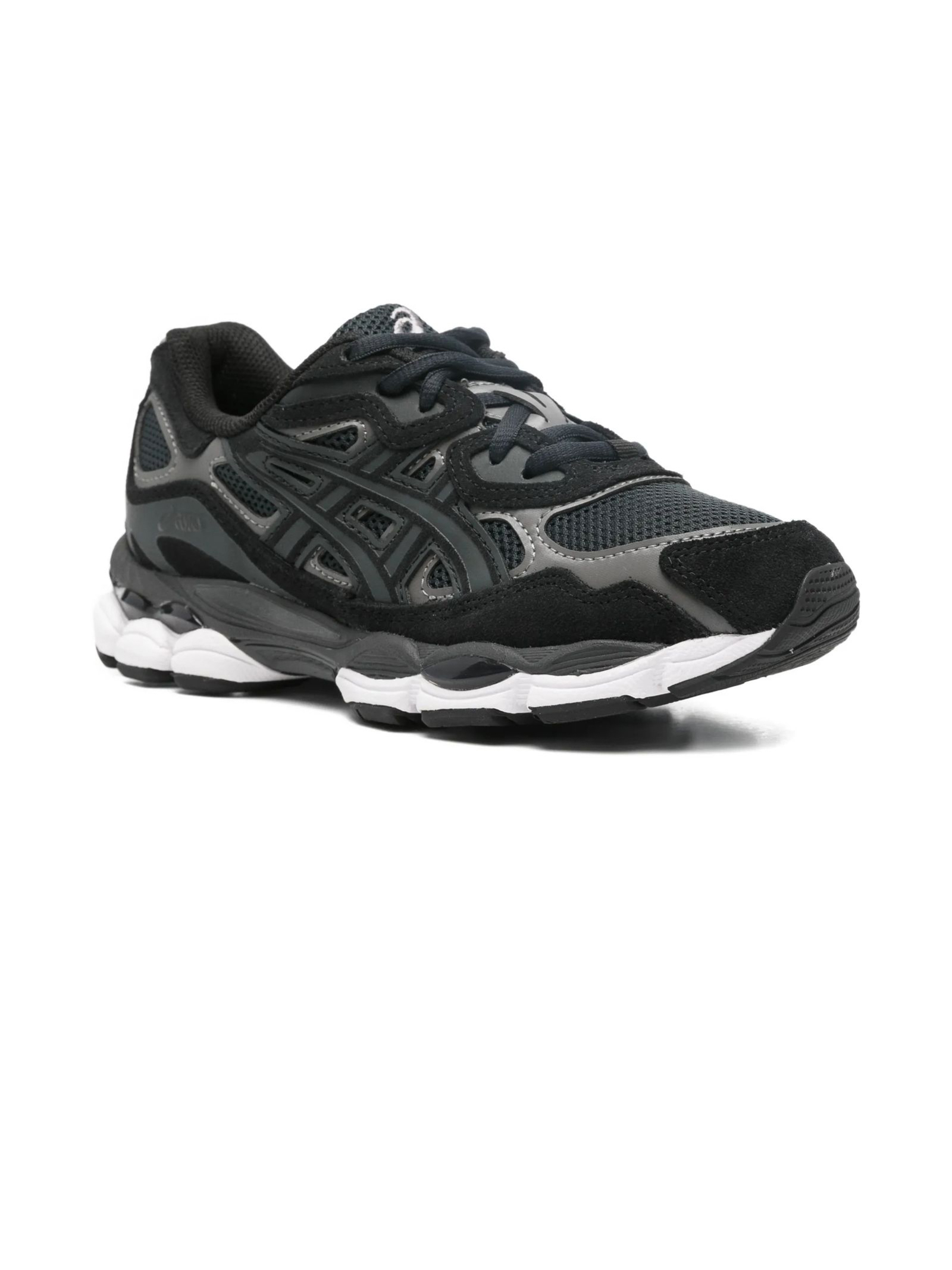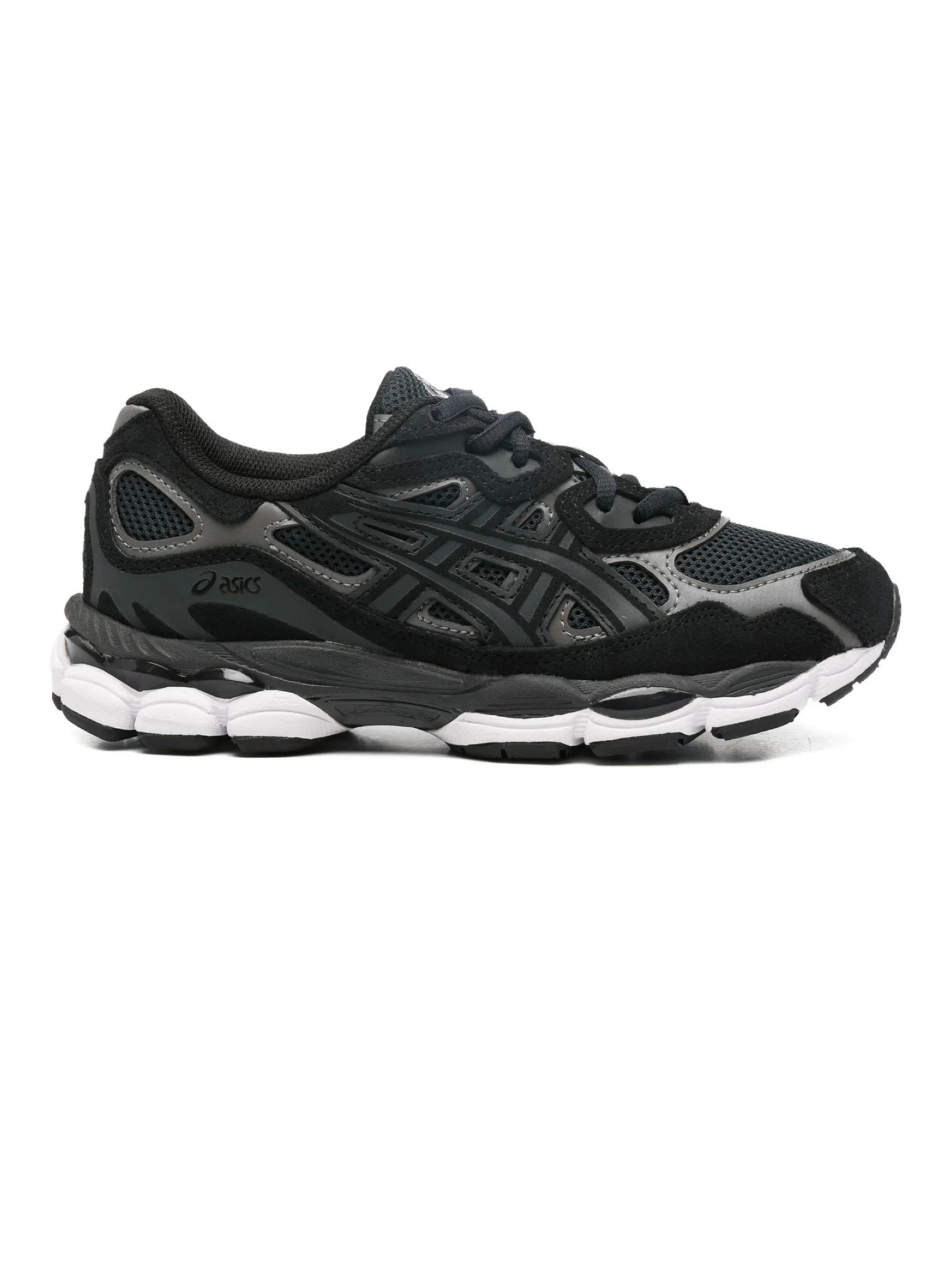 Sneakers Gel-NYC grigio grafite, dettaglio logo, punta arrotondata, chiusura con lacci, suola in gomma