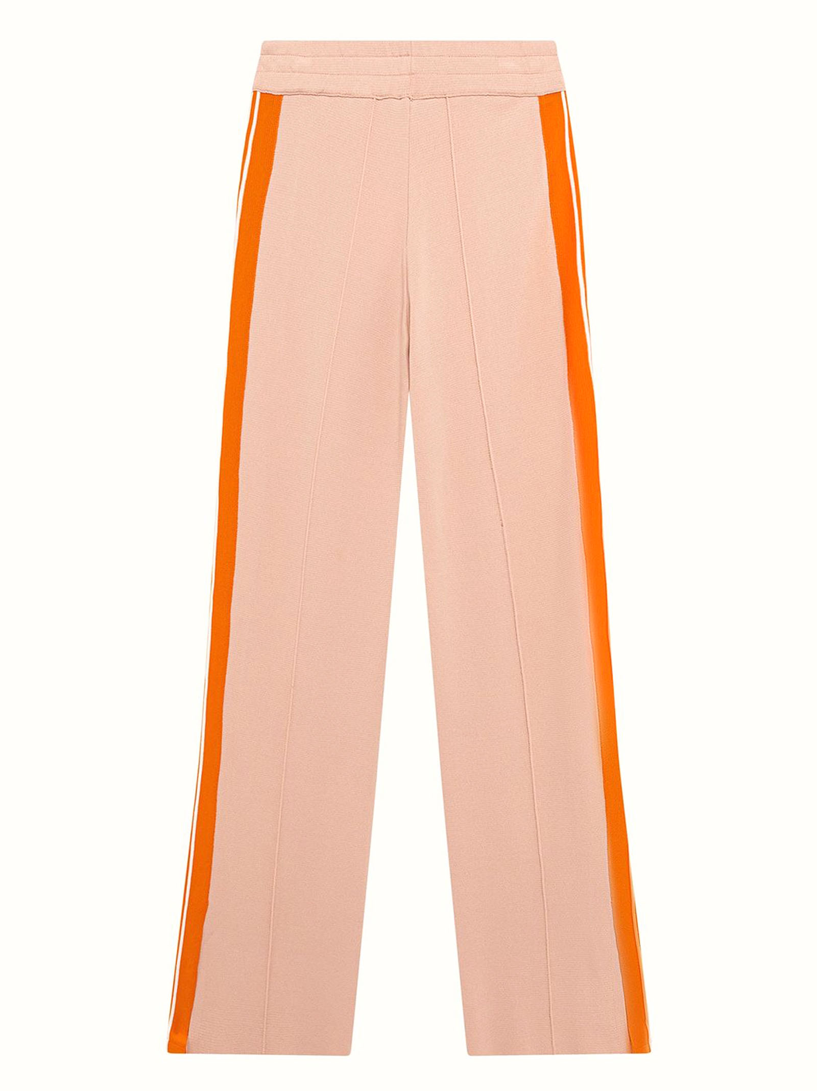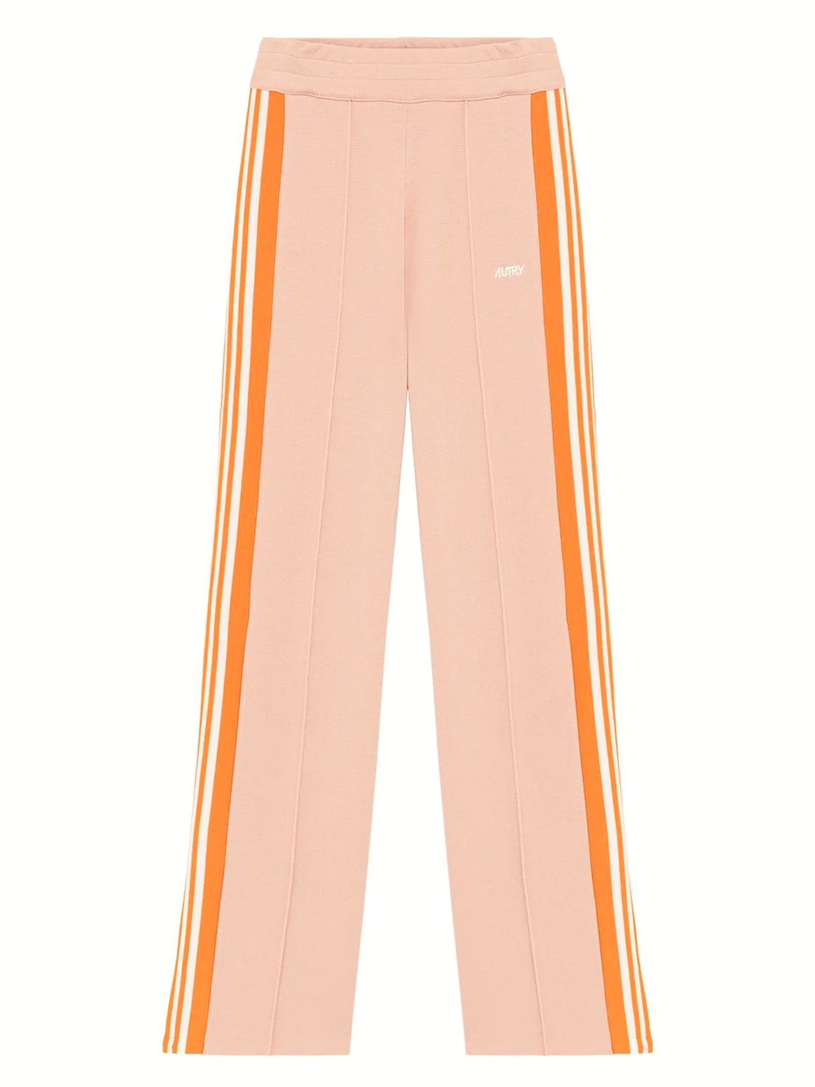 Joggers In Viscosa Lavorata A Maglia Stile Tennis, Gamba dritta, spacchetto sul fondo, Banda laterale a strisce in contrasto, Logo Autry ricamato, Regular fit