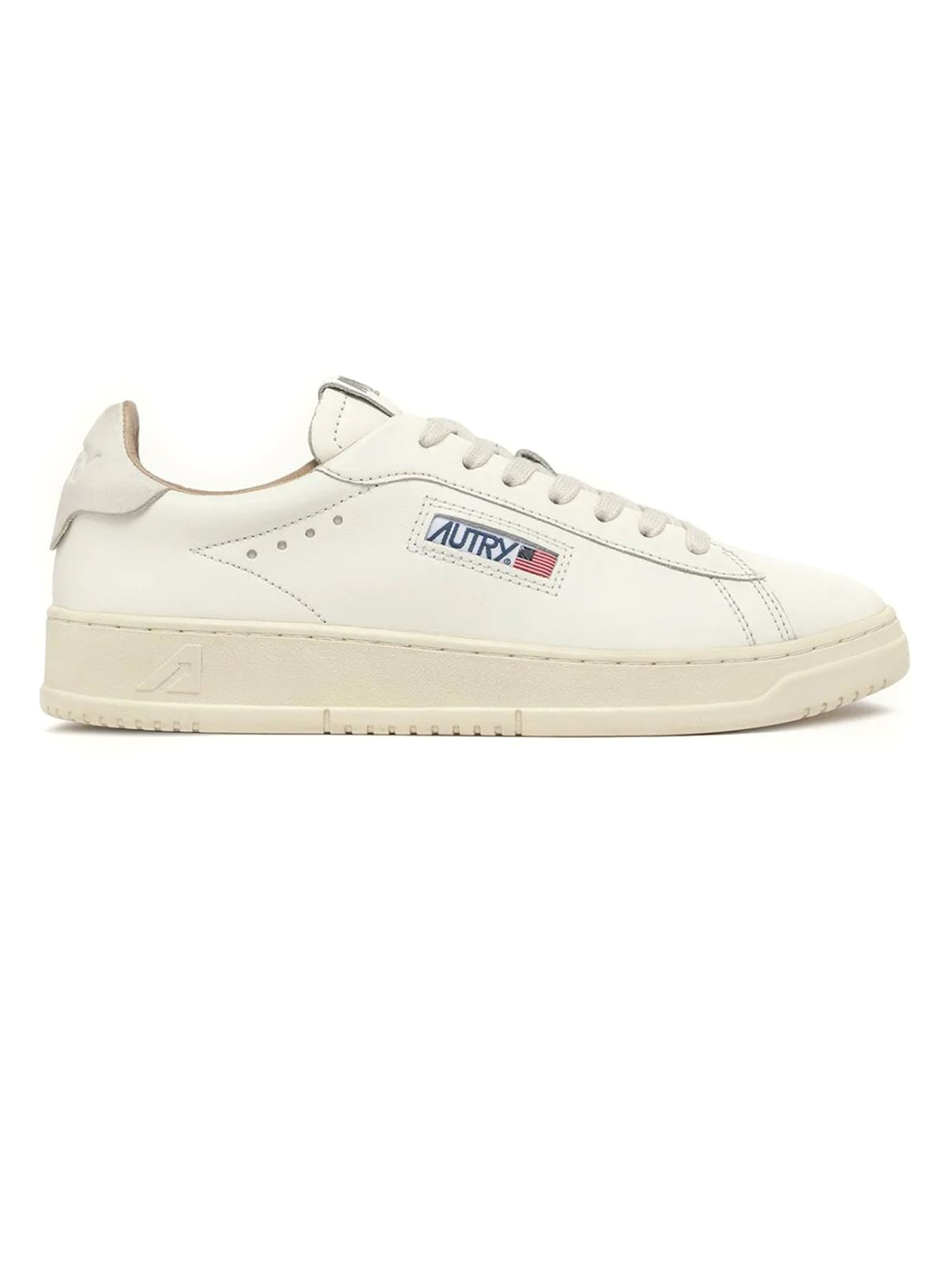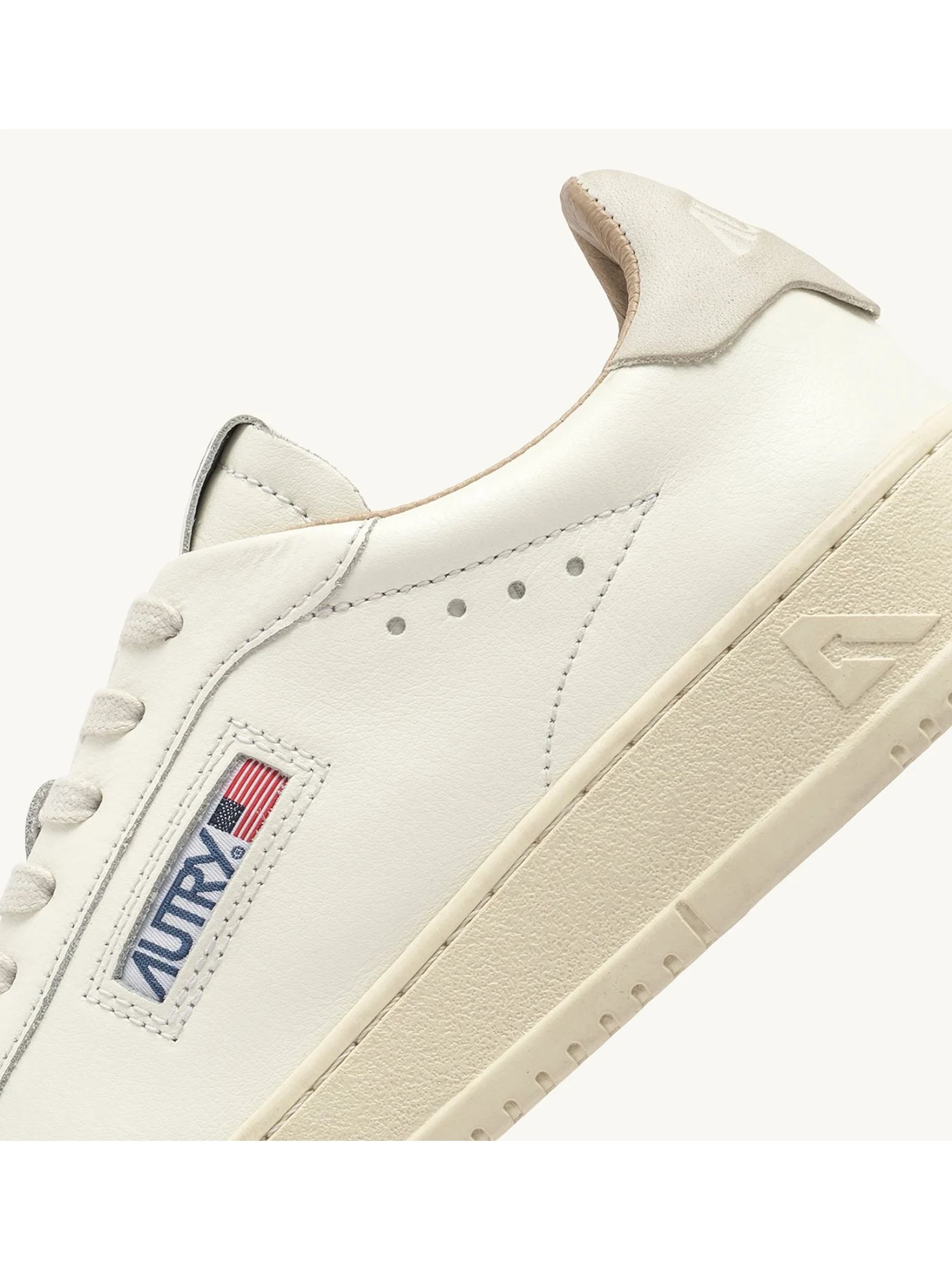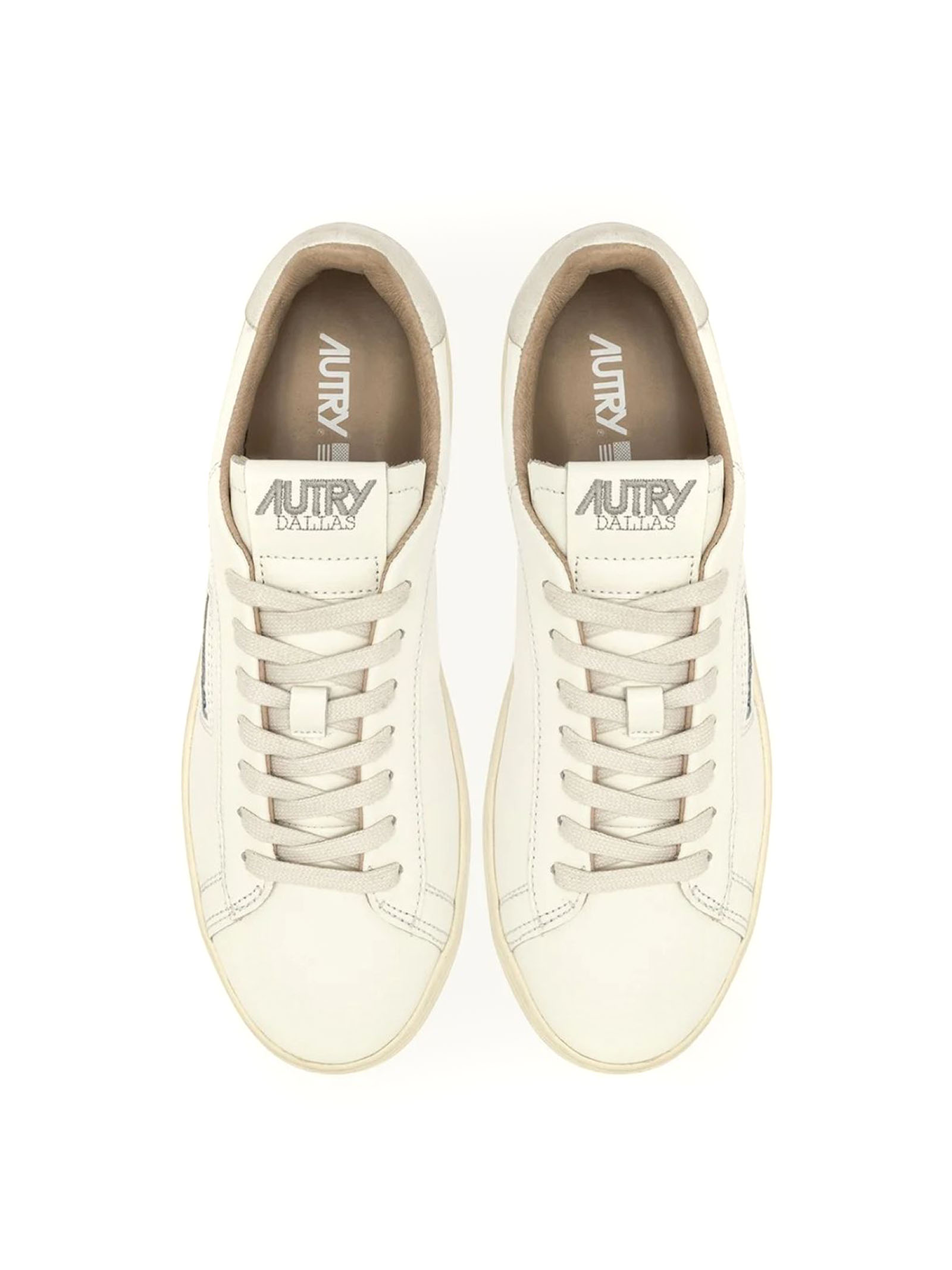 Sneakers Dallas Low In Pelle Bianca, Tomaia in pelle e nabuk, Punta con microfori, Lacci piatti in cotone, Label con ricamo cucita sulla linguetta, Colletto imbottito, Fodera in pelle e spugna di cotone, Soletta in pelle rialzata di 2 cm, Suola in gomma, Altezza suola: 2,5-3,5 cm