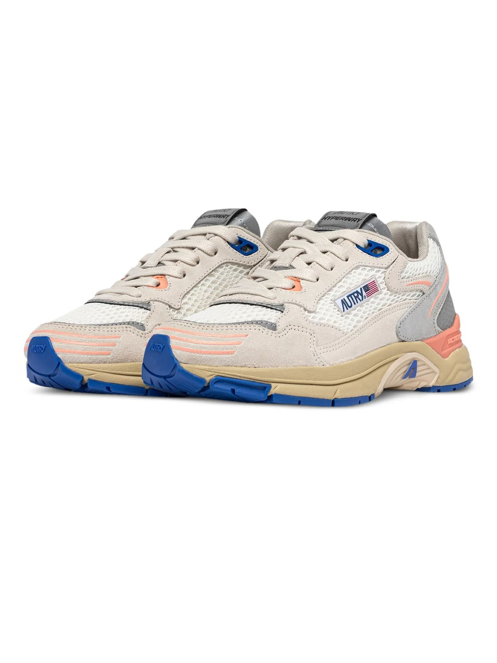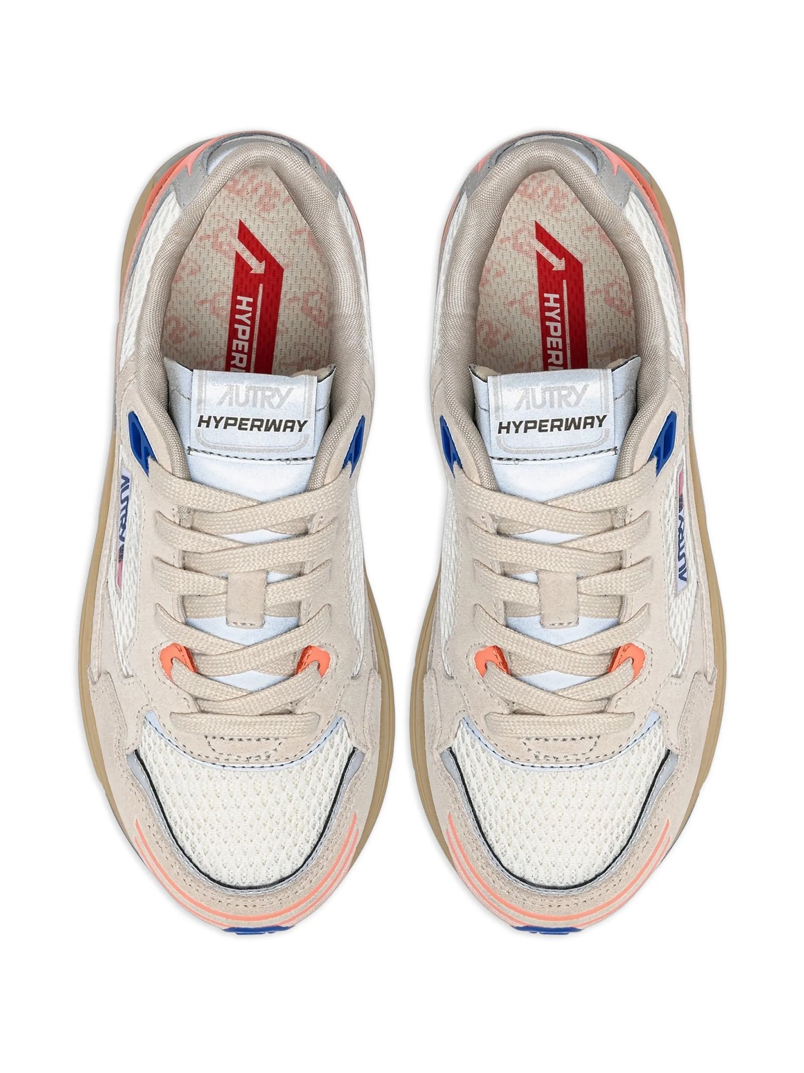 Sneakers Hyperway In Mesh E Suede Bianca e Rosa, Punta in mesh, Lacci piatti in cotone, Label logata cucita sulla linguetta, Colletto imbottito in mesh, Fodera in spugna di cotone, Soletta foderata in tessuto mesh rialzata di 1,5 mm, Suola in PI, Altezza suola: 3,5 cm