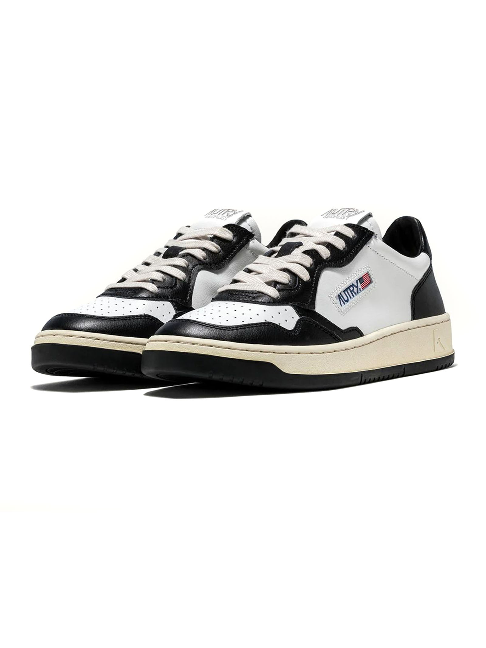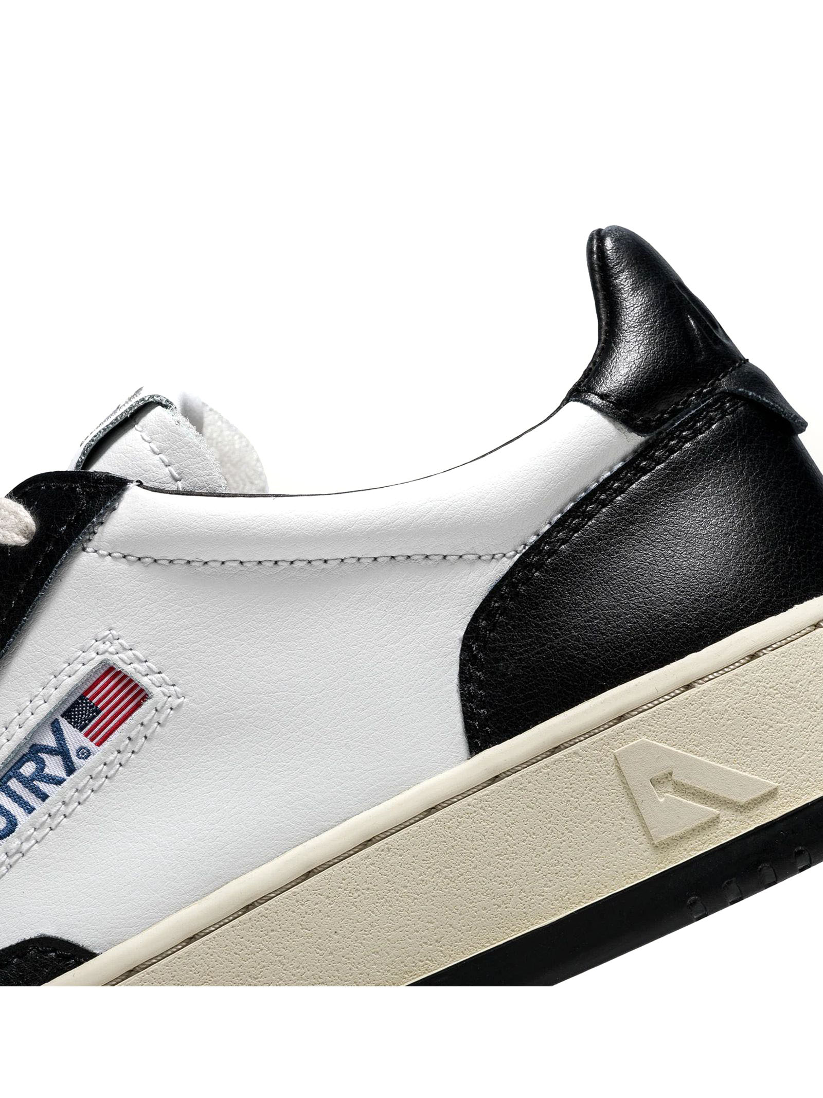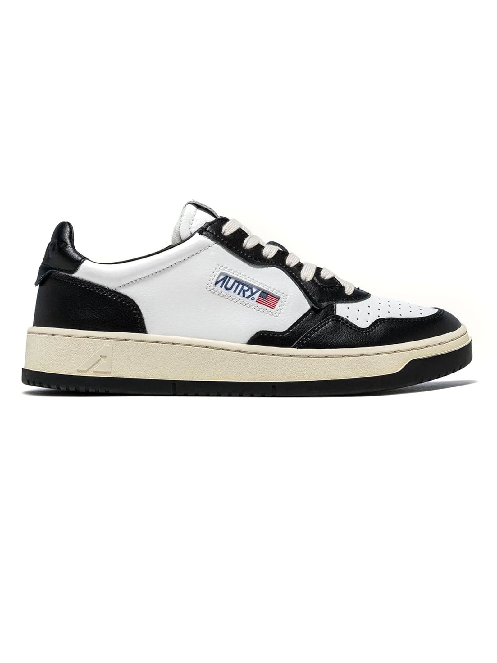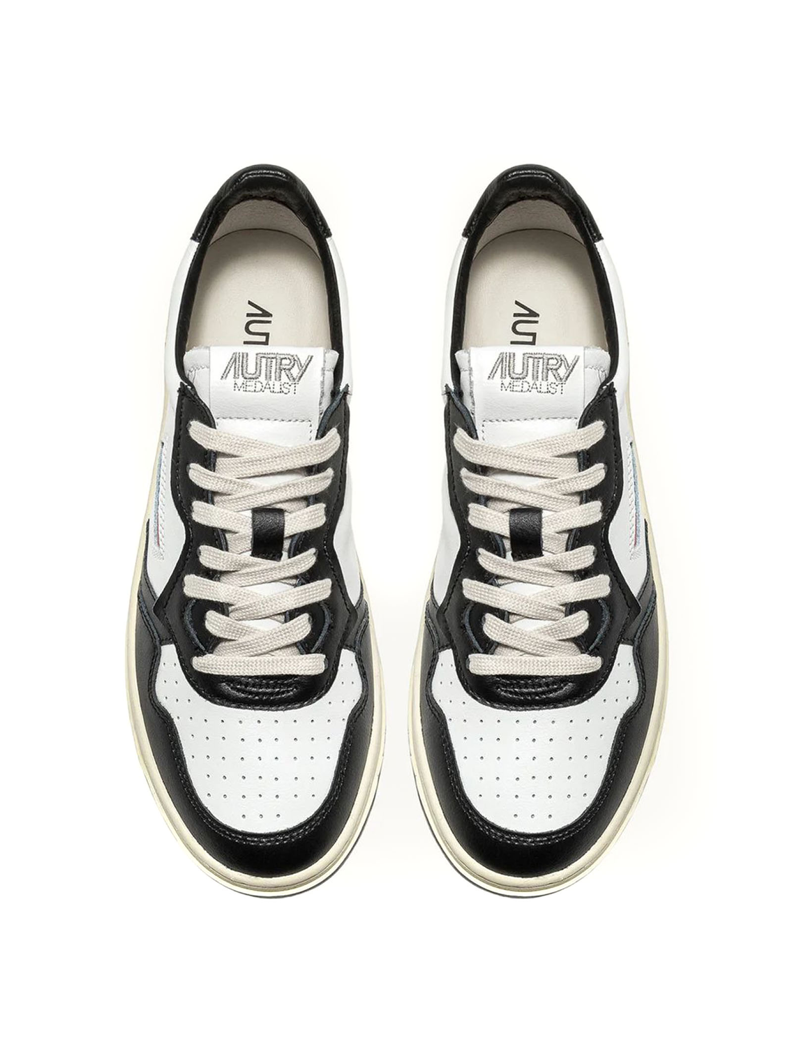 Sneakers Medalist Low Bicolor In Pelle Bianca E Nera, Tomaia in pelle color block, Punta con microfori, Lacci piatti in cotone, Label con ricamo cucita sulla linguetta, Colletto imbottito, Fodera in pelle e spugna di cotone, Soletta in pelle rialzata di 2 cm, Suola in gomma con battistrada a contrasto, Altezza suola: 2,5-3,5 cm
