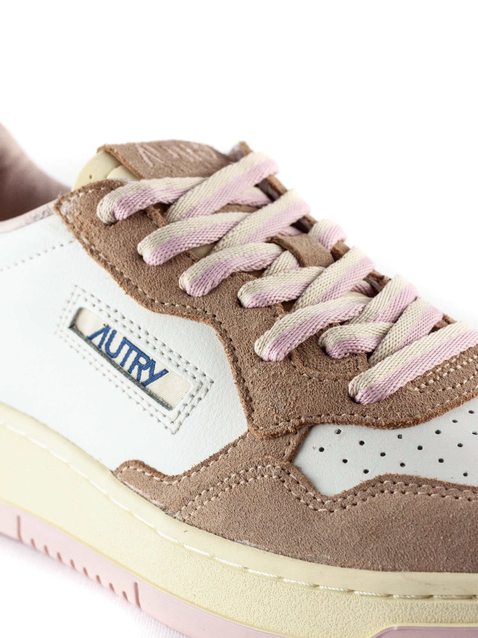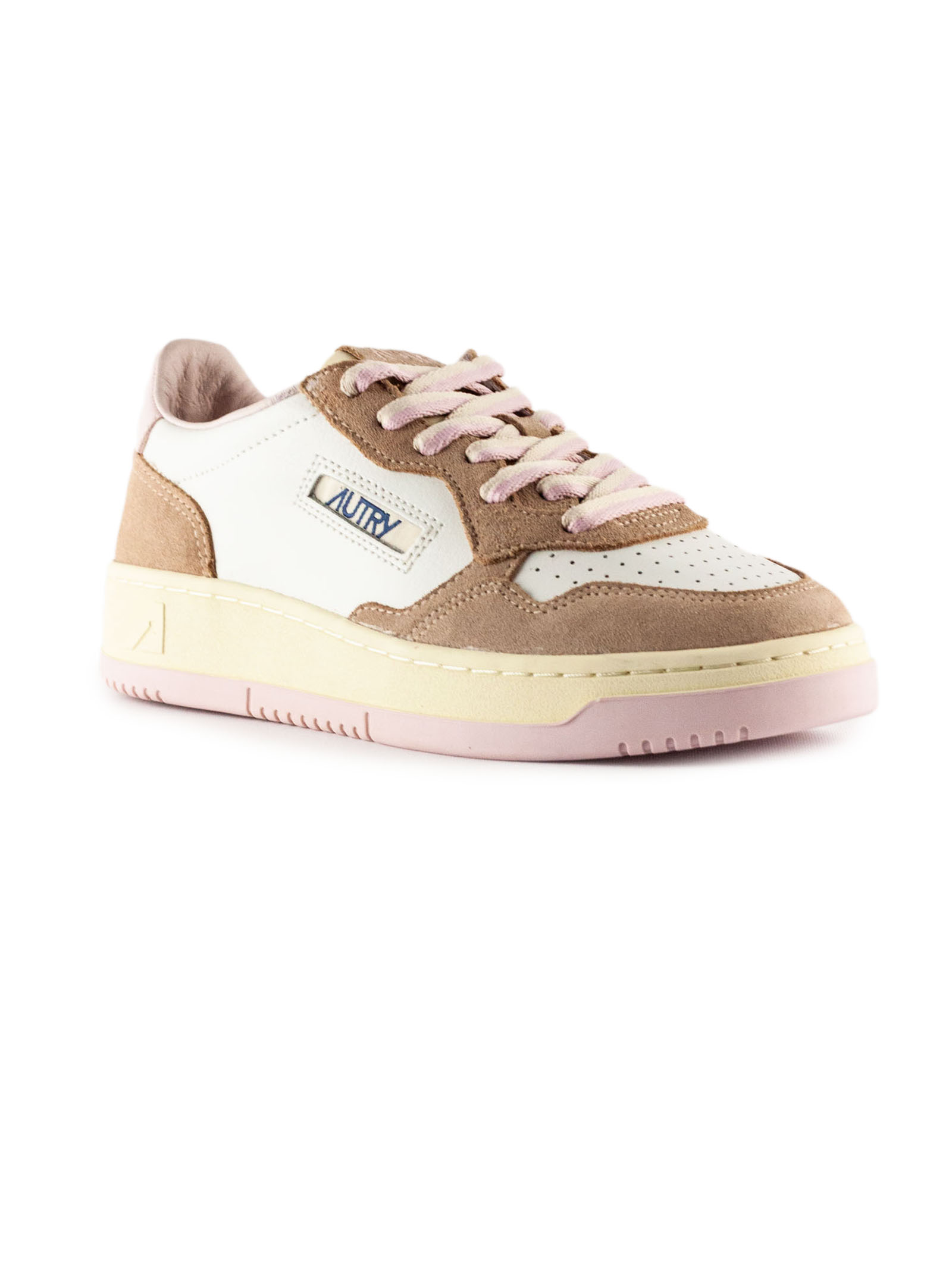 Sneakers Medalist Low In Pelle Bianca E Rosa, Dettagli in camoscio marrone, Punta con microfori, Lacci piatti in cotone, Label con ricamo cucita sulla linguetta, Colletto imbottito, Fodera in pelle e spugna di cotone, Soletta in pelle rialzata di 2 cm, Suola in gomma, Altezza suola: 2,5-3,5 cm, Tomaia: 100% pelle bovina, Fodera: 40% pelle di maiale; 50% spugna; 10% nylon, Suola: 100% gomma