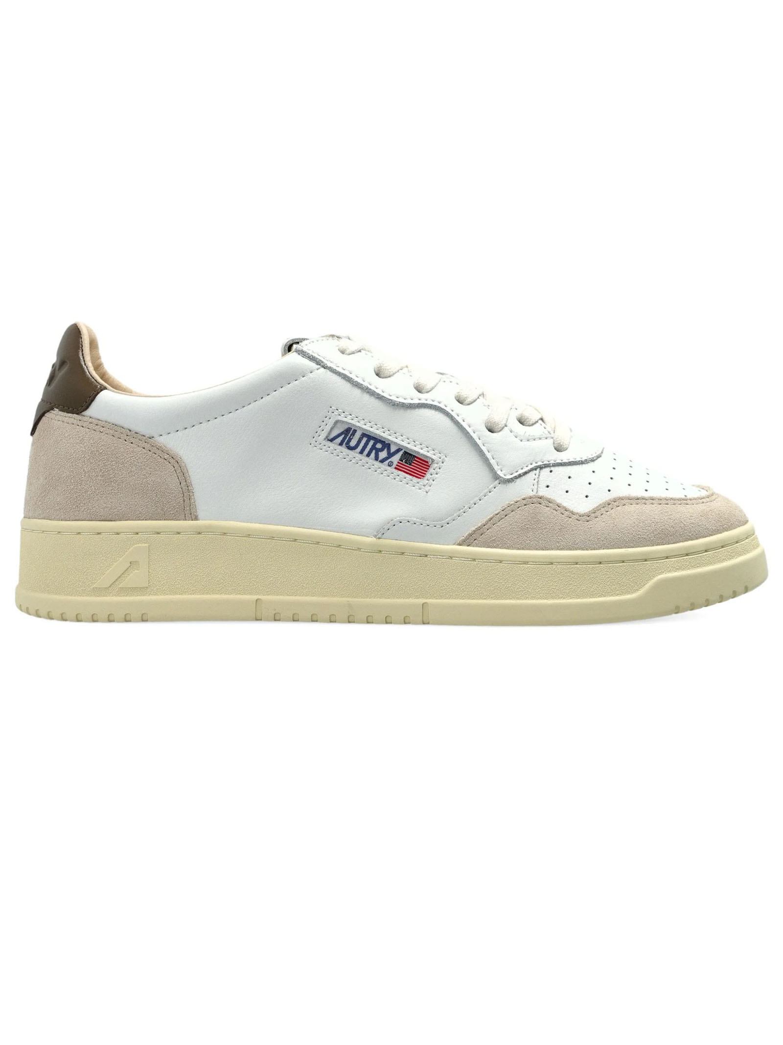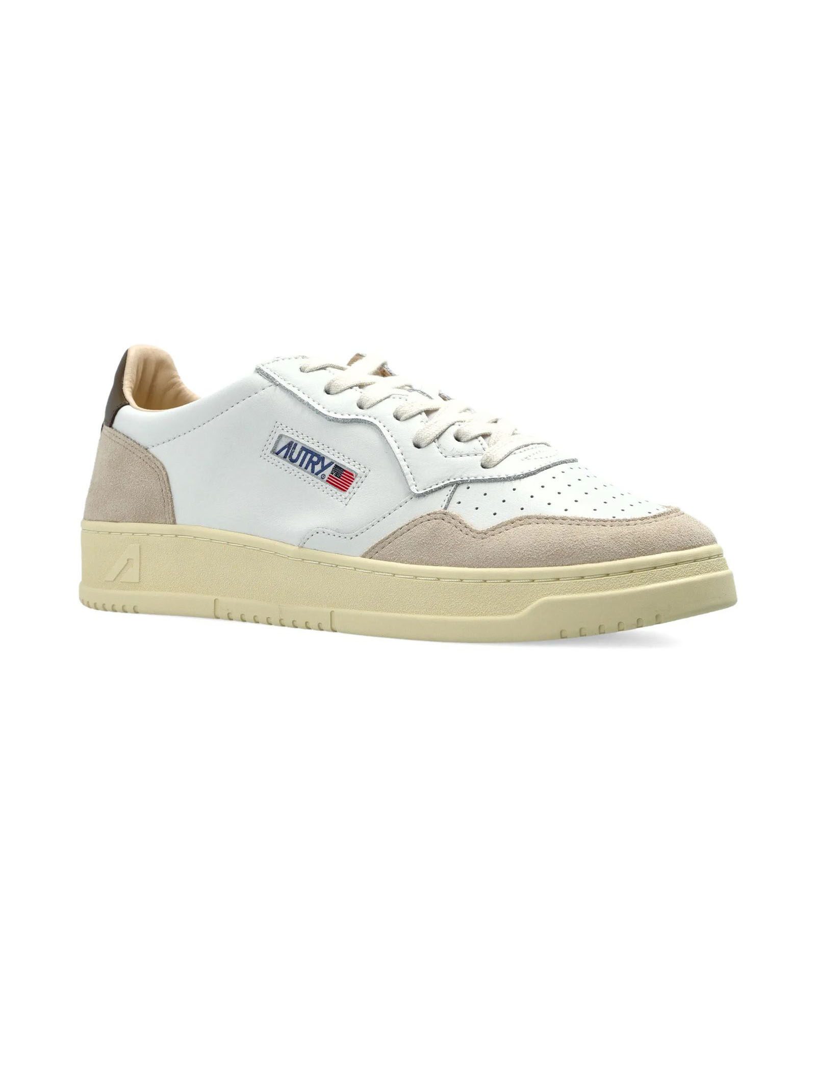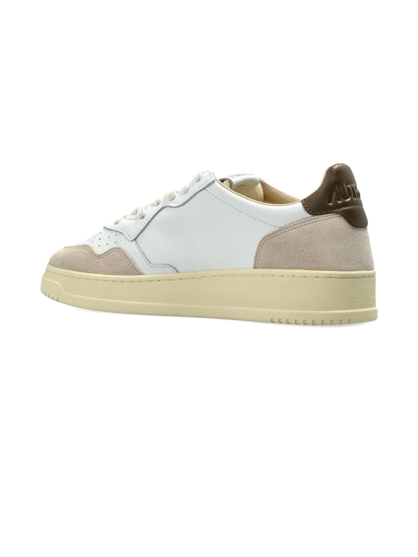 Sneakers Medalist Low In Pelle Bianca E Verde E Suede Beige, Tomaia in pelle e suede, Punta con microfori, Lacci piatti in cotone, Label con ricamo cucita sulla linguetta, Colletto imbottito, Fodera in pelle e spugna di cotone, Soletta in pelle rialzata di 2 cm, Suola in gomma, Altezza suola: 2,5-3,5 cm
