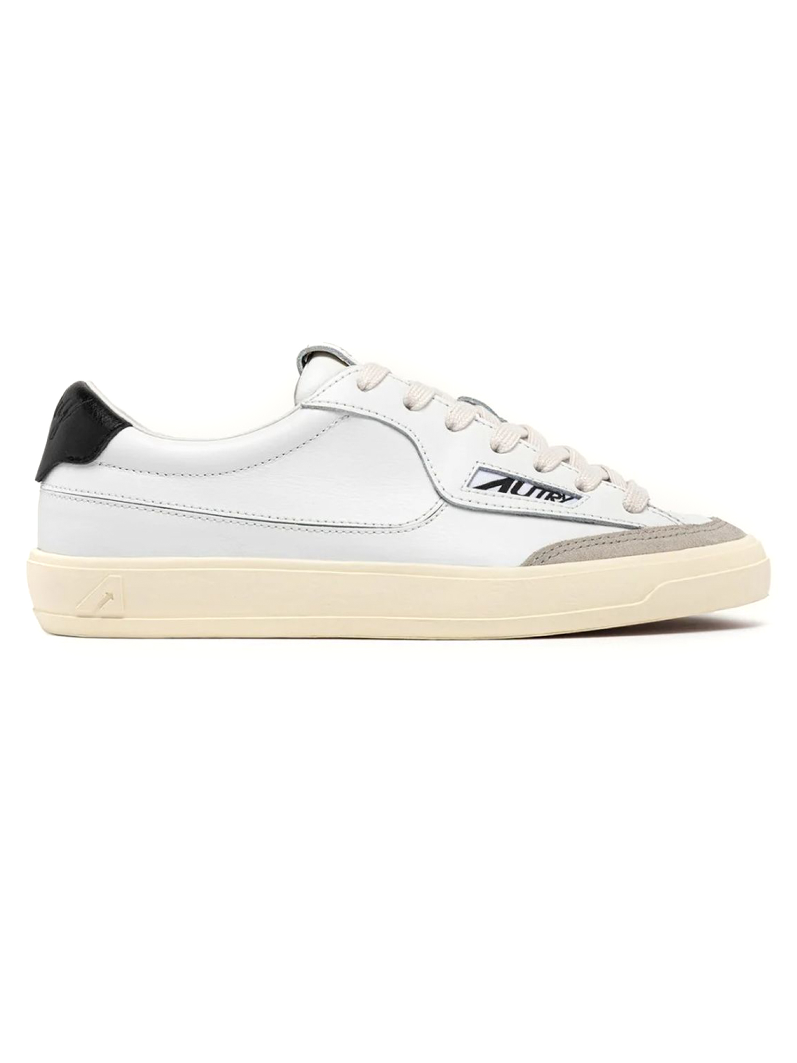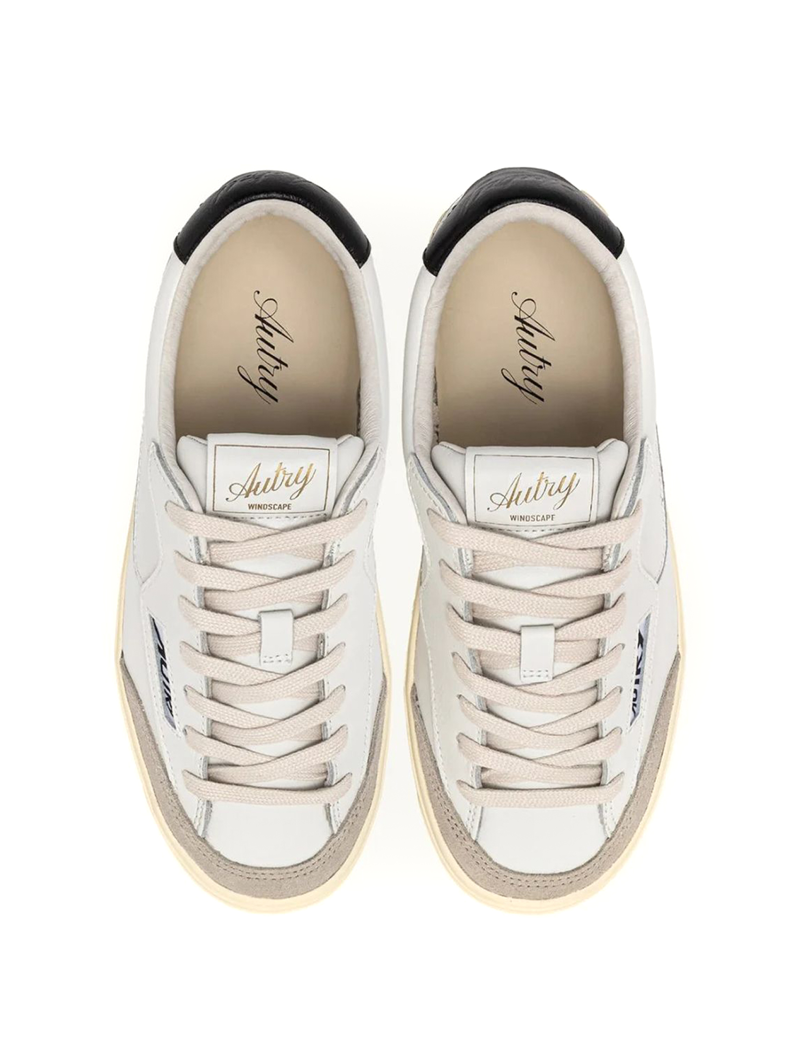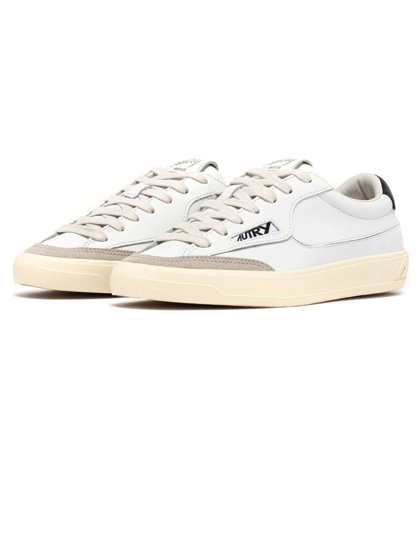 Sneakers Windscape Low In Pelle Bianca e Nera, Lacci piatti in cotone, Linguetta leggermente imbottita con label logata, Fodera in pelle e spugna di cotone, Soletta in pelle rialzata di 2 cm, Suola in gomma, Altezza suola: 2,5, 3 cm