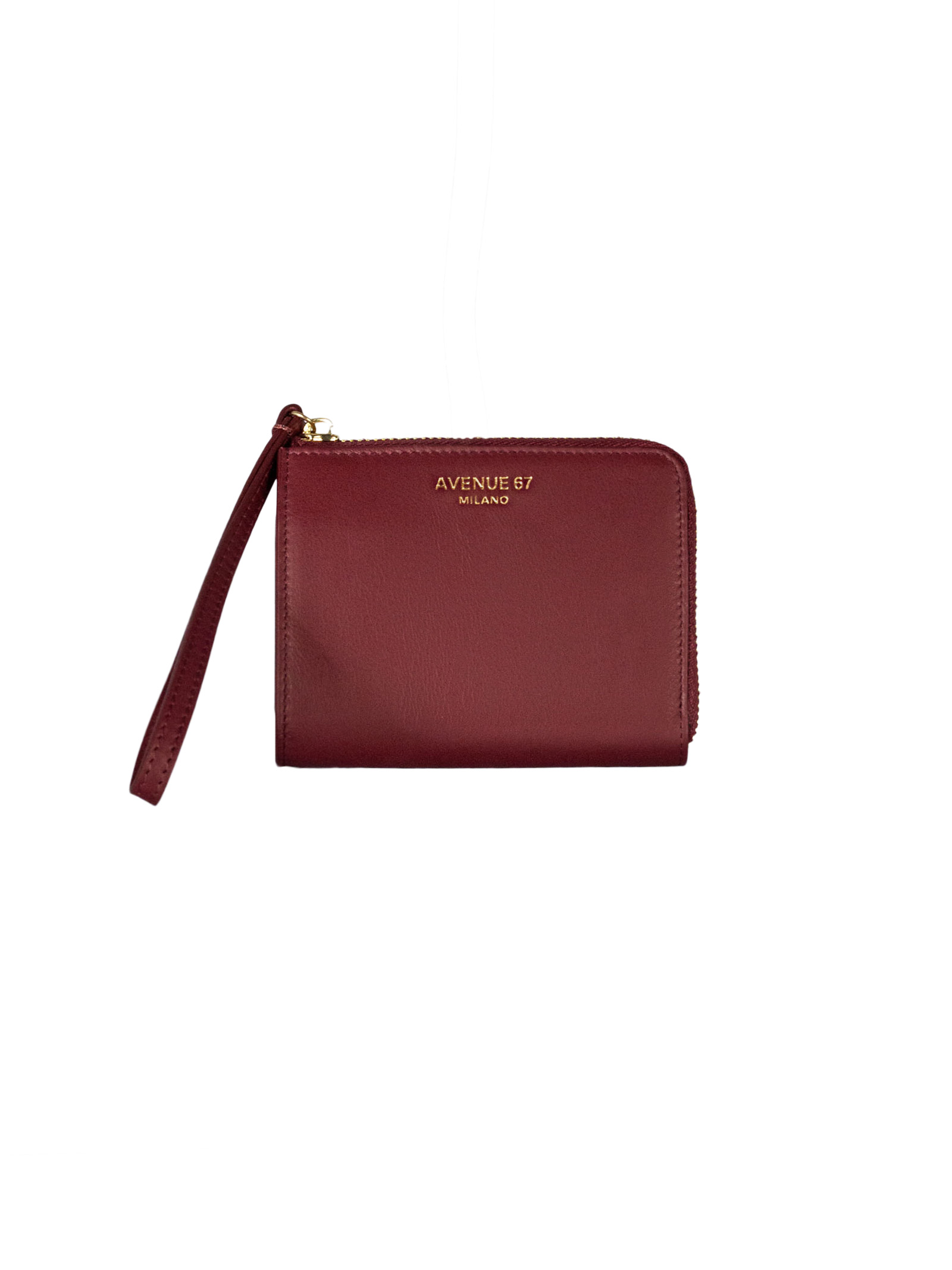 Portafogli Jill medio in pelle bordeaux, apertura a soffietto su due lati, tasca portamonete interna con cerniera e 4 scomparti per carta di credito e 2 scomparti per banconote, L.13 H.9 P.2 cm