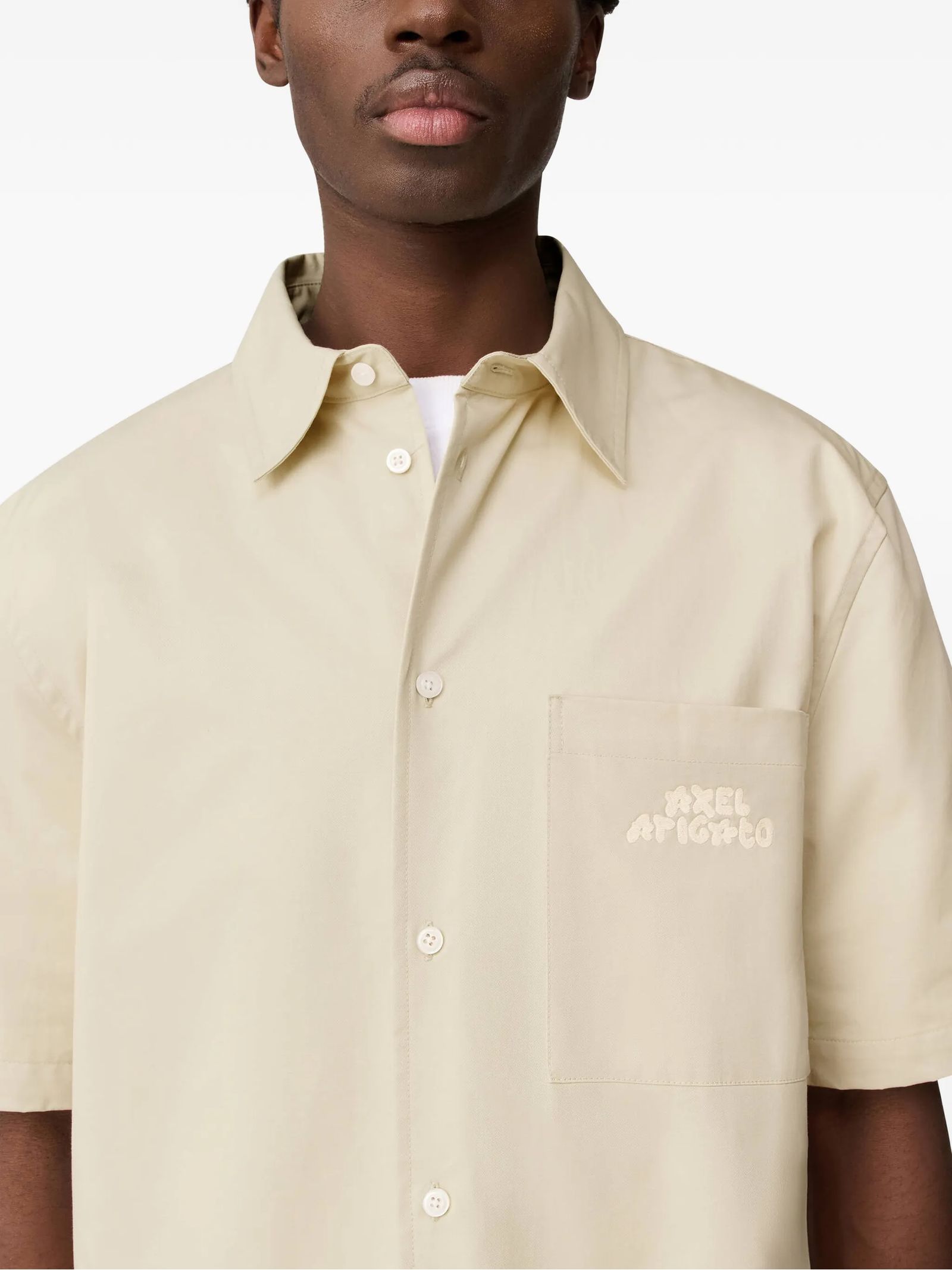 Camicia Drew in cotone beige taschino sul petto, chiusura a bottoni, colletto a punta, maniche corte