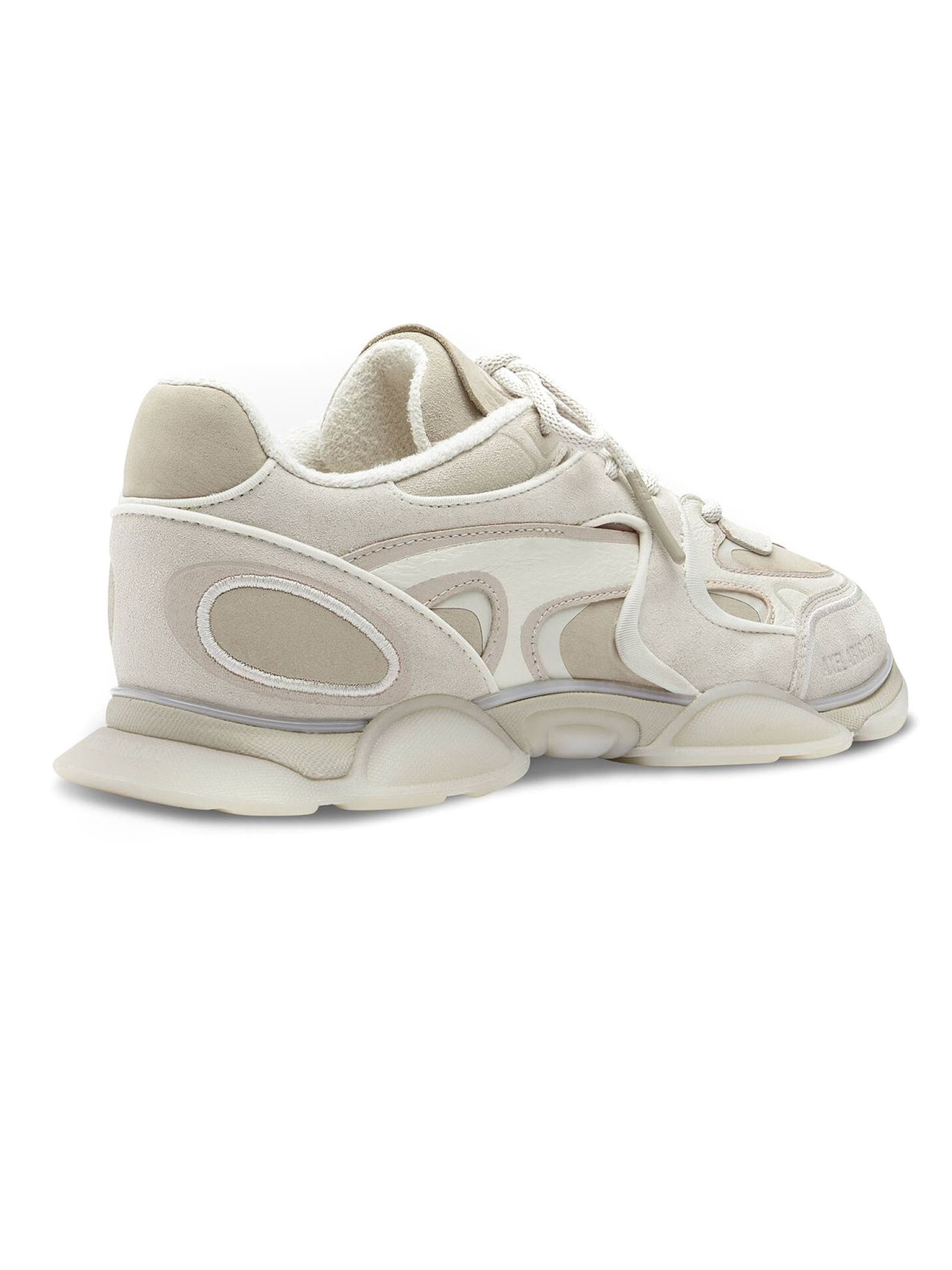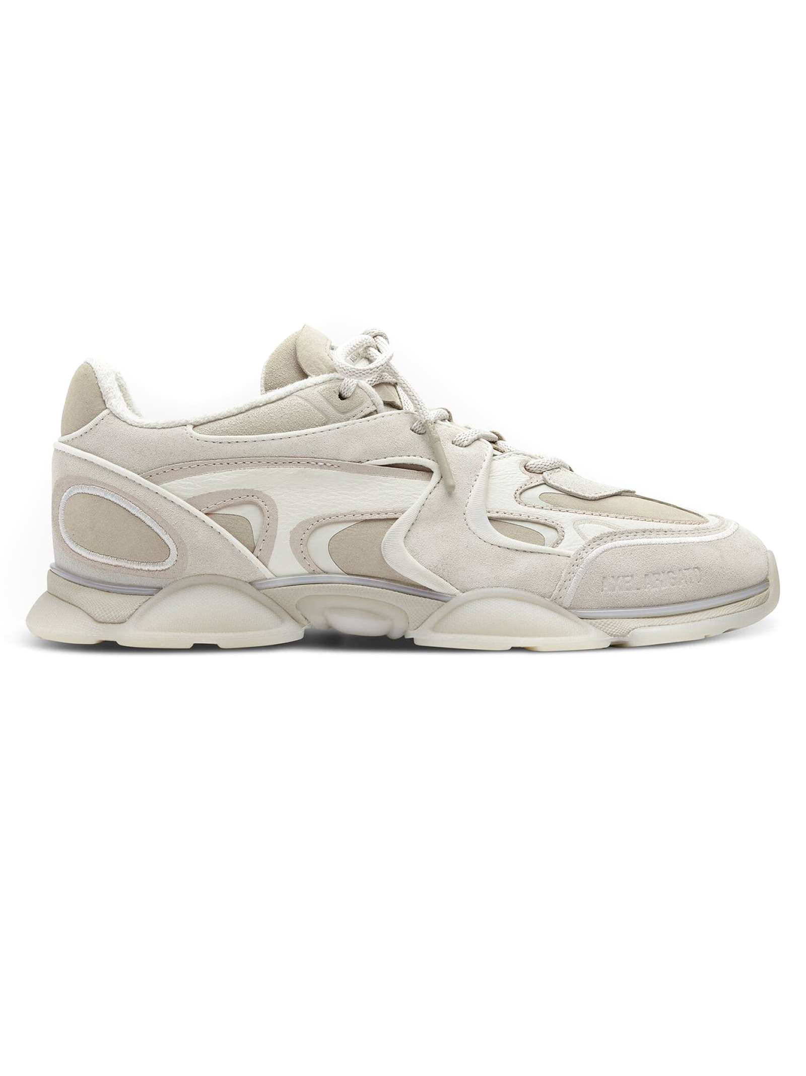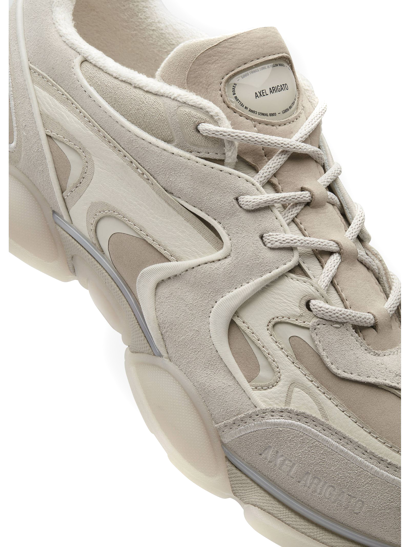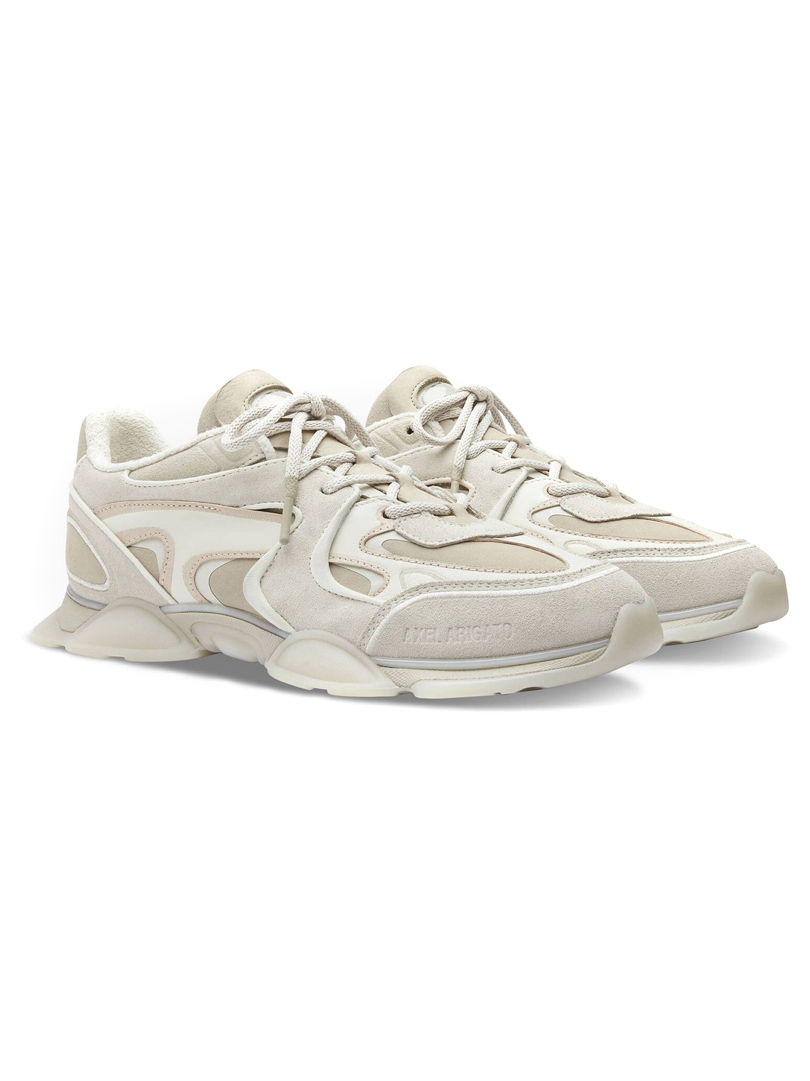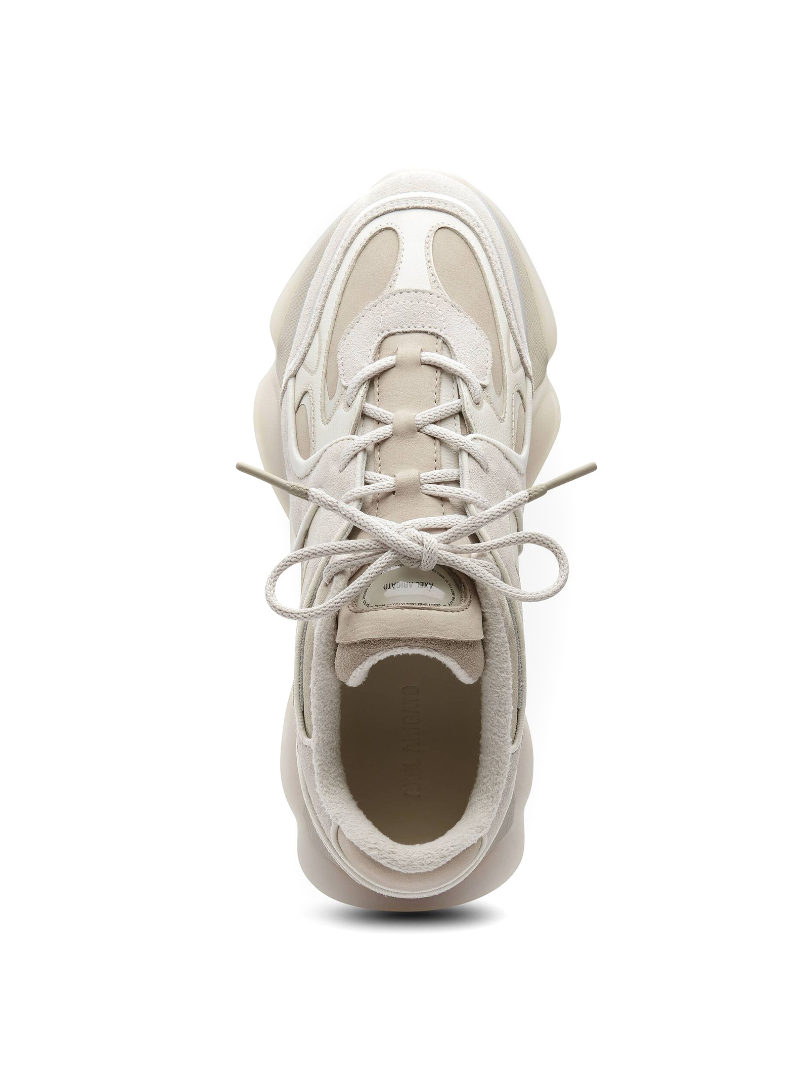 Sneakers Eris in camoscio beige, tacco di 25 mm, linguetta con logo, marchio impresso, lacci rotondi con puntali in silicone