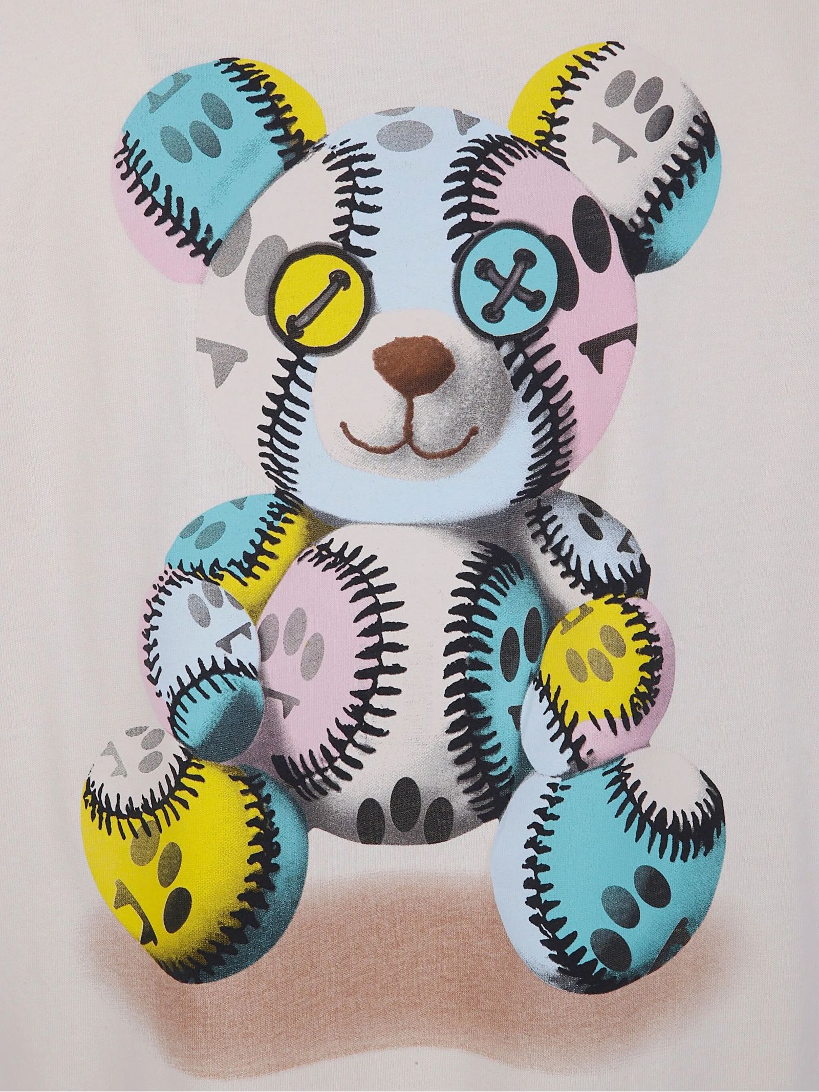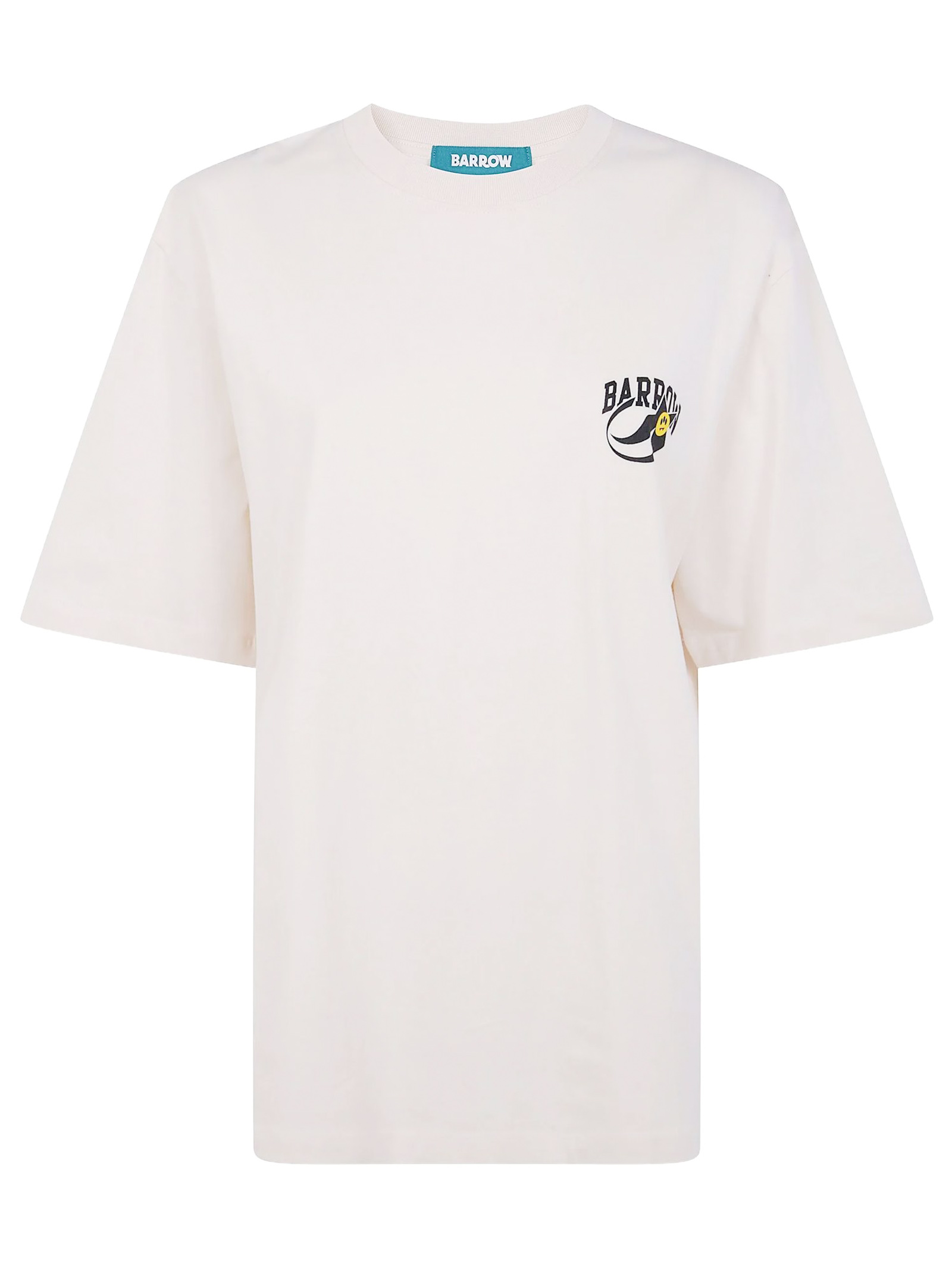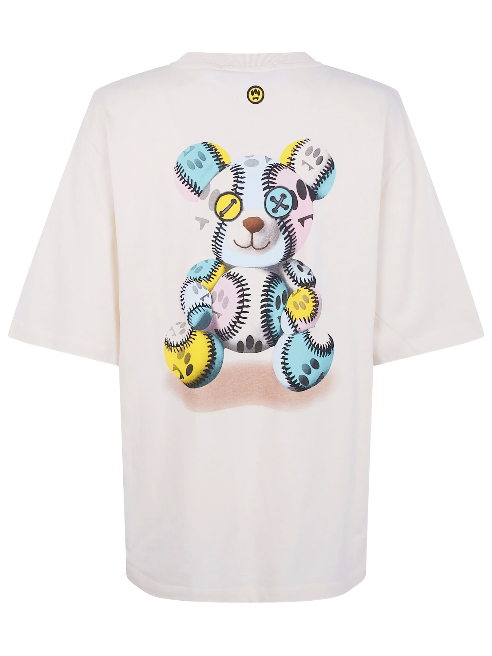 T-shirt in cotone beige con maniche corte, girocollo, stampa sul retro