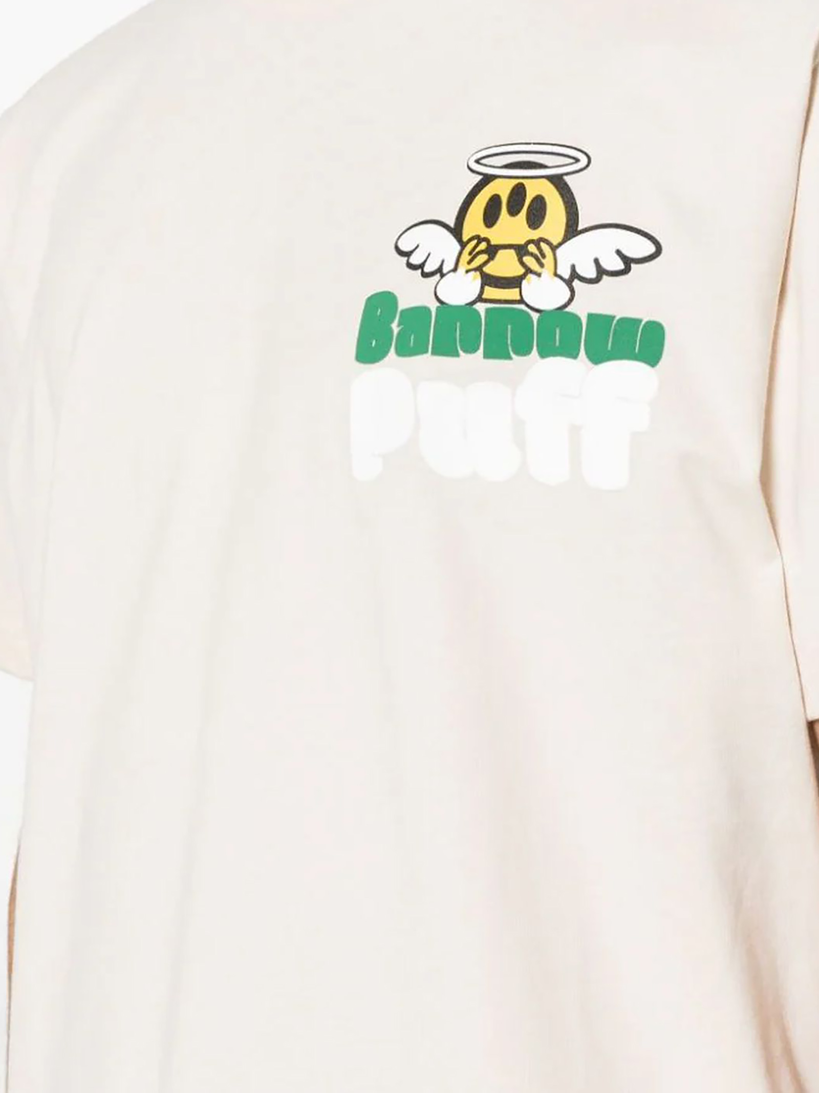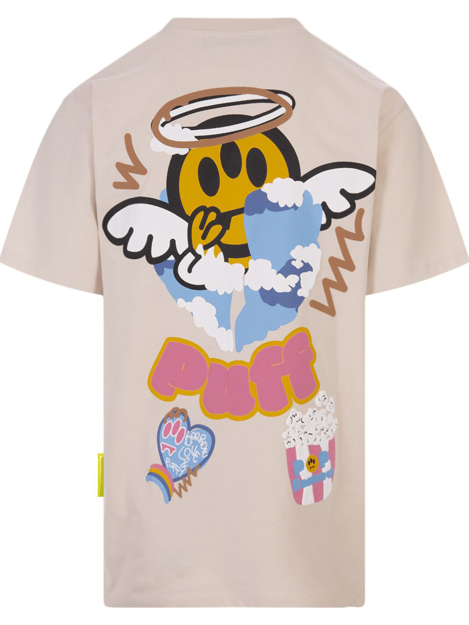 T-shirt in cotone beige con trama jersey, girocollo, maniche corte, stampa con logo sul petto, dettaglio con logo gommato laterale, con logo laterale, etichetta interna con logo, orlo dritto