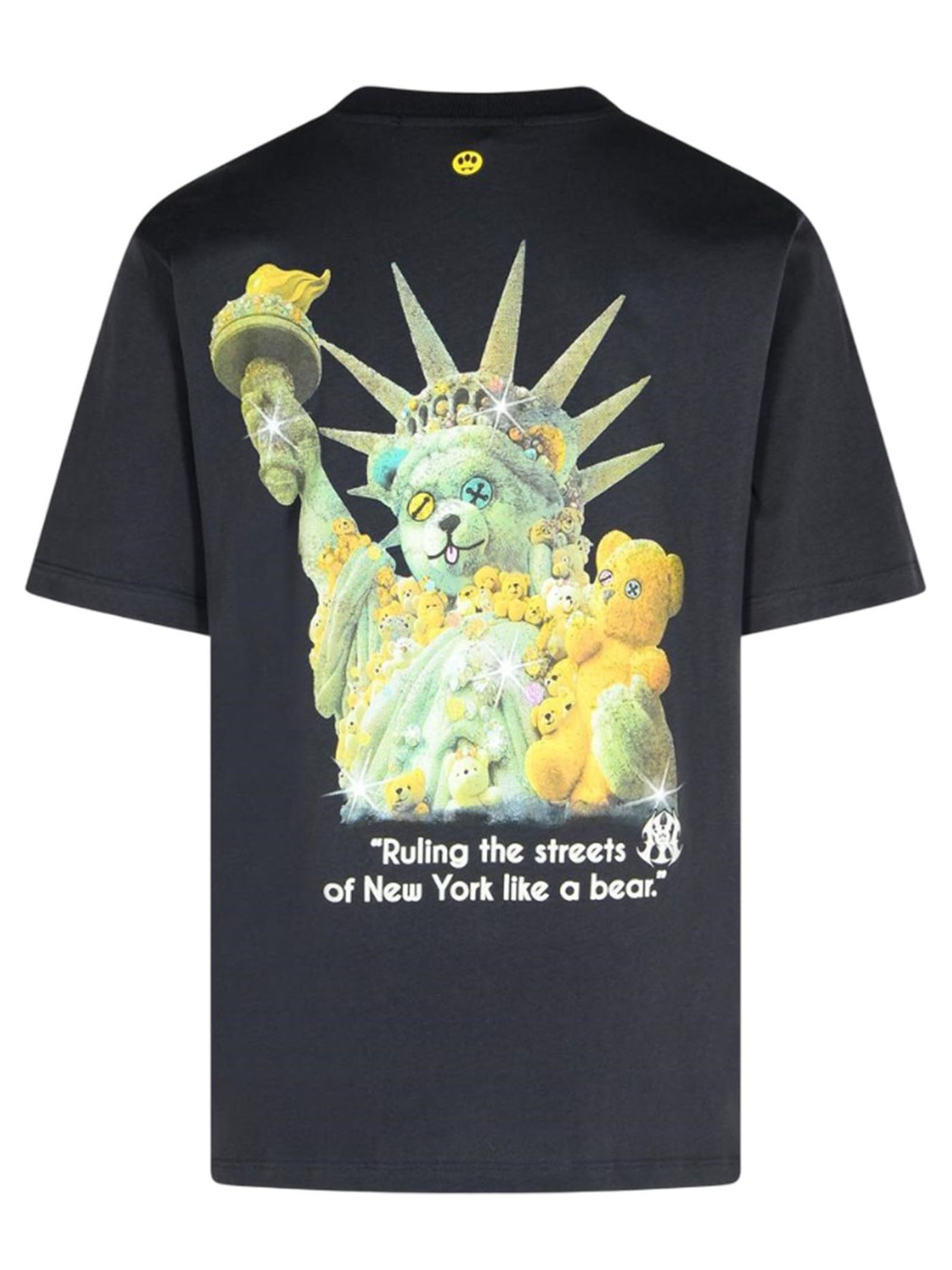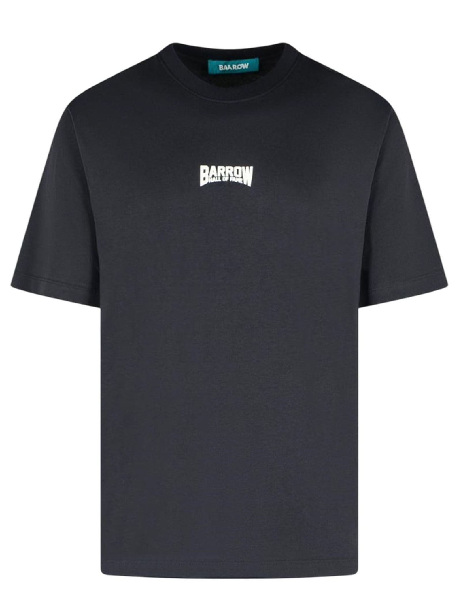 T-shirt in cotone nero con logo, stampa sul retro, girocollo, maniche corte