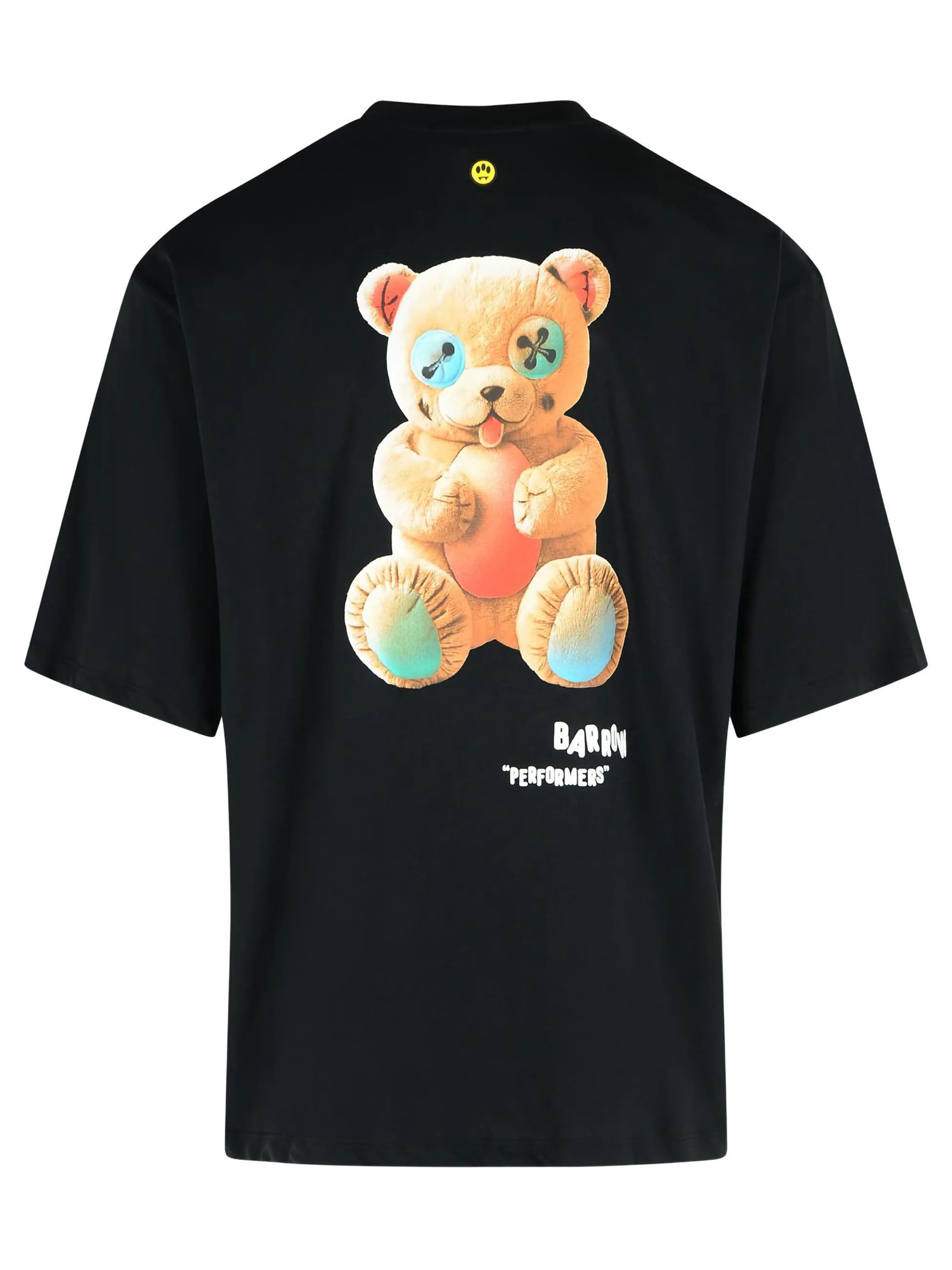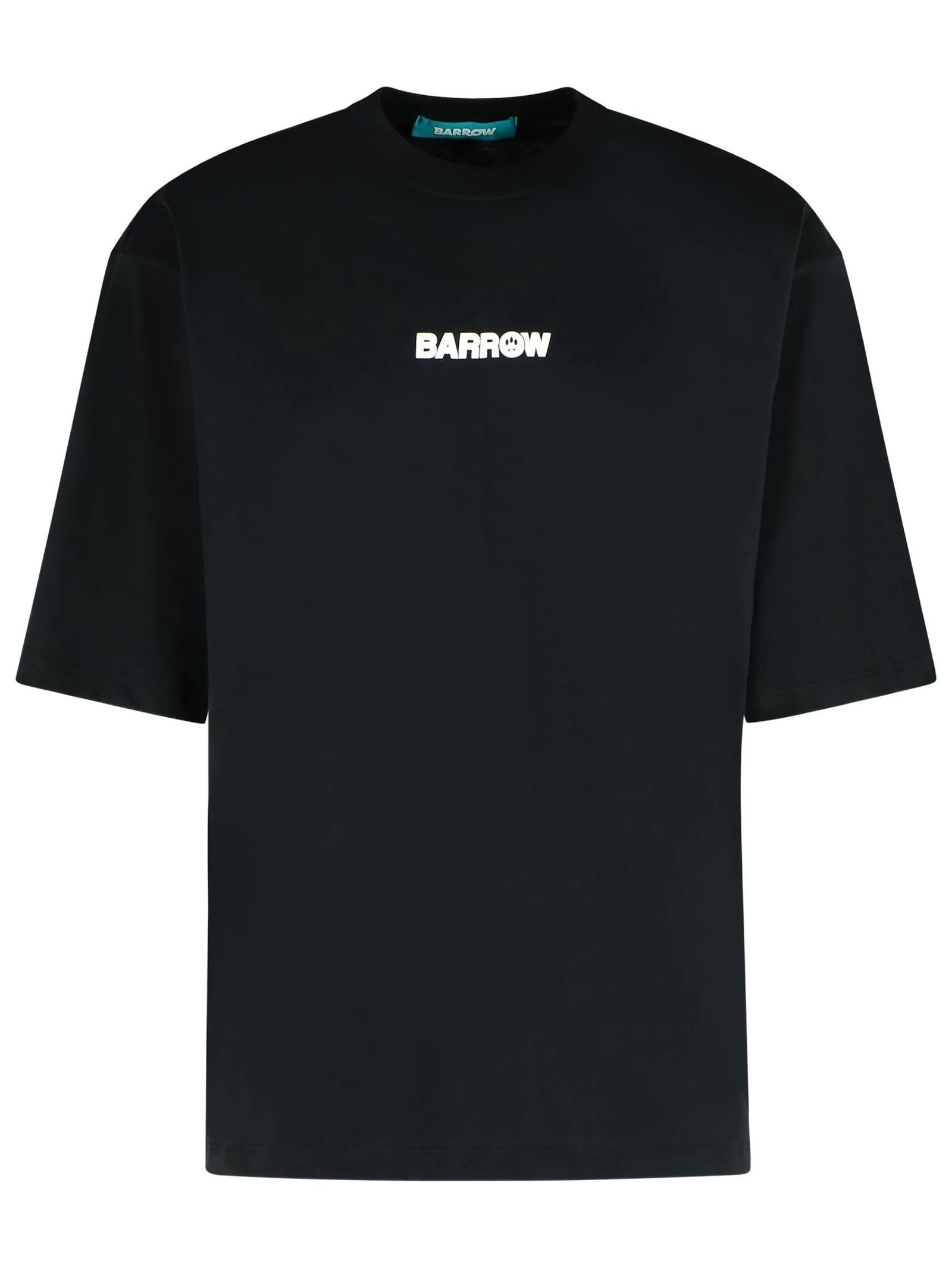 T-shirt in cotone nero con logo, stampa sul retro, girocollo, maniche corte