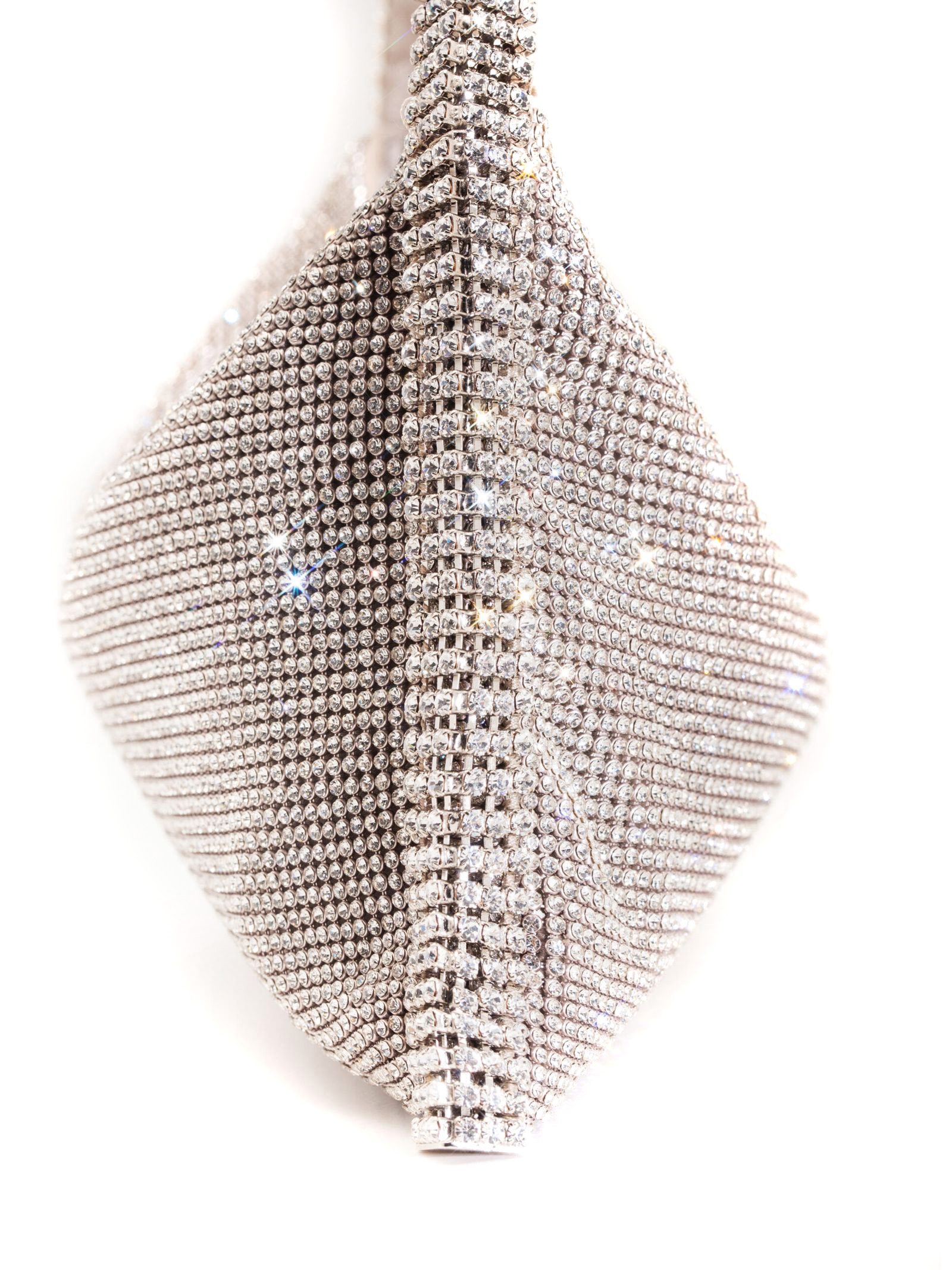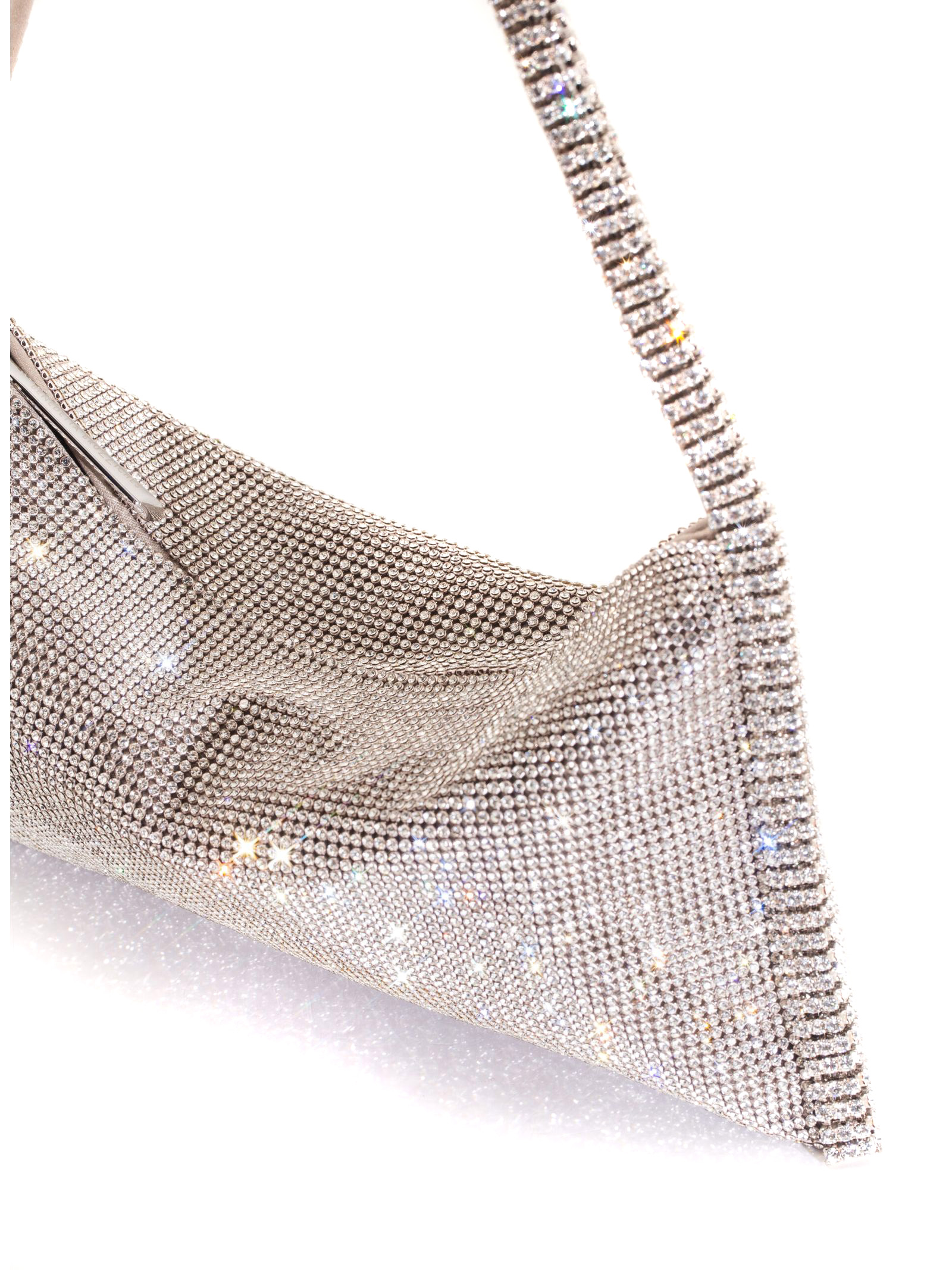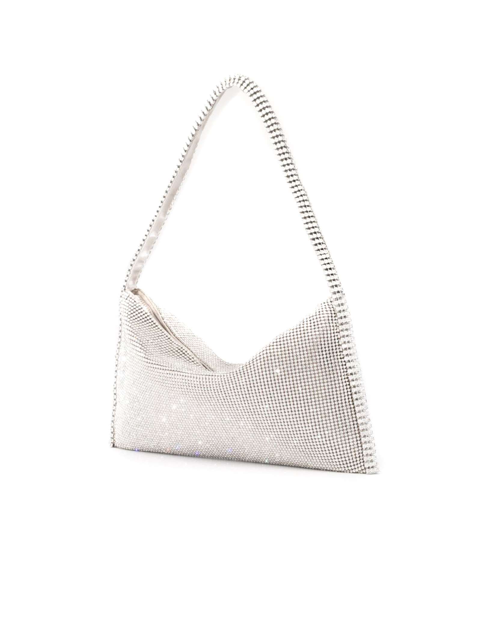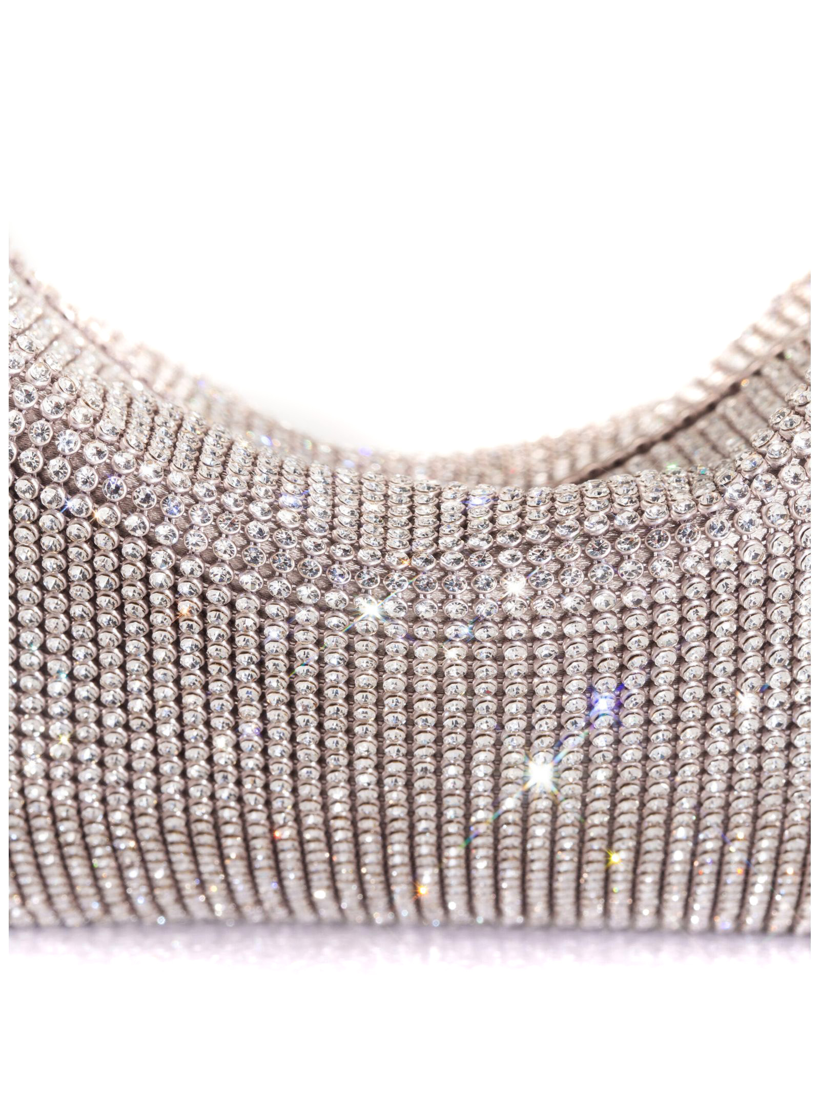 Borsa A Spalla Your Best Friend La Grande Argento, decorazione in cristalli, tracolla di cristalli, scomparto unico, applicazione interna con logo, fodera in seta, chiusura superiore nascosta con zip, Misure: A: 14cm X P: 1,5cm X L: 25cm