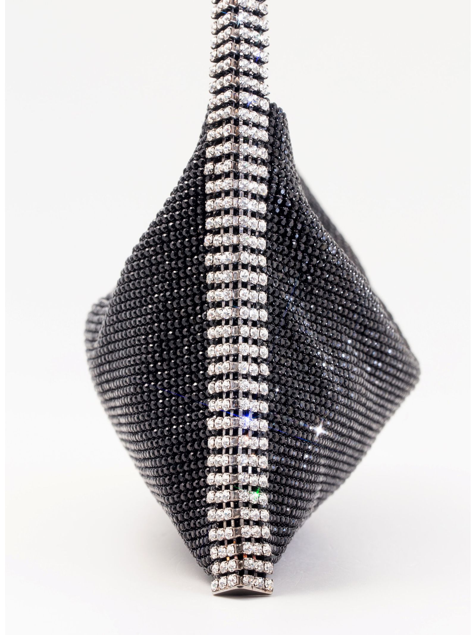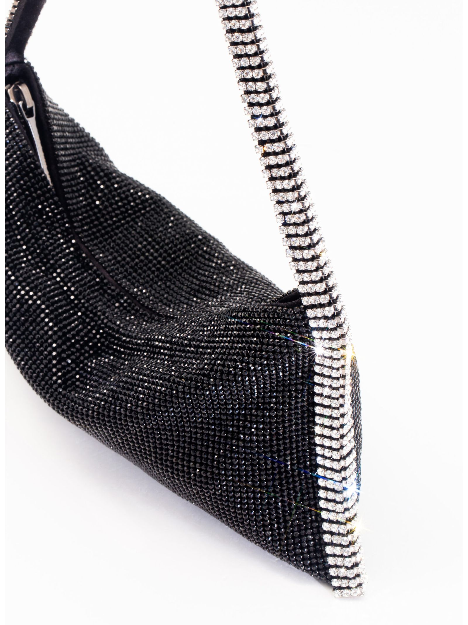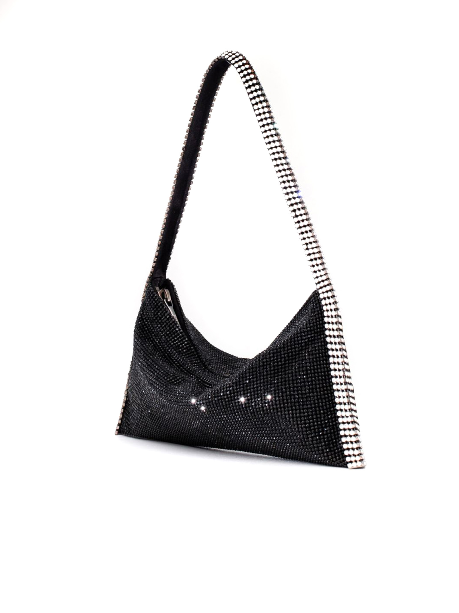 Borsa A Spalla Your Best Friend La Grande Nera, decorazione in cristalli, tracolla di cristalli, scomparto unico, applicazione interna con logo, fodera in seta, chiusura superiore nascosta con zip, Misure: A: 14cm X P: 1,5cm X L: 25cm