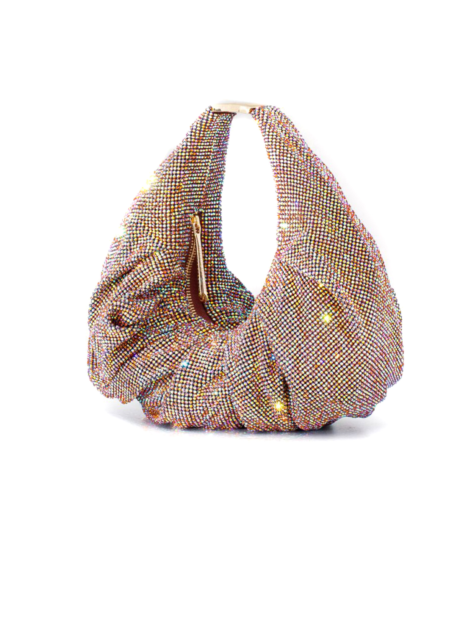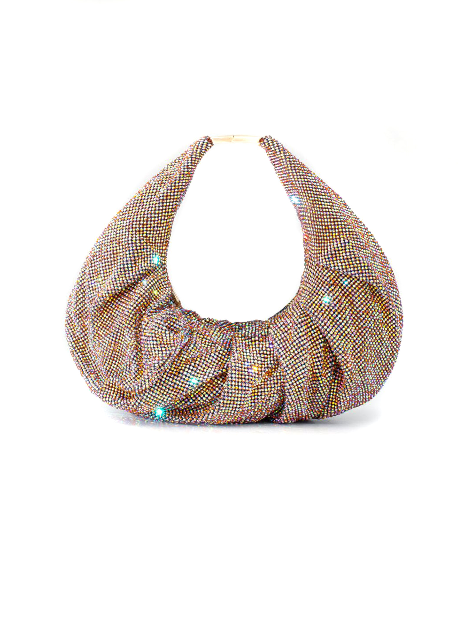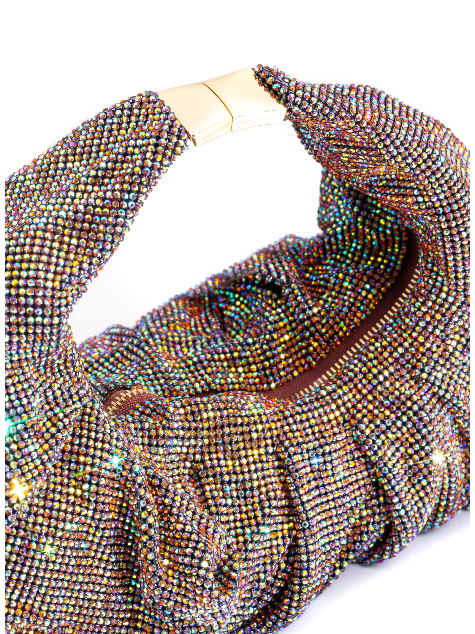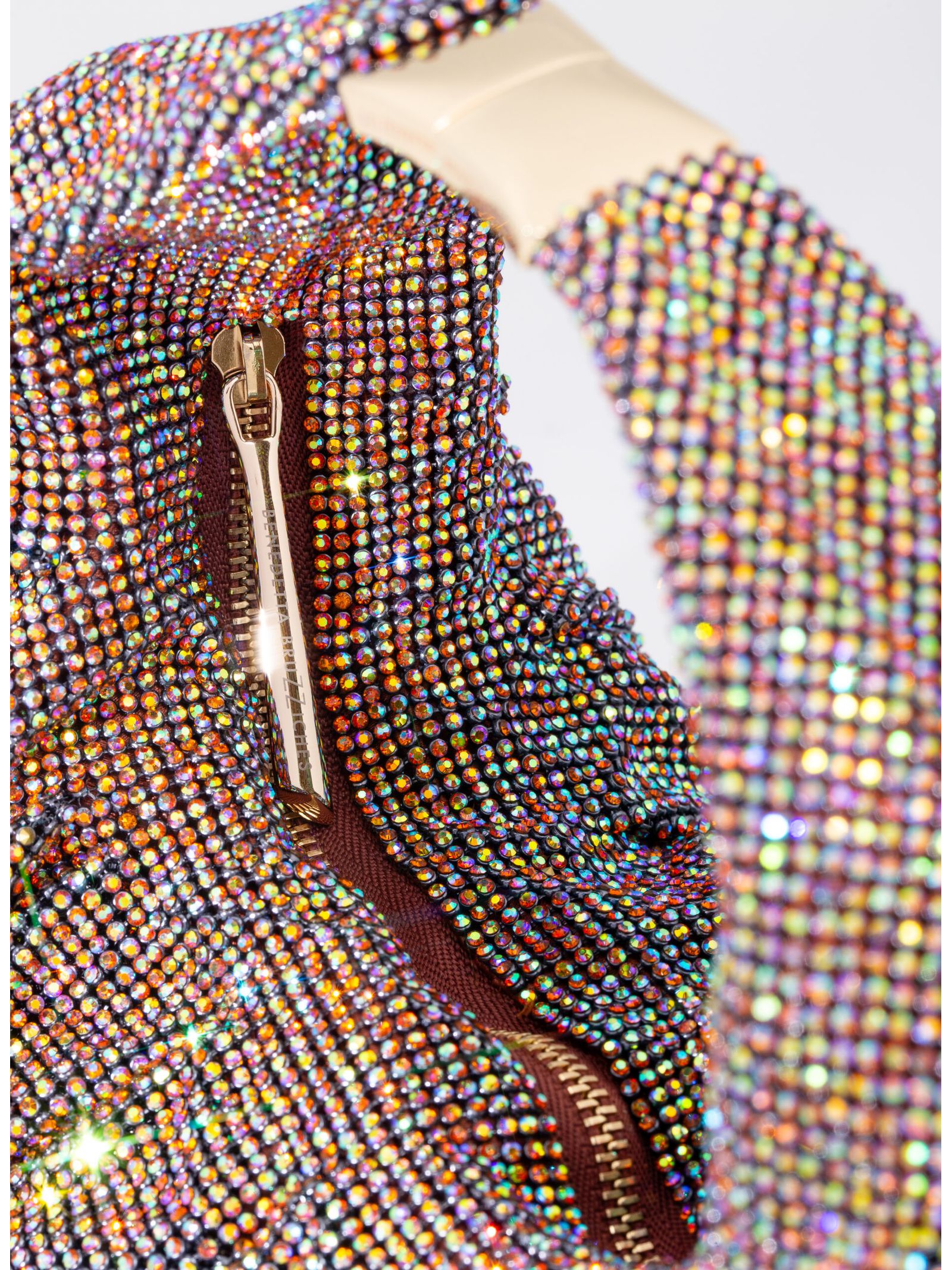 Borsa tote Yennefer multicolore, design in rete, decorazione con strass, dettagli plissettati, componenti metalliche color oro con logo inciso, chiusura superiore con zip, scomparto unico, applicazione interna con logo, fodera integrale, 24 x 4 x 26 cm
