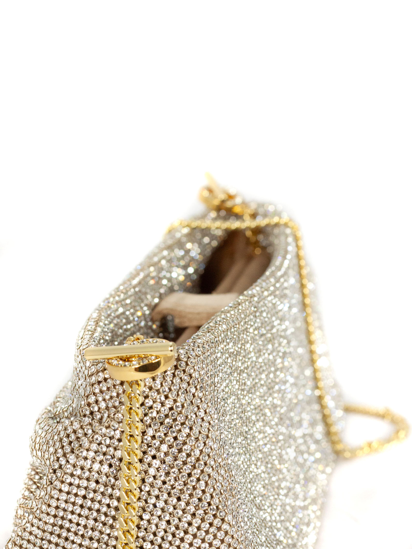 Ondina Valla Morning on Canvas Clutch in rete metallica dorata