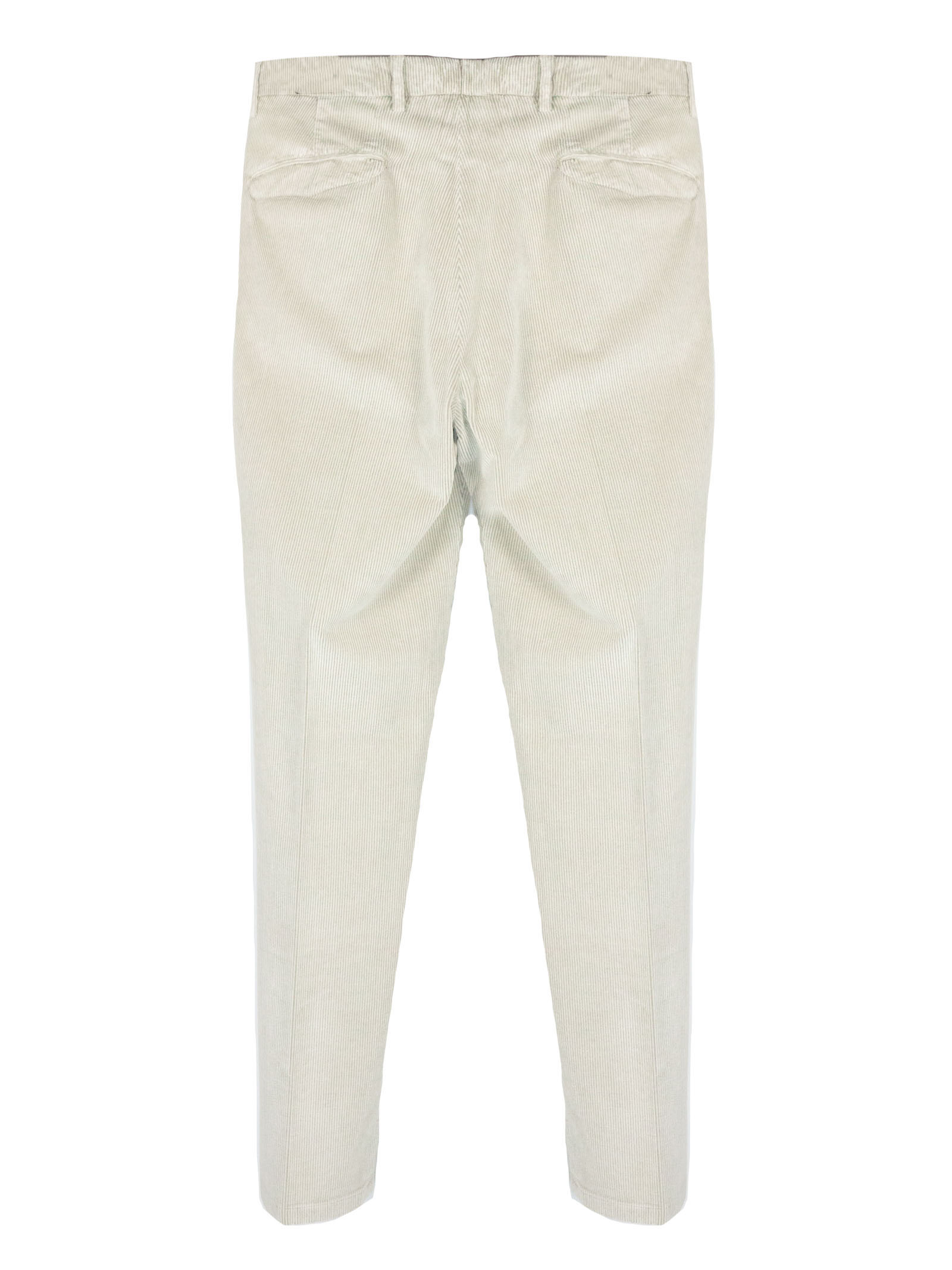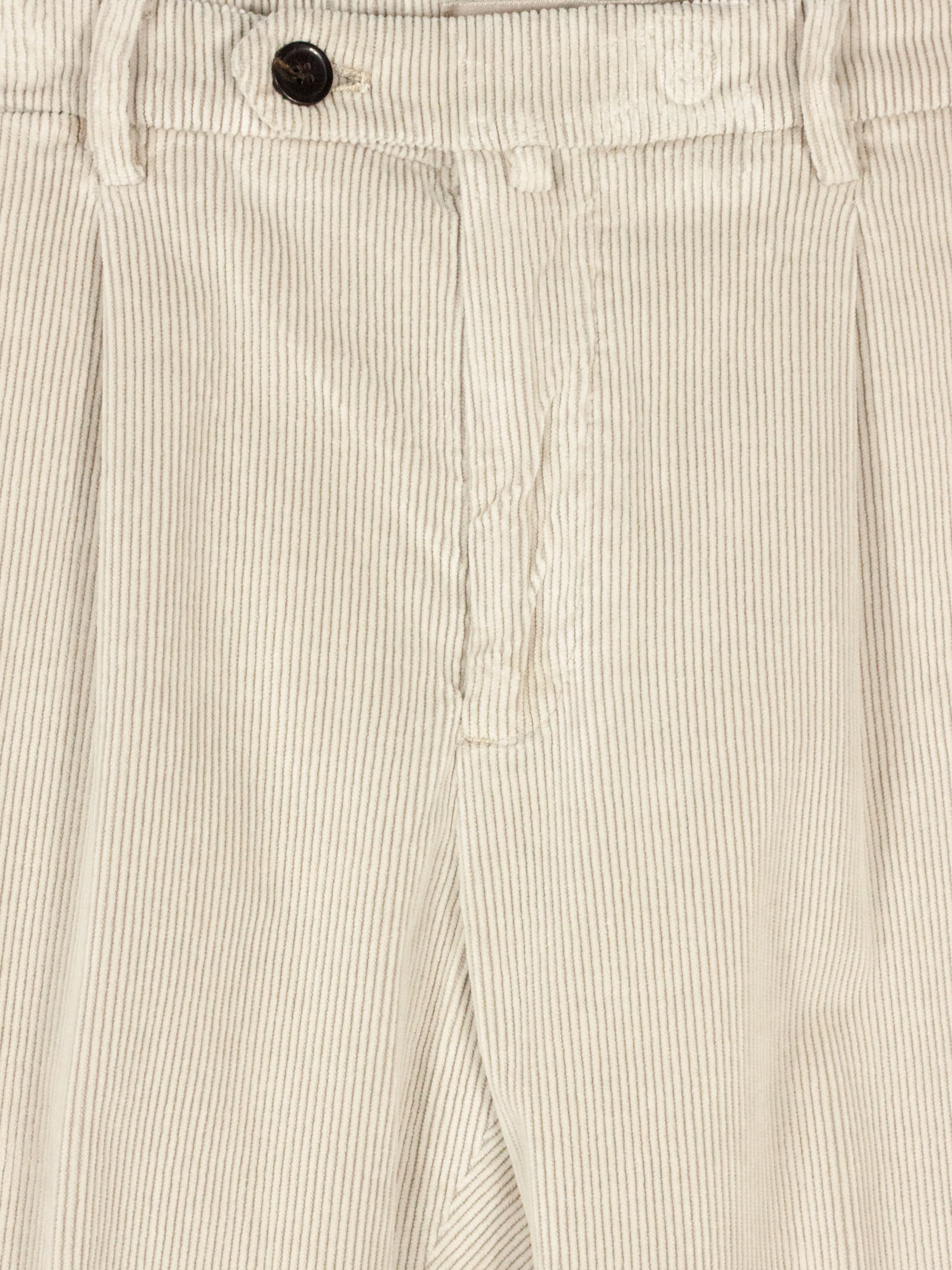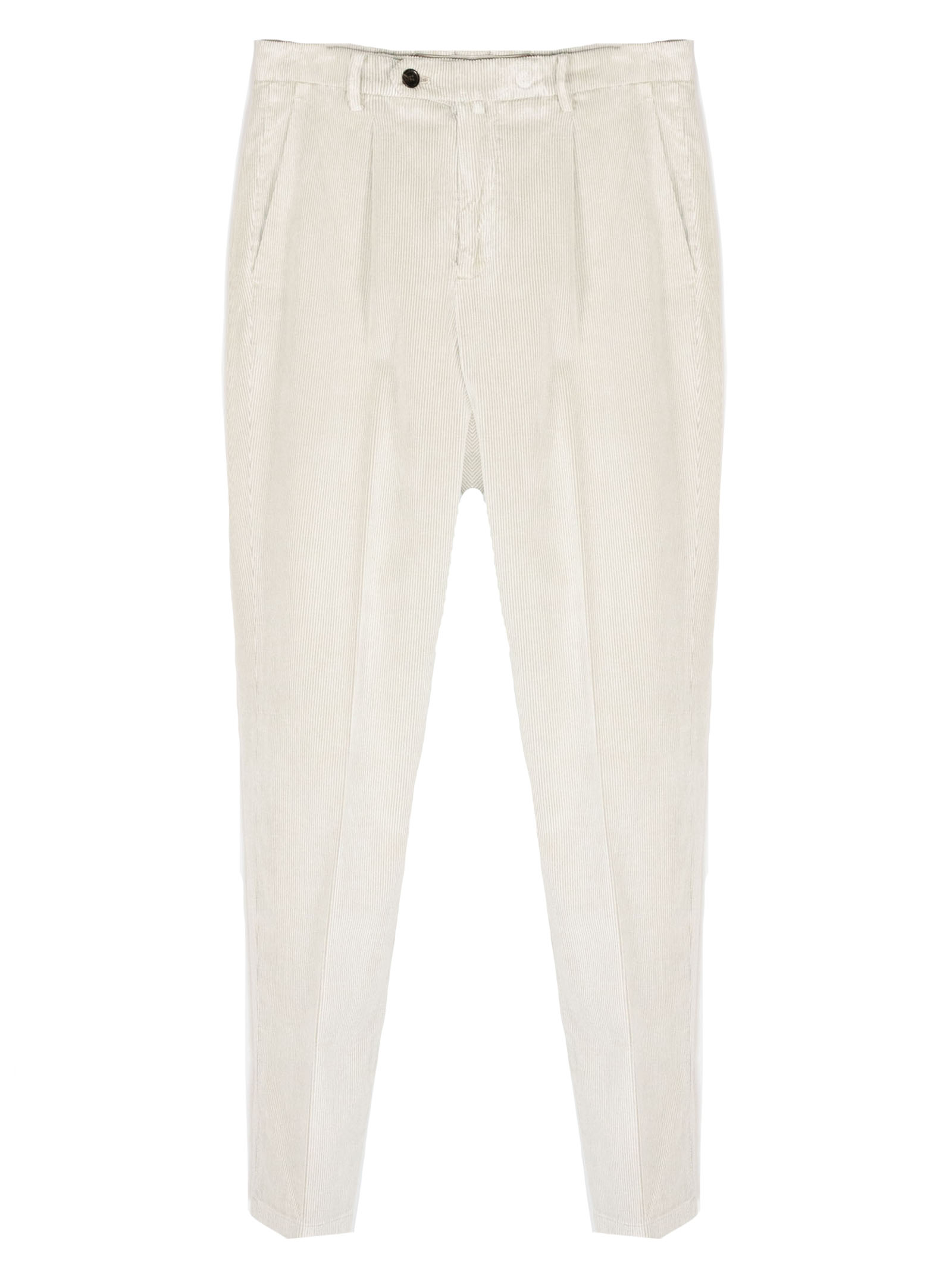 Pantalone A Coste In Velluto Di Cotone Beige Chiaro, Vita Con Passanti E Chiusura Con Bottone E Zip, Tasche Laterali Inclinate, Piega Stirata Frontale