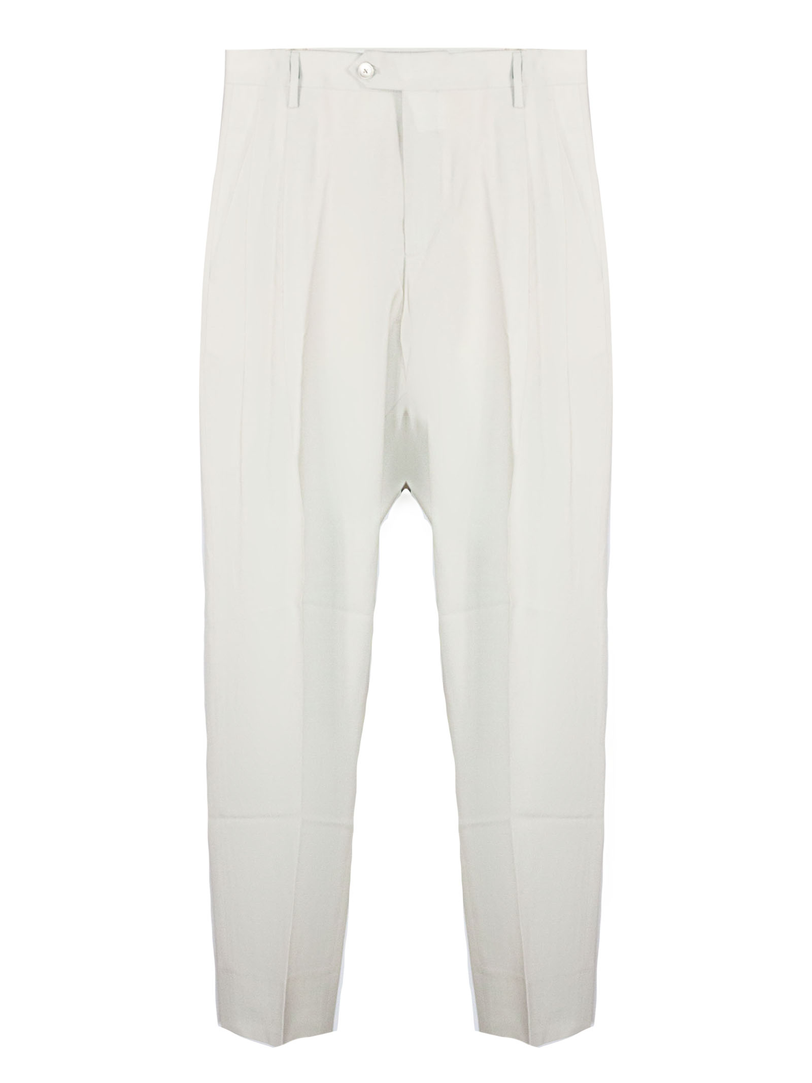 Pantalone in lana vergine beige chiaro, linea sartoriale elegante, piega frontale, chiusura con bottone e zip, vestibilità regolare, fodera in cotone