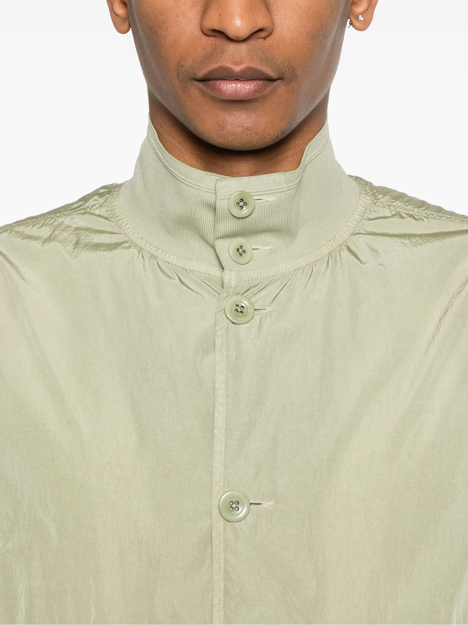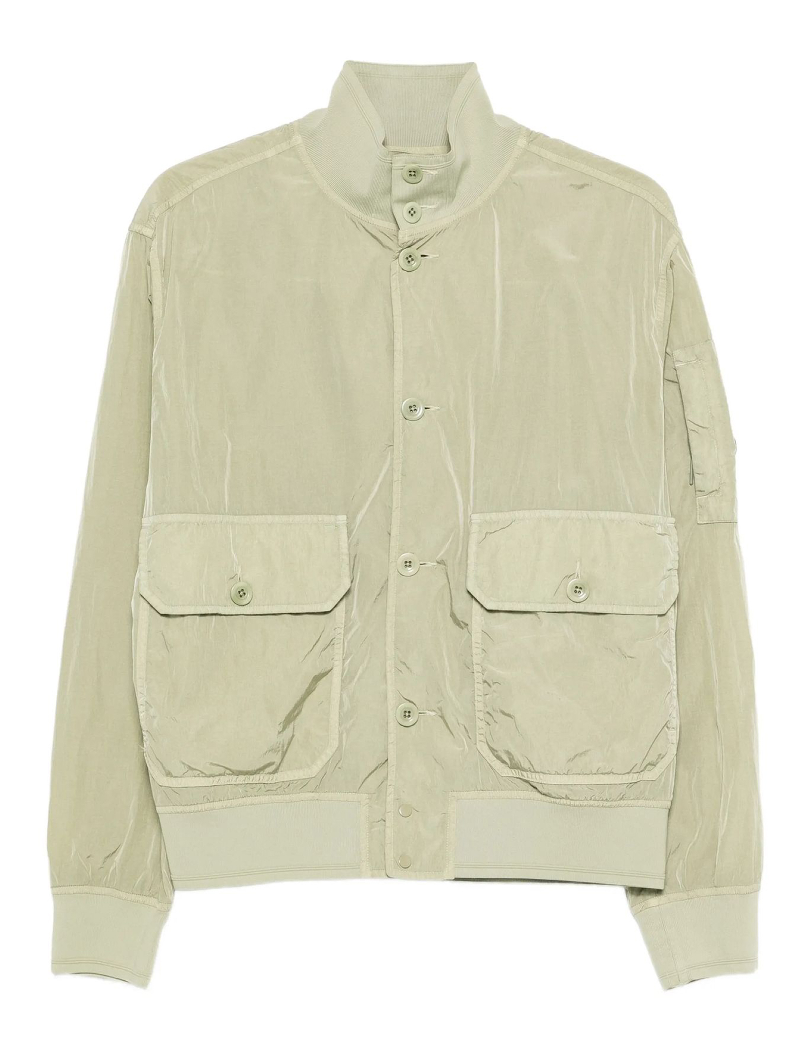 Bomber realizzato in Chrome-R verde, Collo a costine, Chiusura con bottoni, Tasche frontali con patta e bottoni con apertura laterale, Taschino con Lente, Polsini e orlo elasticizzati, Bottoni automatici sull'orlo, Tinto in capo, Regular fit
