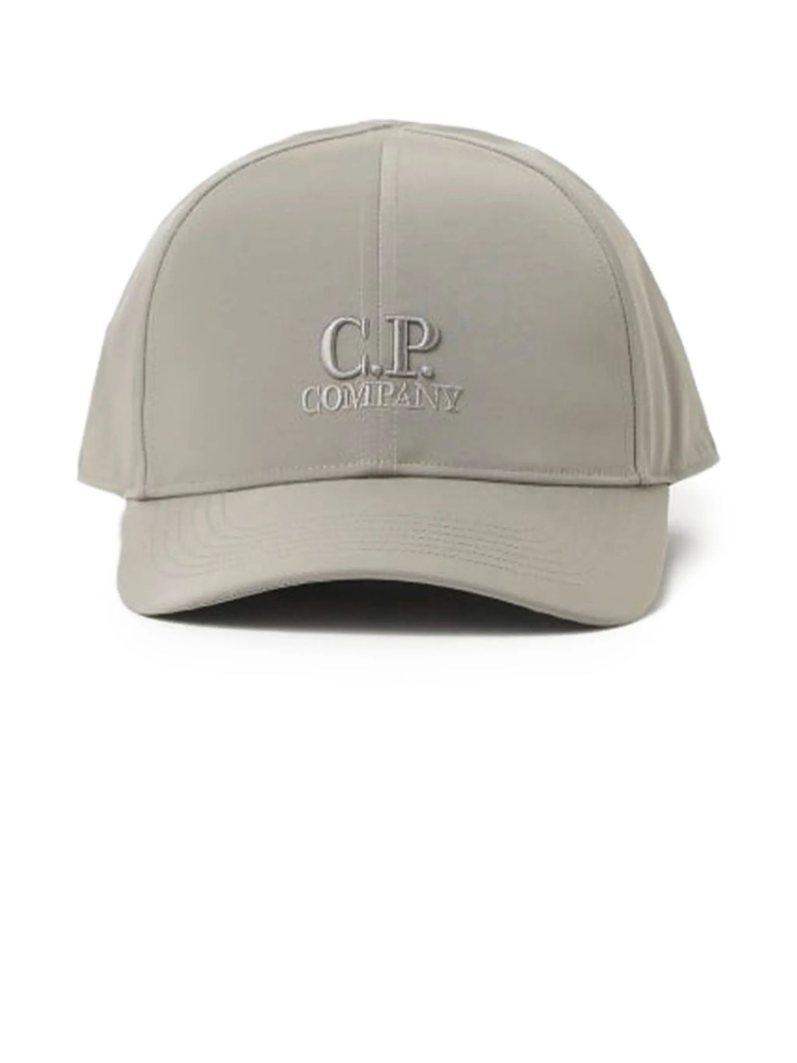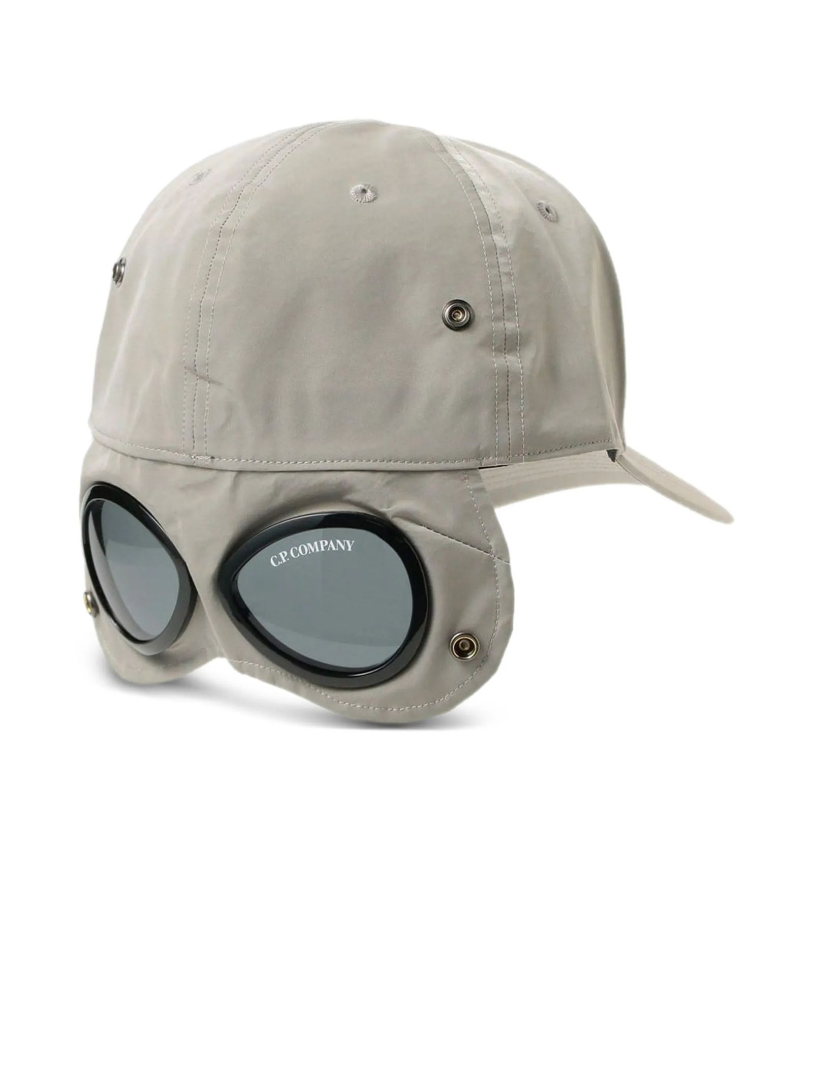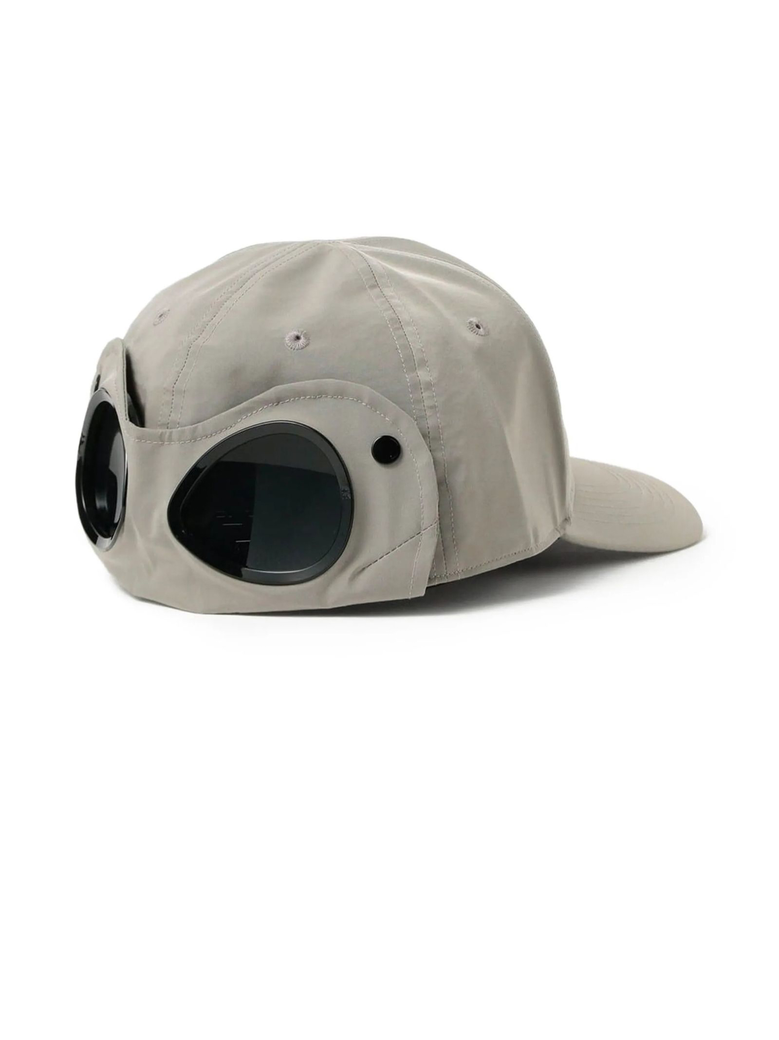 Cappello da baseball grigio, dettaglio con occhialini, rivetti, logo tono su tono, tesa curva