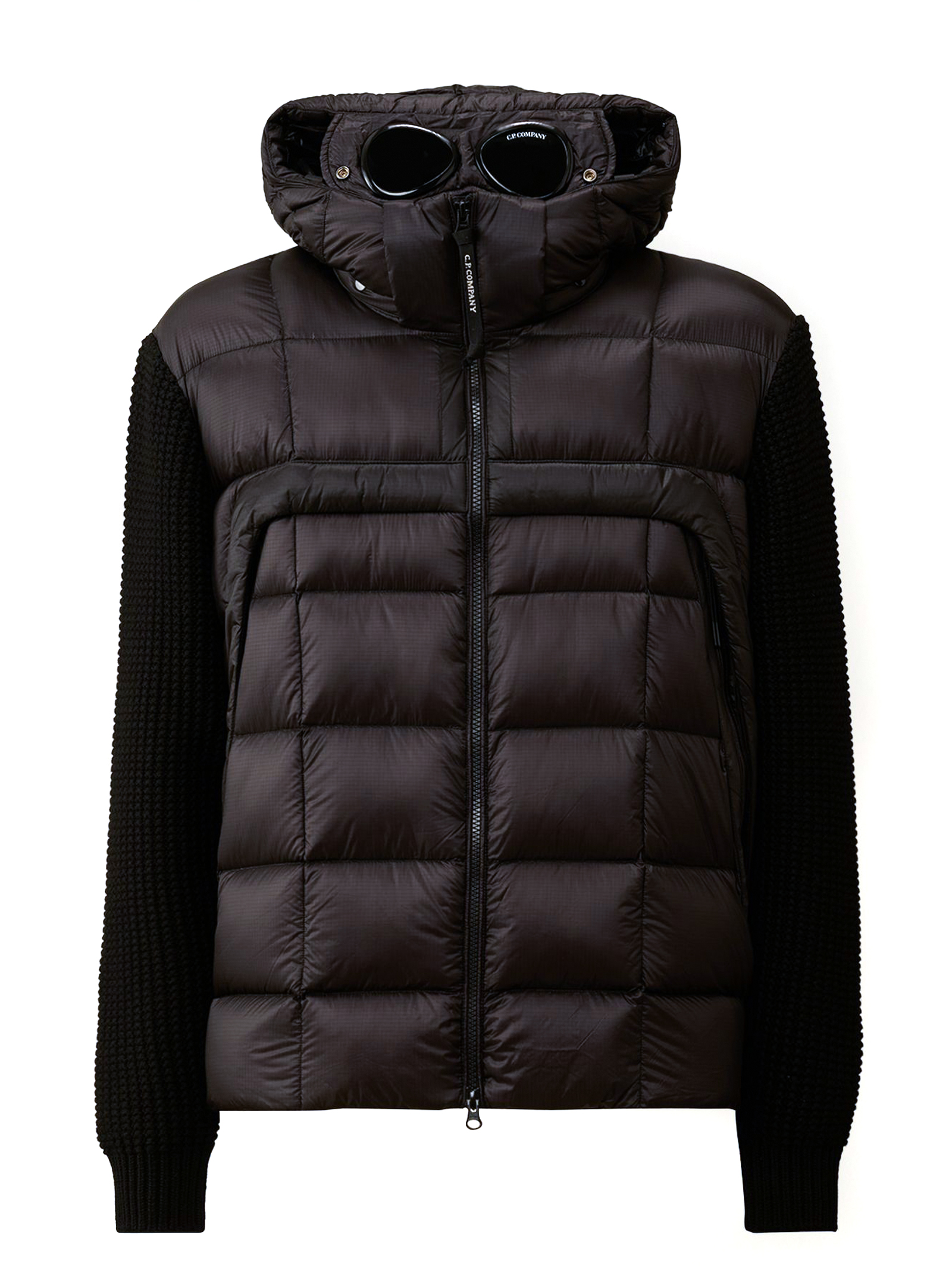 Giubotto maglione full zip in lana merino extrafine con inserti mixed in D.D. Shell, cappuccio Goggle staccabile e regolabile, chiusura full zip a doppio cursore, tasche laterali con zip nascosta, polsini a costine, regular fit