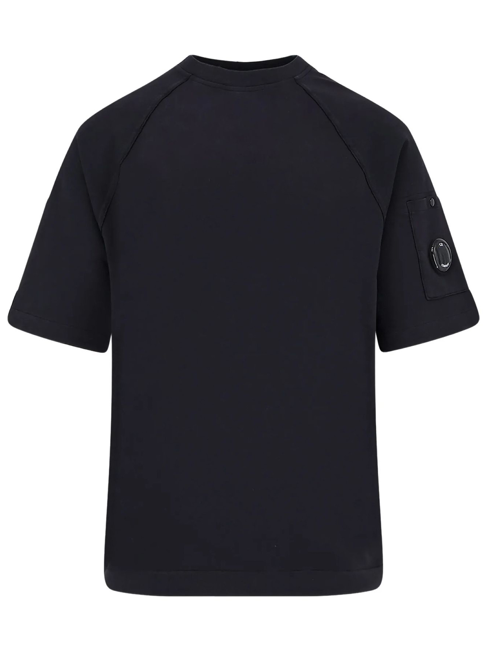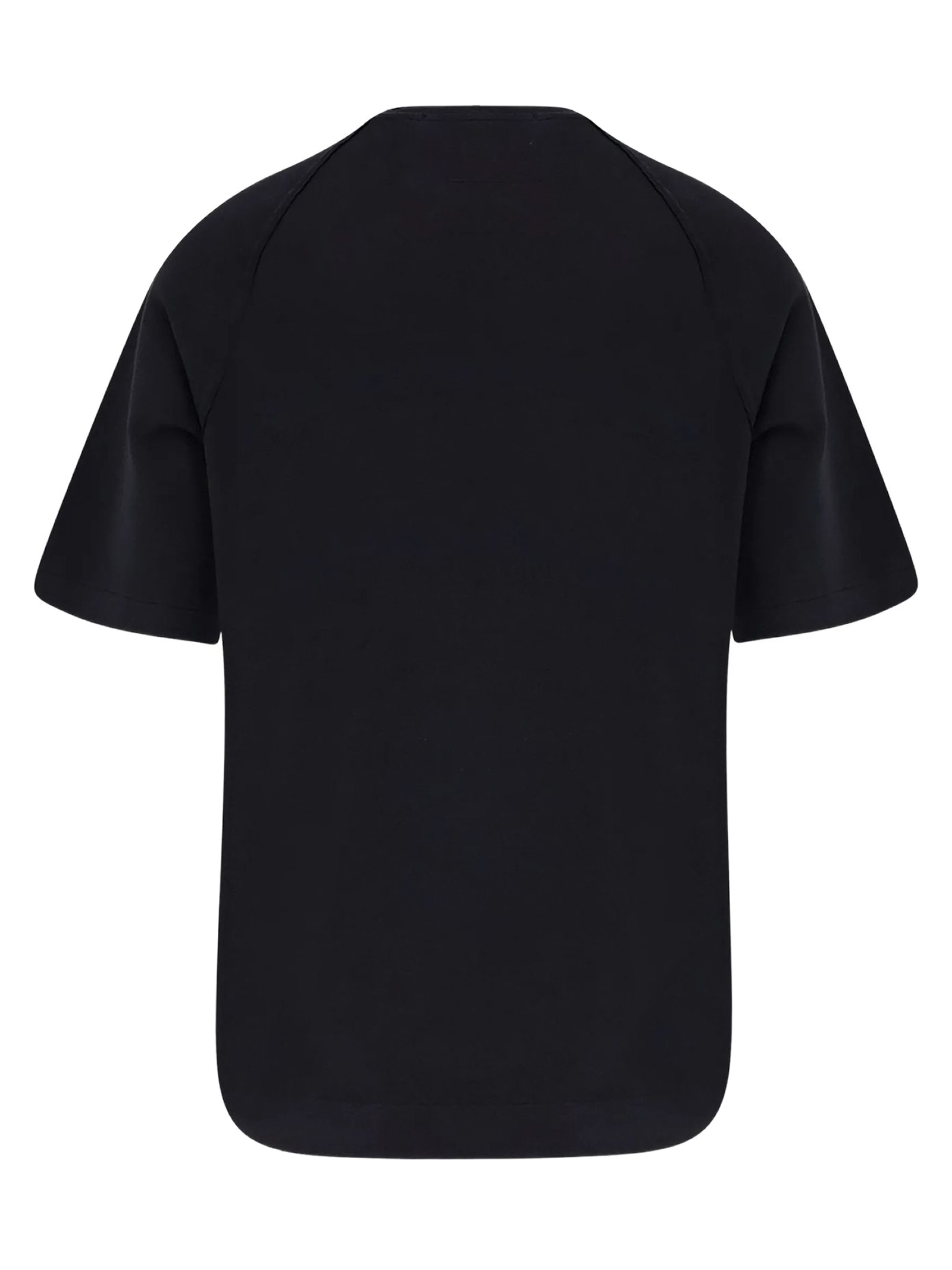 T-Shirt In Cotone Nero Con Girocollo A Costine, Maniche Raglan, Taschino Con Lente, Regular Fit