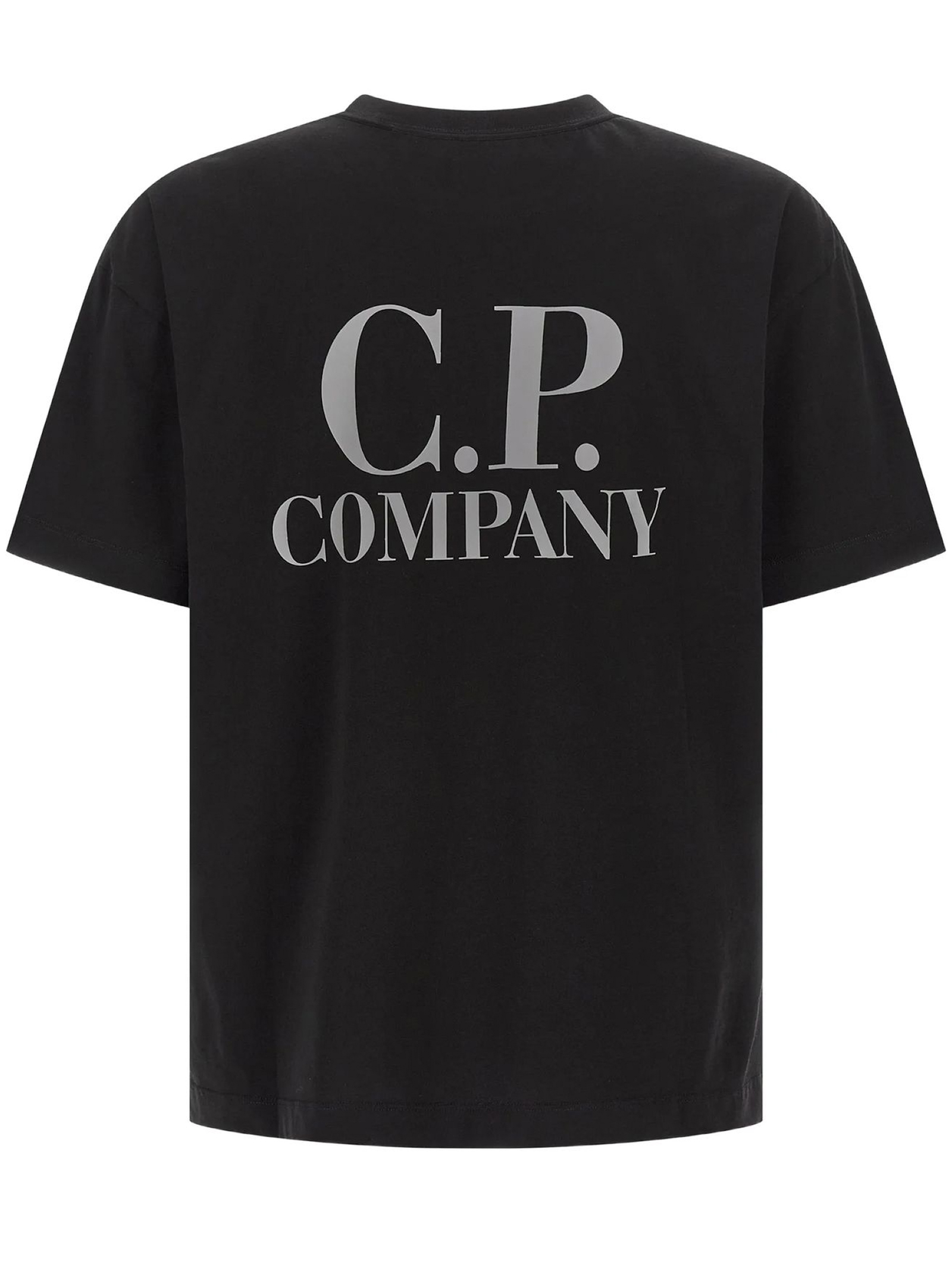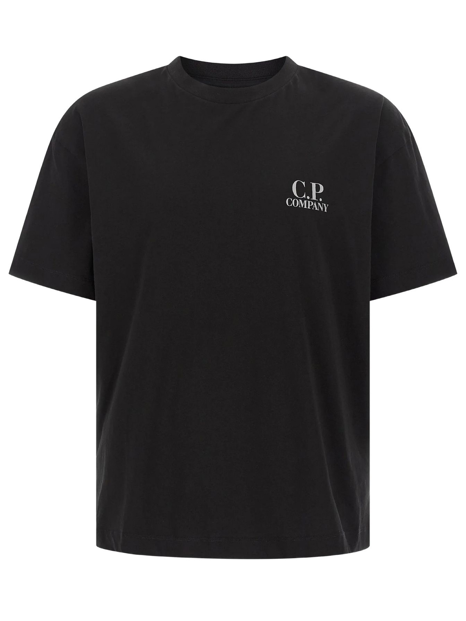 T-shirt in cotone nero con Girocollo a costine, Logo stampato su petto e retro, Comfort fit