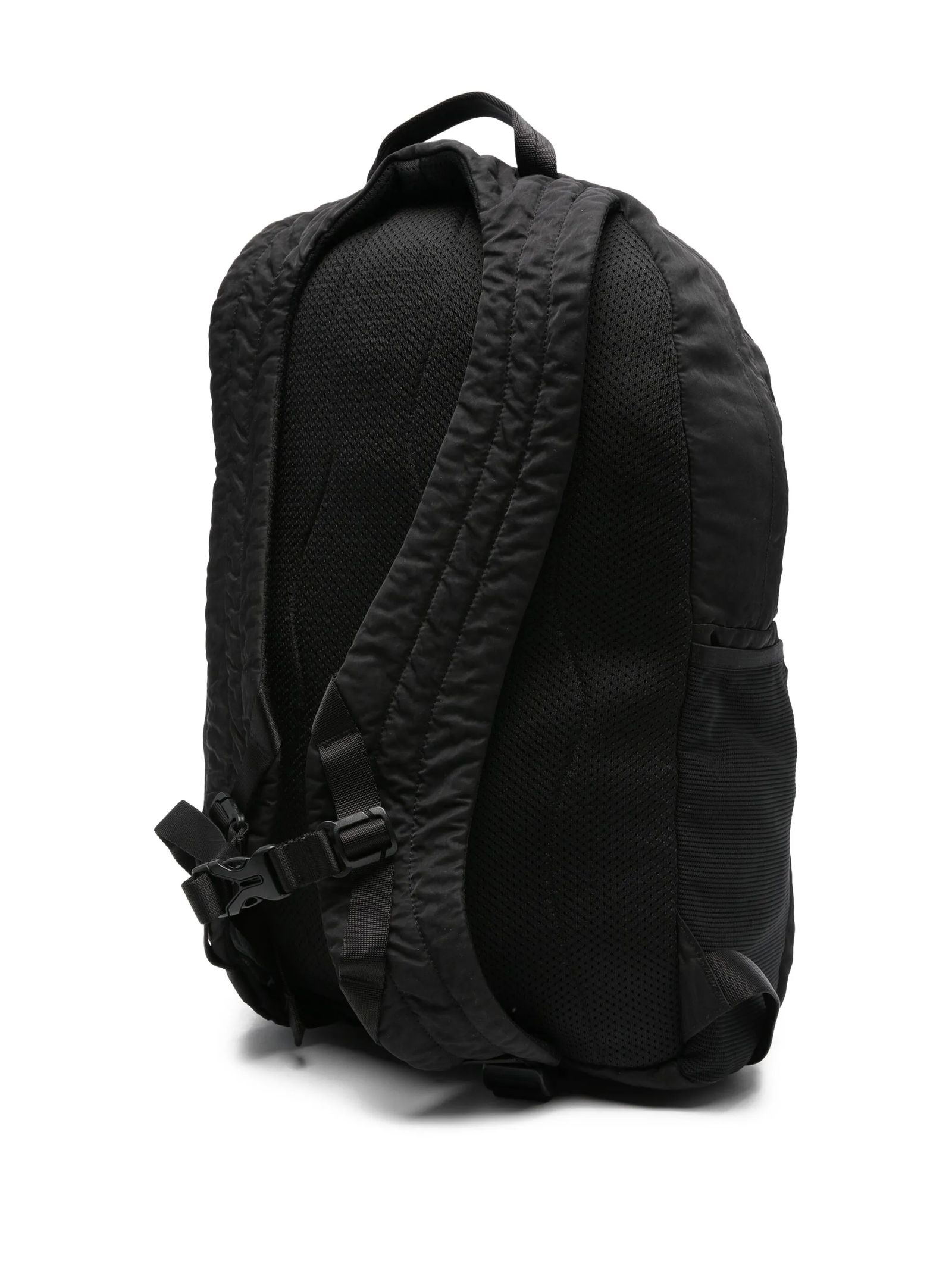 Zaino in Nylon B Nero, Cinghia e fibbia regolabili, Spallacci imbottiti, Impugnatura, Lente con tasca zip nascosta, Tasca sul fondo con zip, Mesh laterale, Tasca interna con bottone automatico, Tinto in capo