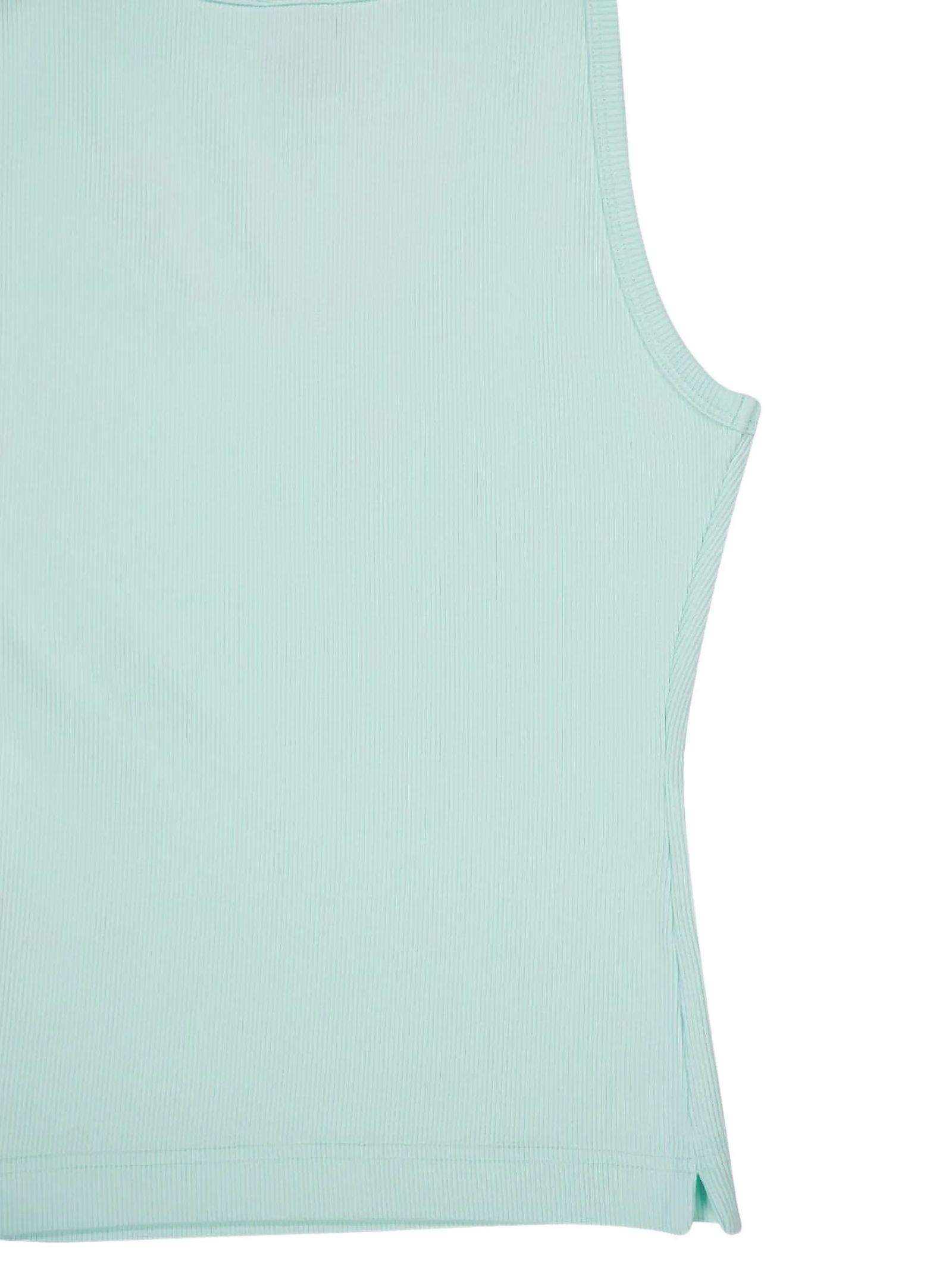 Canotta a coste in cotone verde menta, scollo quadrato, design a coste, senza maniche, applicazione frontale con logo