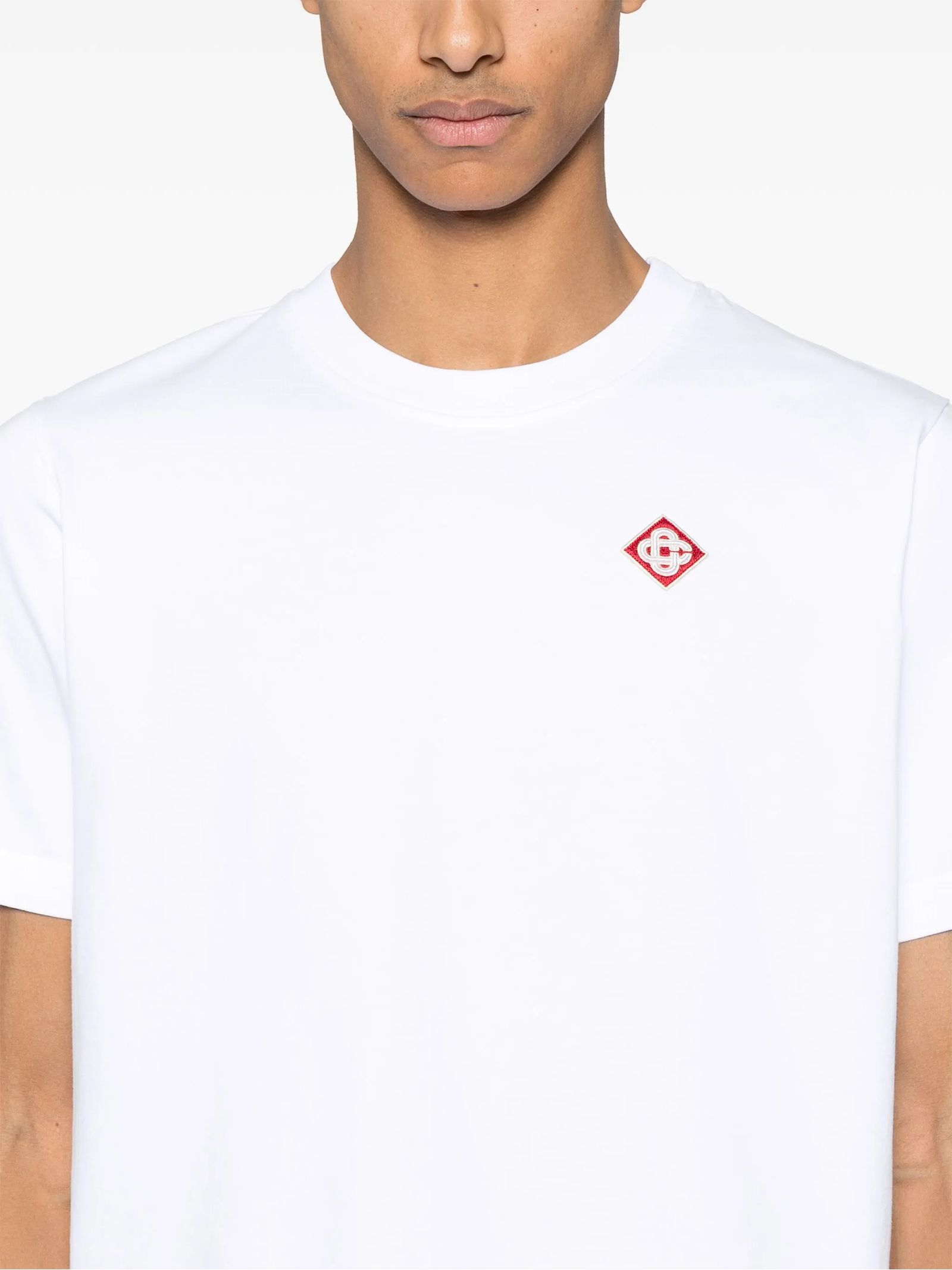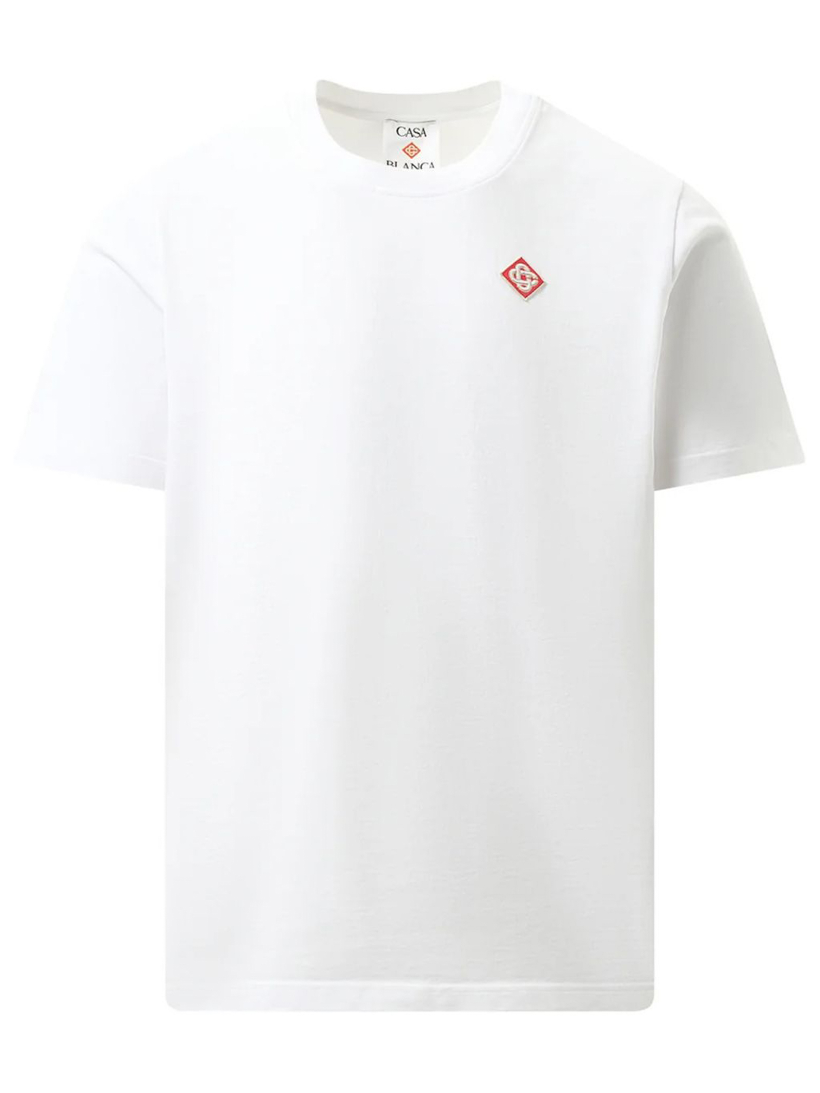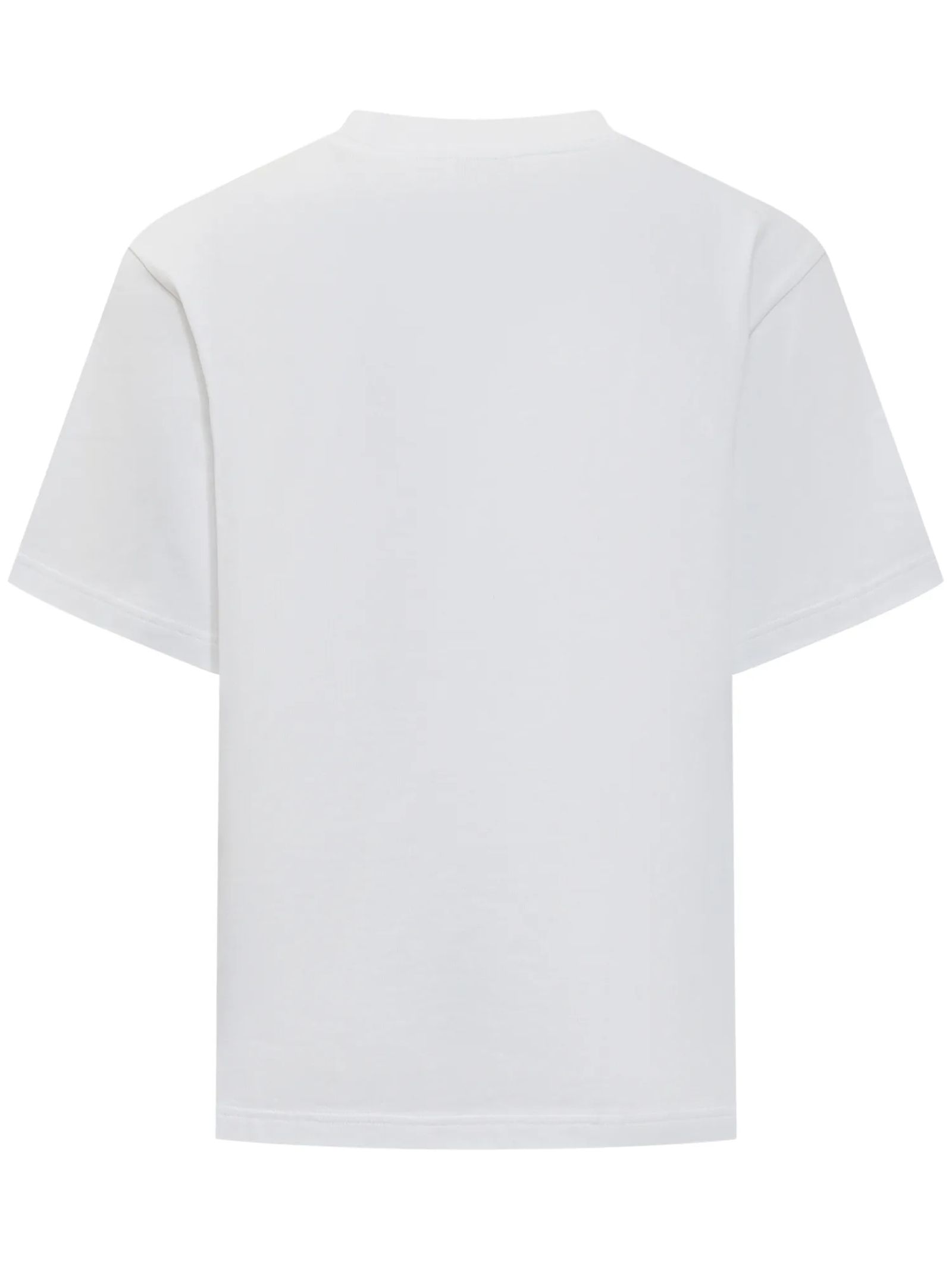 T-shirt in cotone bianco, logo, girocollo, maniche corte, orlo dritto