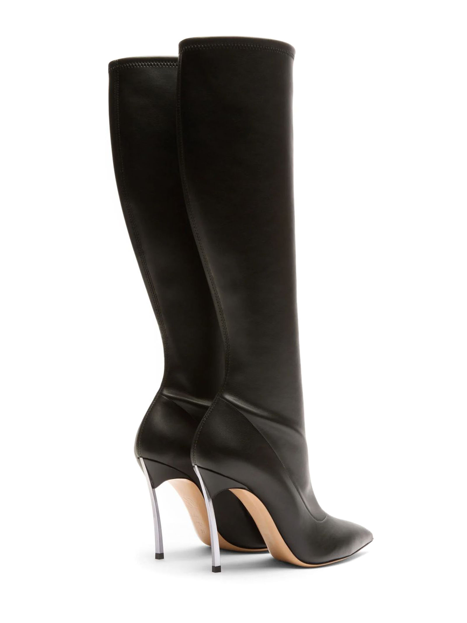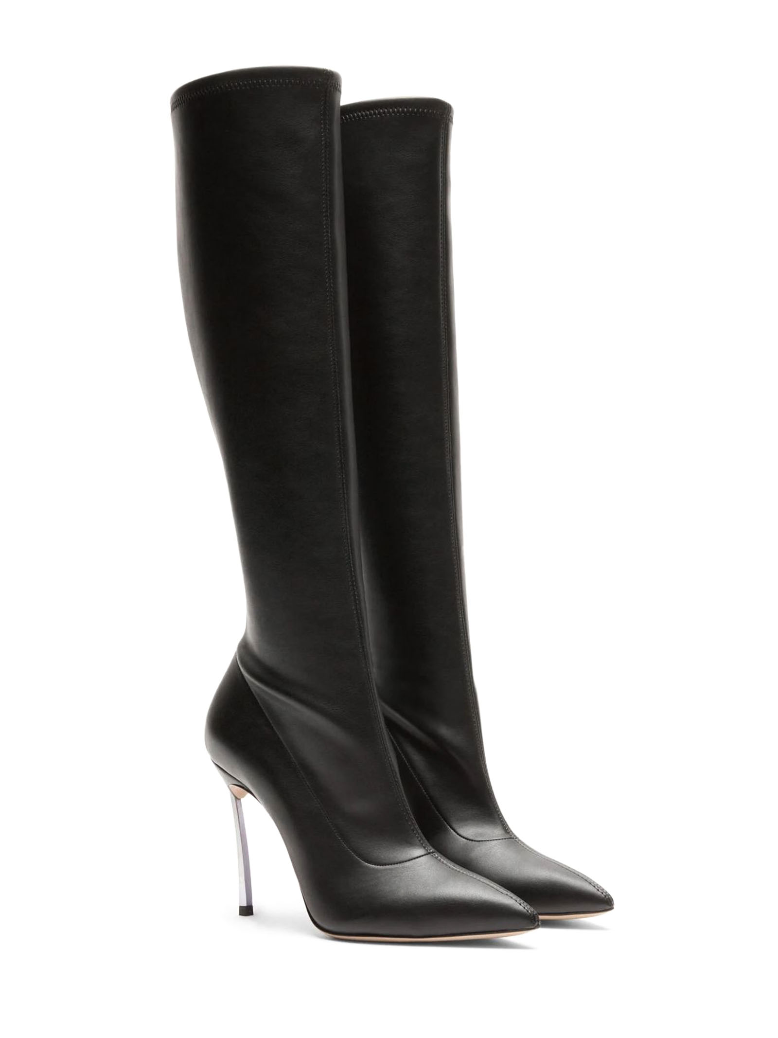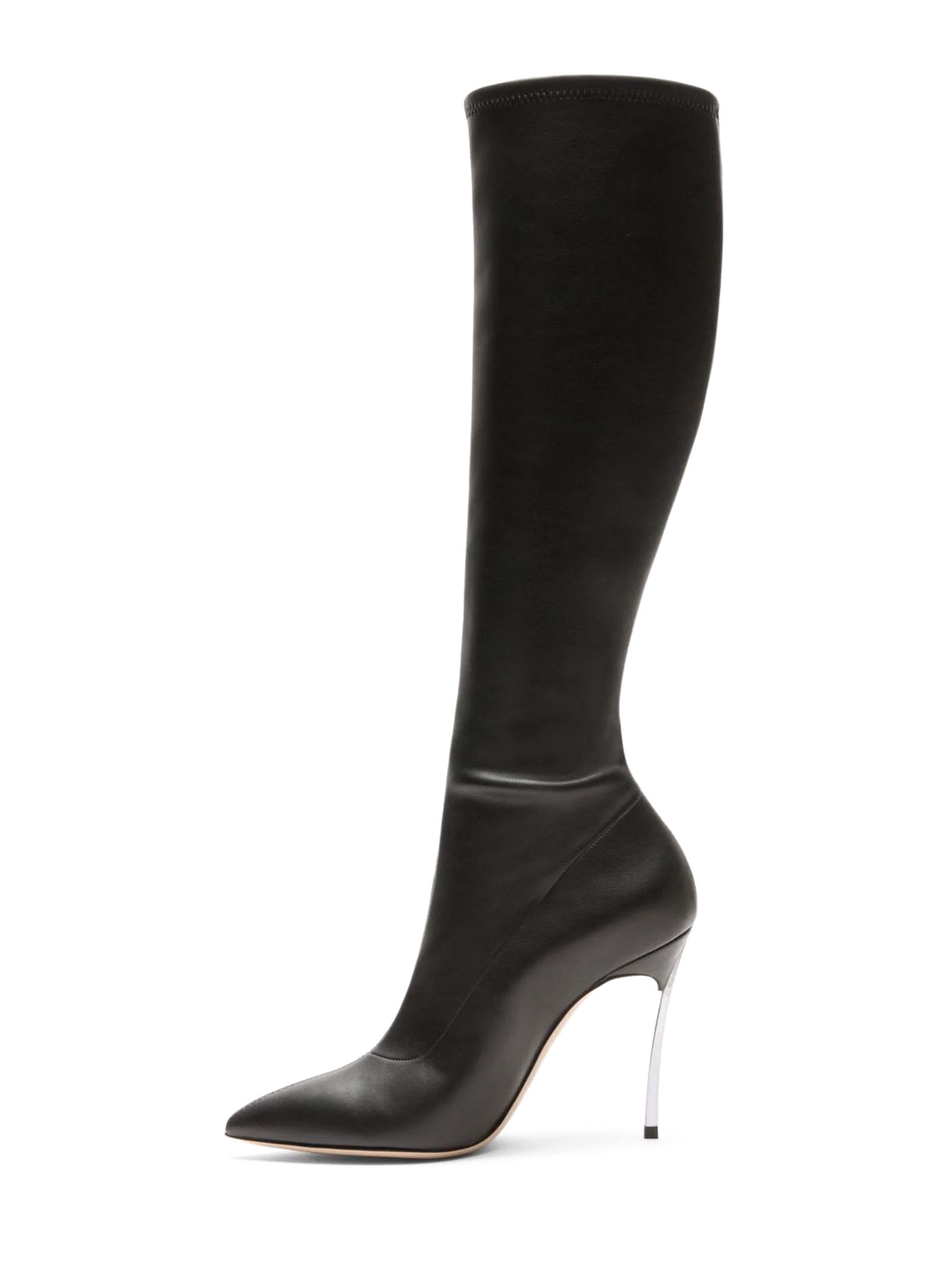 Stivali al ginocchio in tessuto stretch effetto pelle, tacco blade in acciaio e la punta allungana, altezza tacco 100Mm / 3.9 Inches