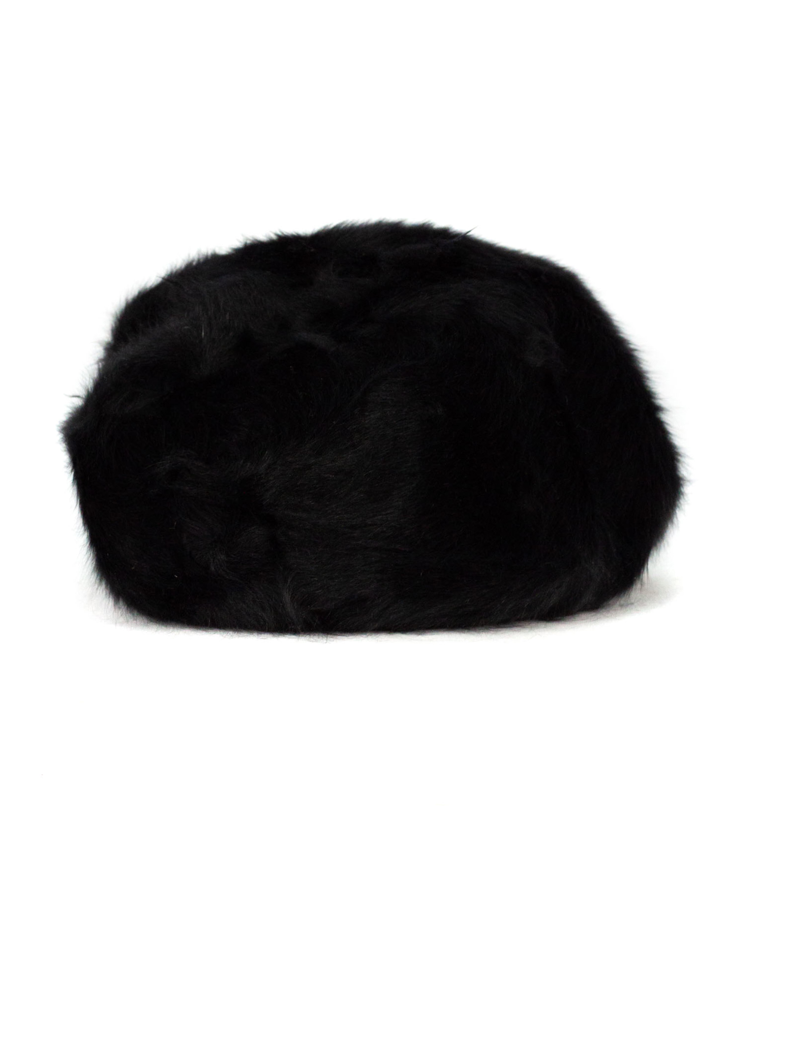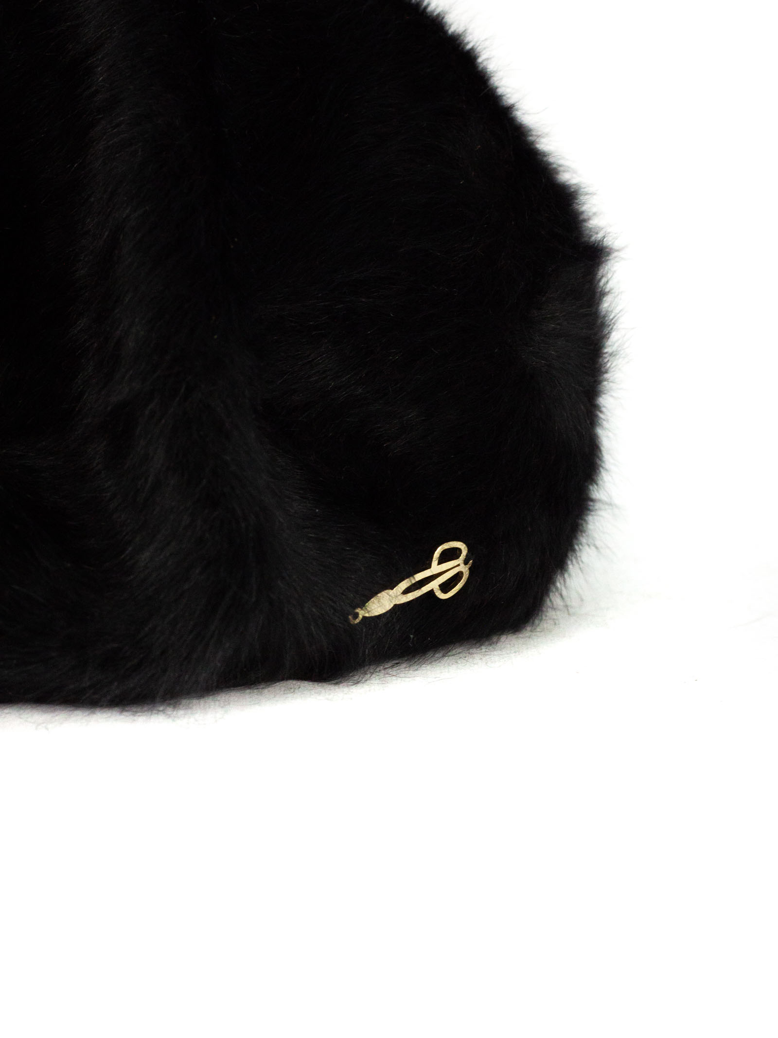 Basco in angora e lana nero con dettaglio logo applicato a mano