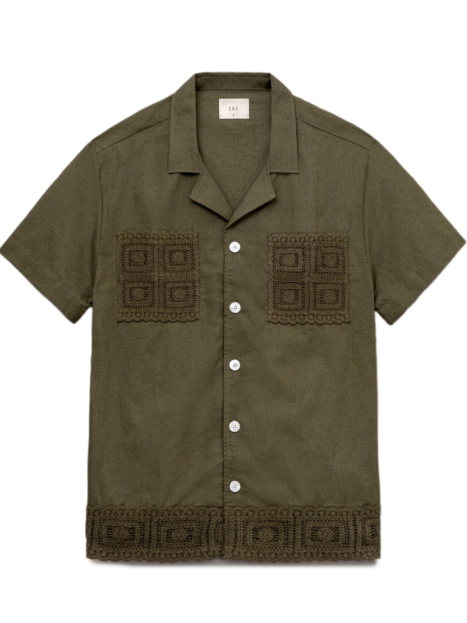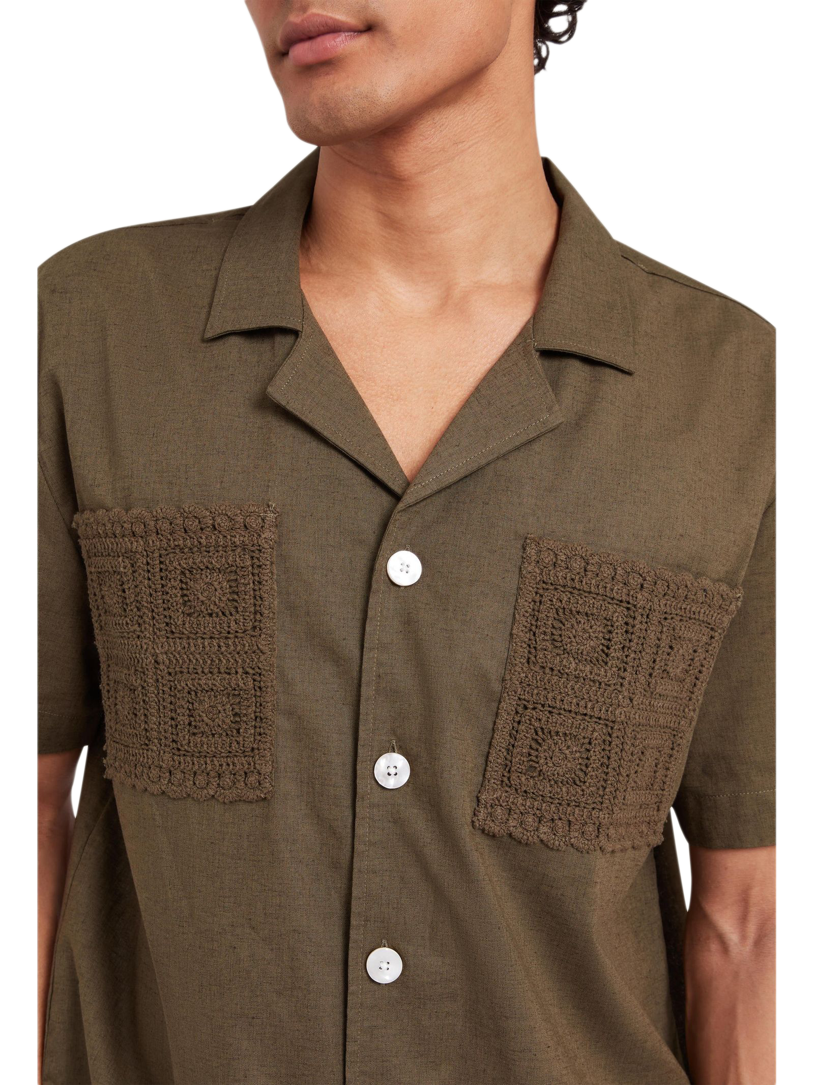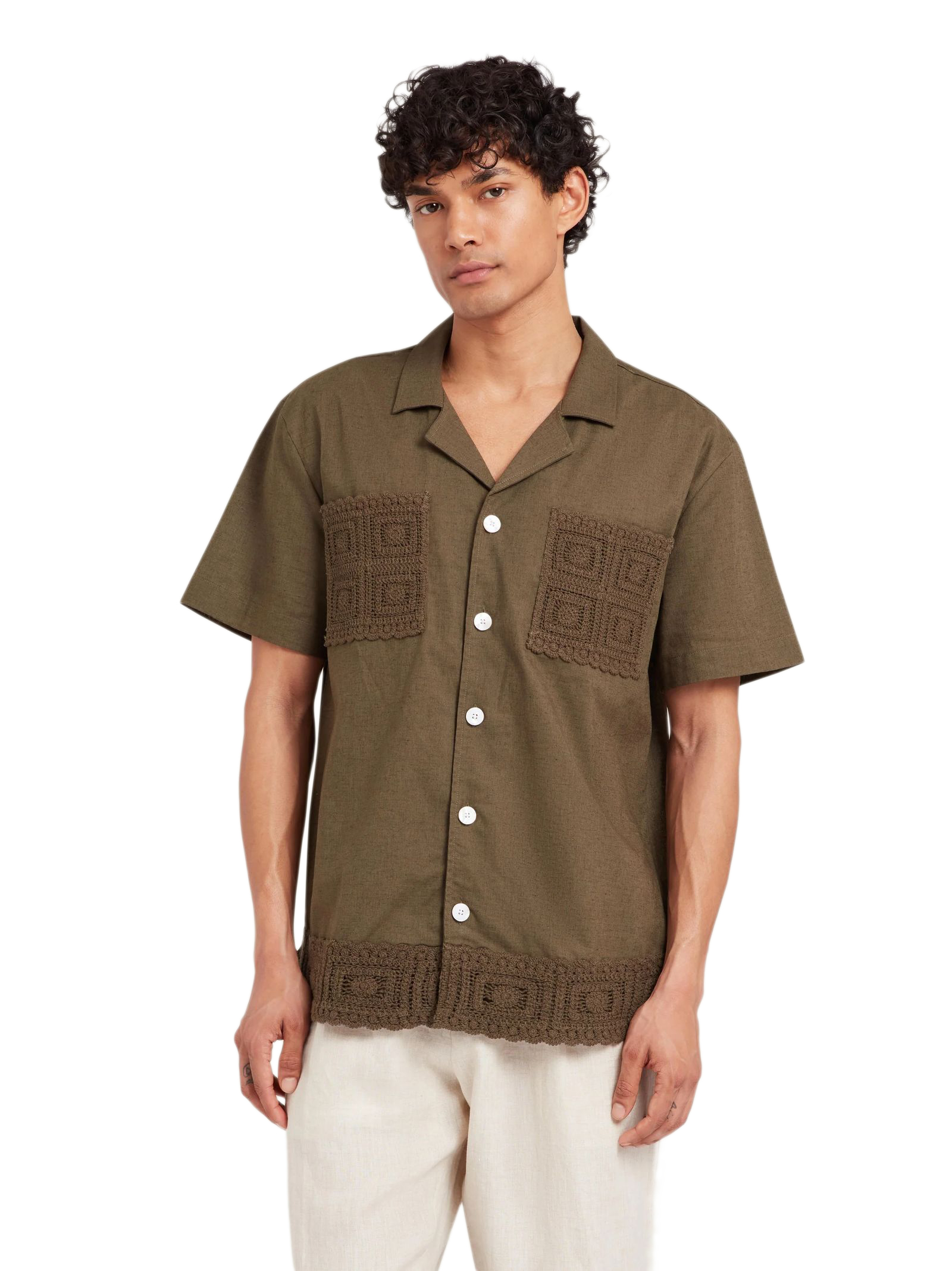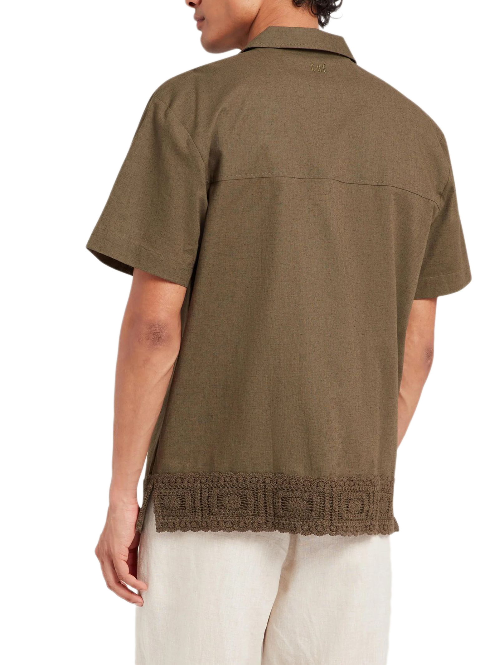 Camicia dalla vestibilità comoda in misto lino con collo alla marinara, caratterizzata dal tipico dettaglio all'uncinetto di Inigo, chiusura frontale con bottoni e maniche corte; 70% cotone, 30% lino