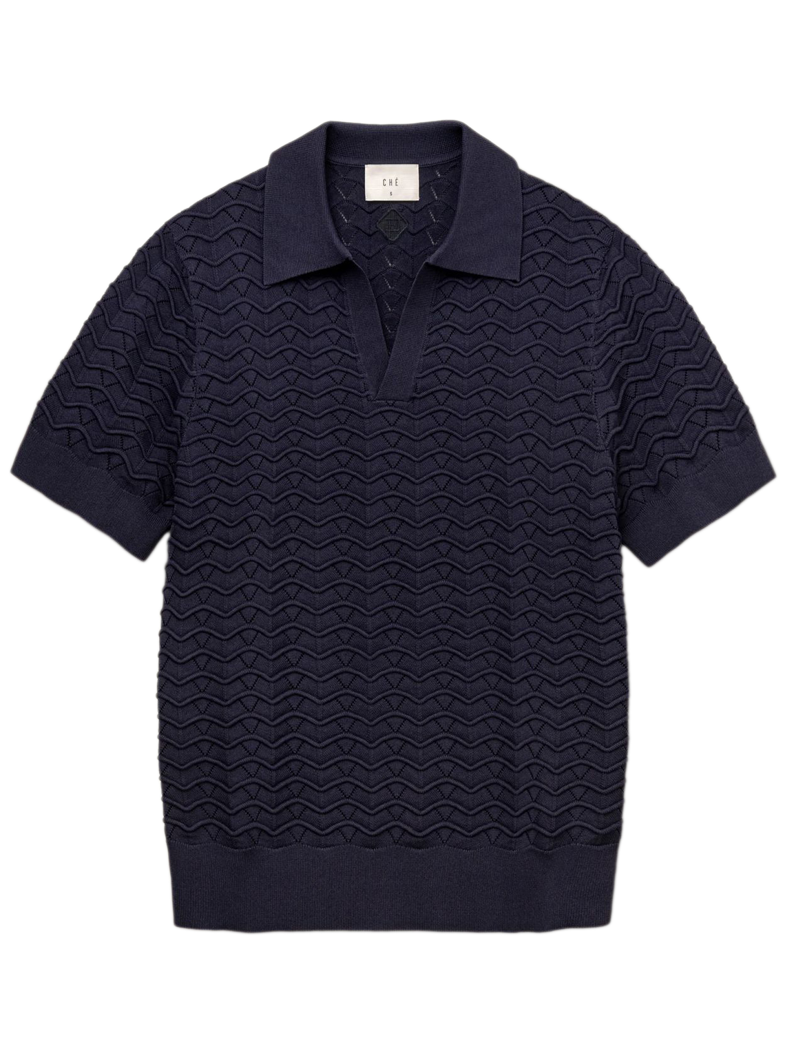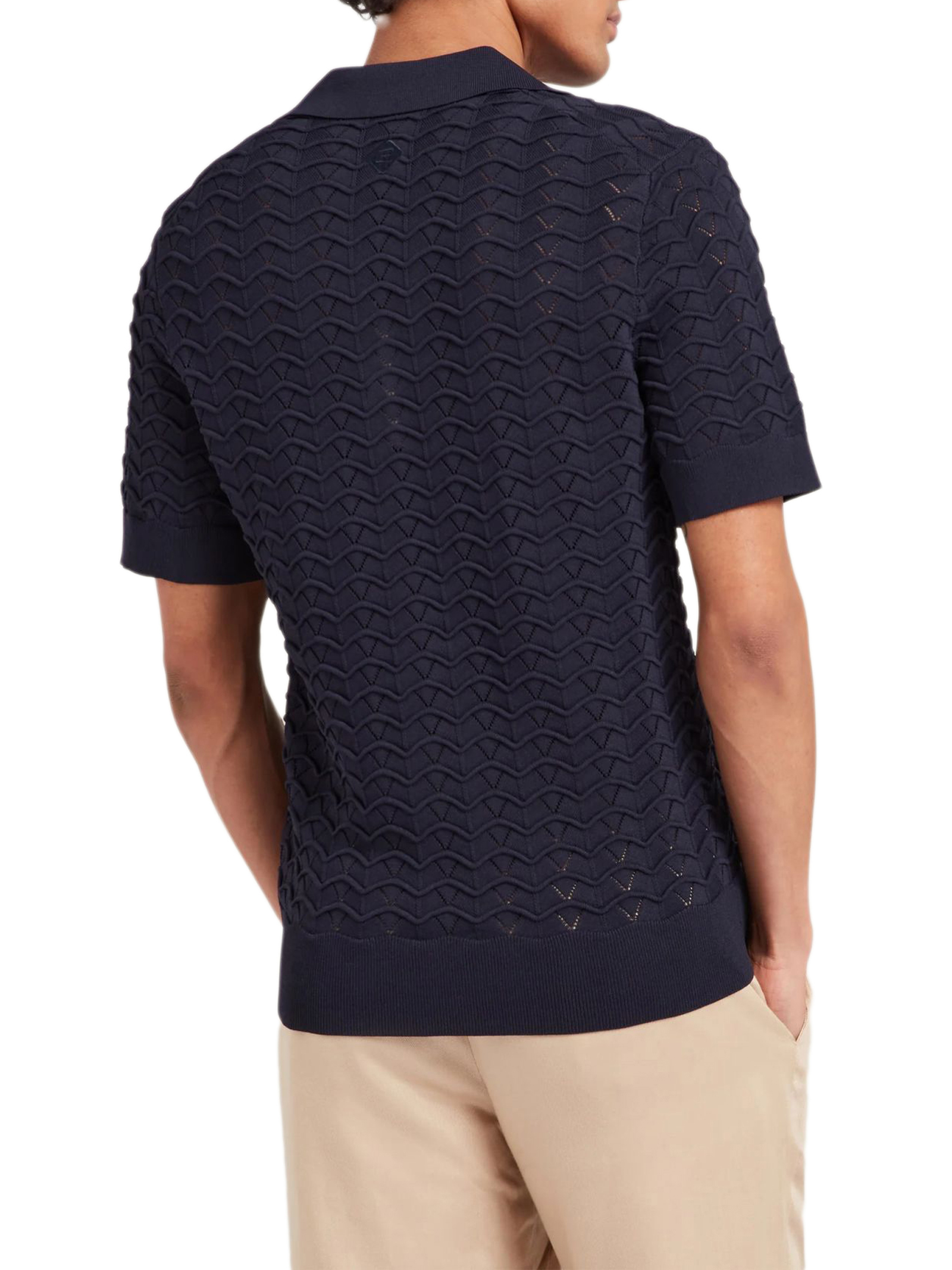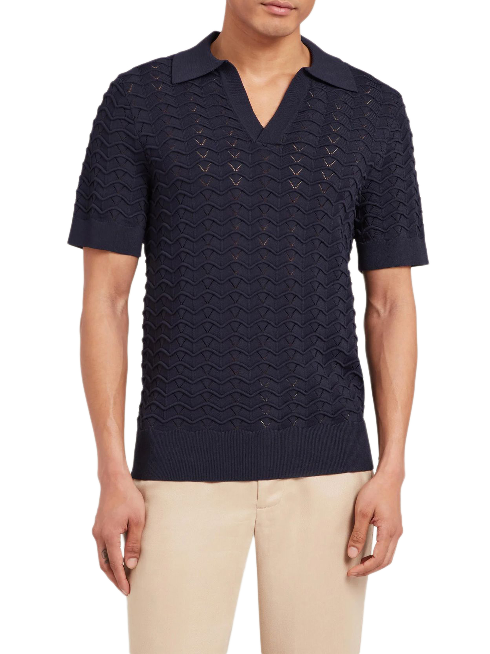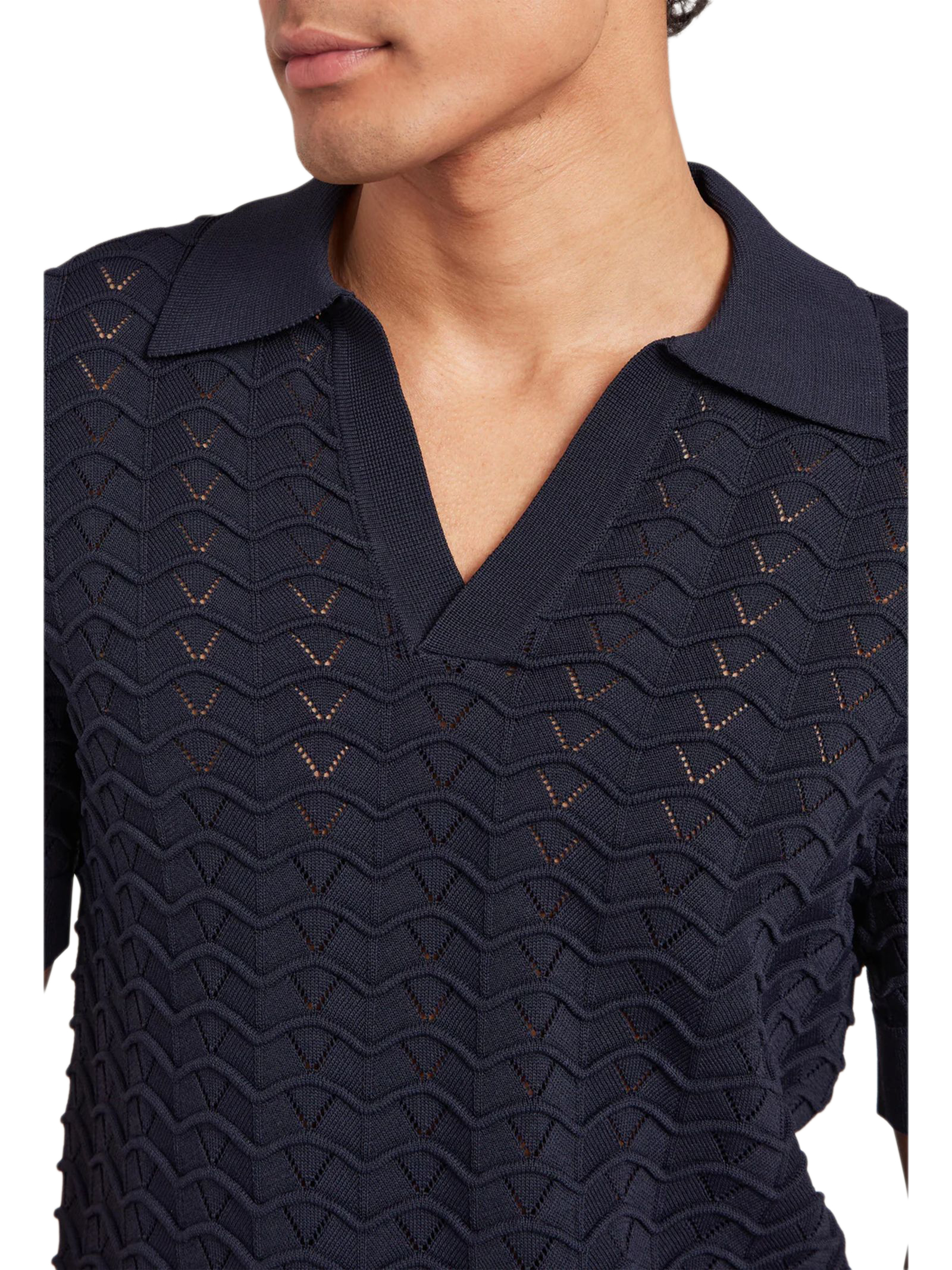 Polo in maglia a onde, vestibilità comoda, caratterizzata da una maglia strutturata con una distintiva trama a onde, collo aperto e bordi a costine, 63% Rayon 37% Nylon