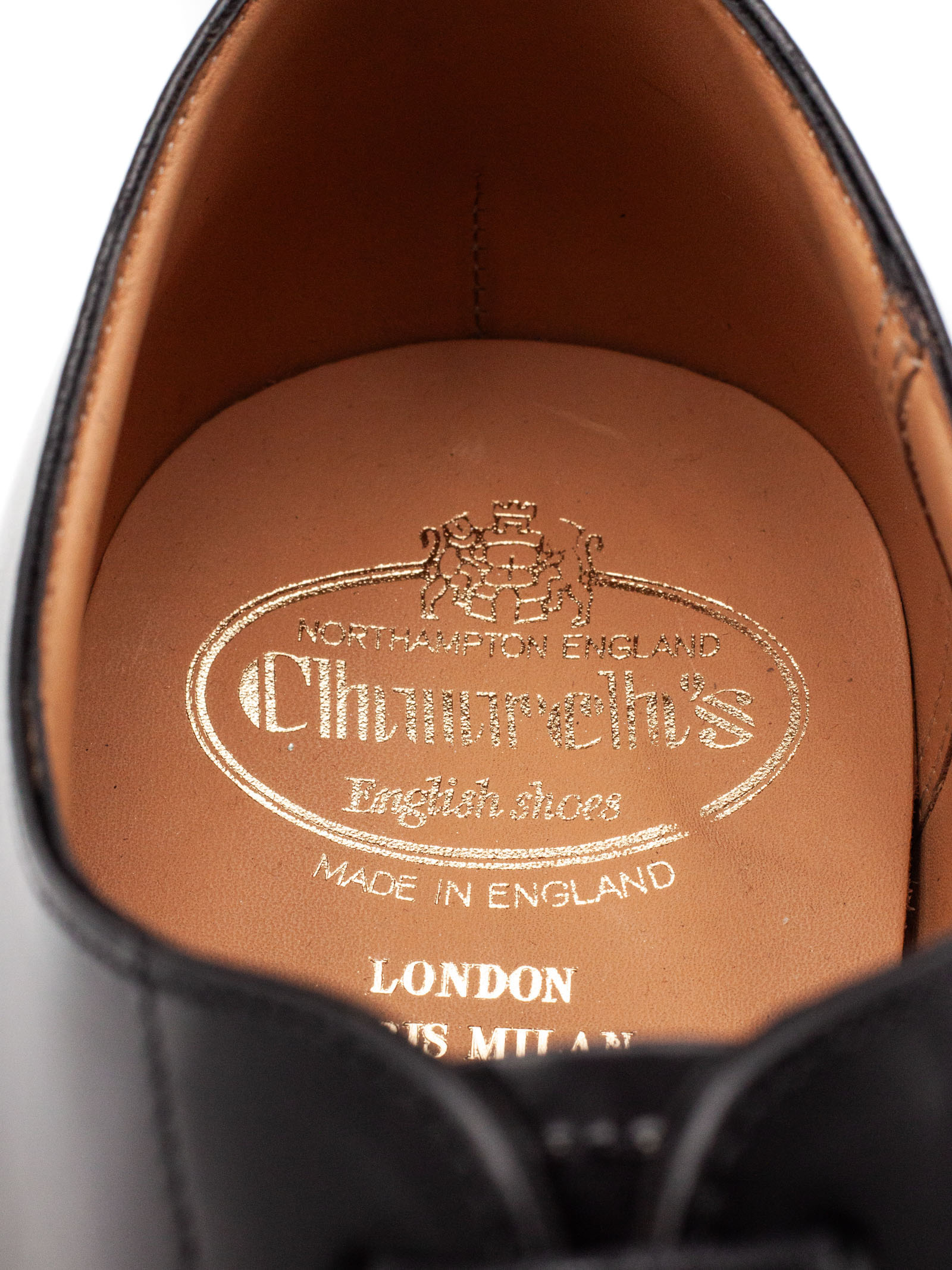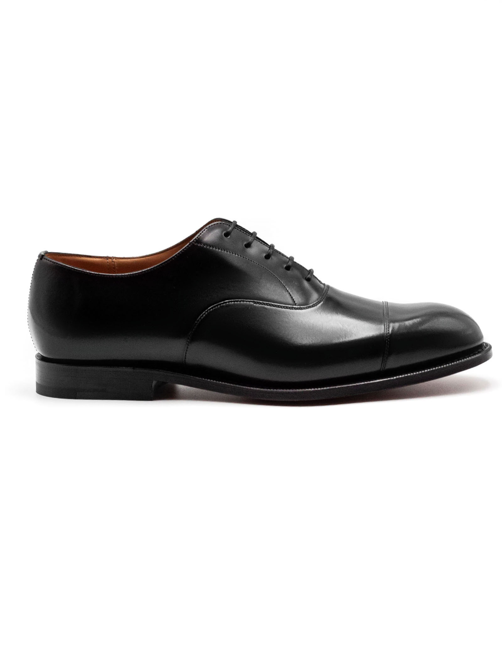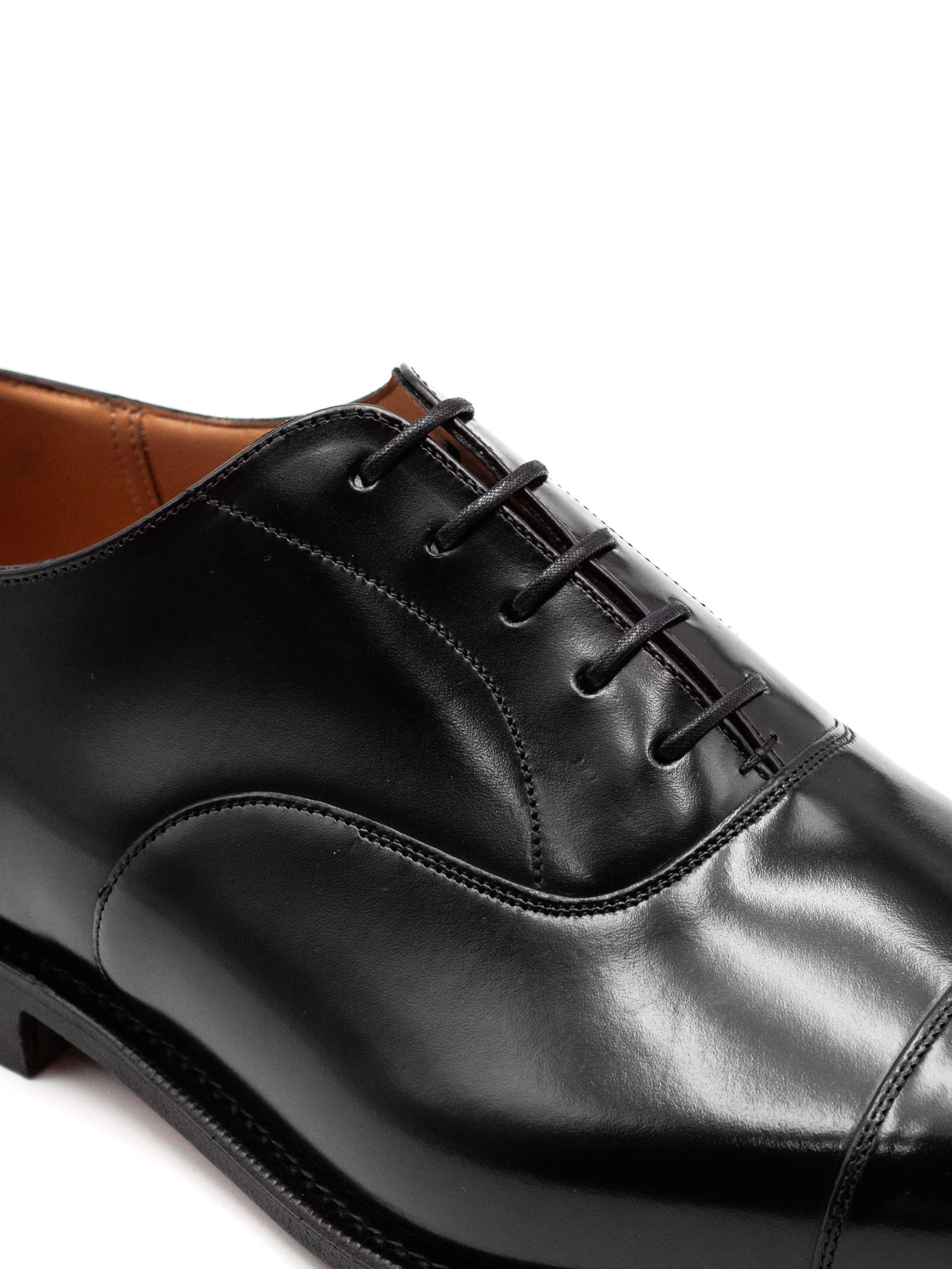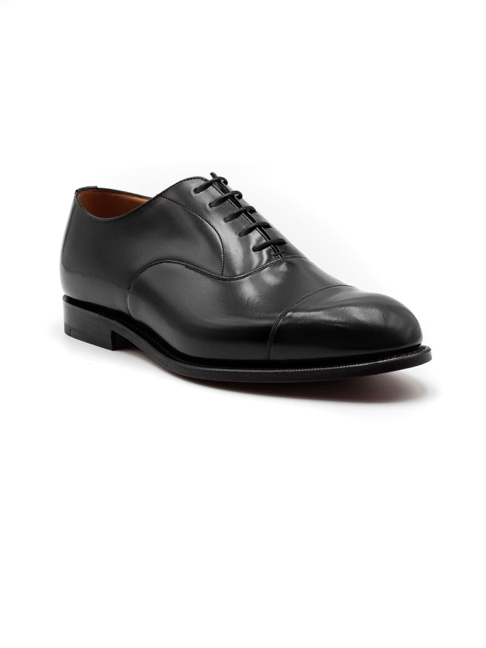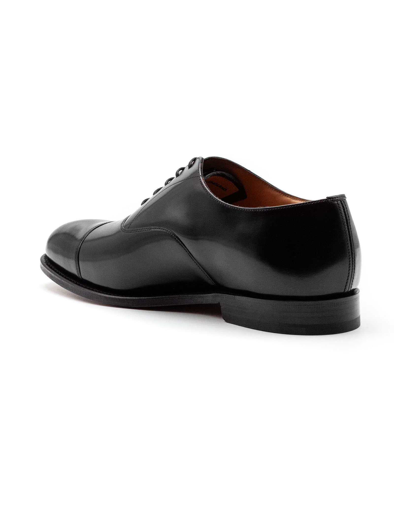 Consul Oxford in Pelle di Vitello Nero, lacci di cotone, occhielli ciechi, forma 173, suola in cuoio, fodera interna per la massima durata, informazioni sulla scarpa riportate a mano sulla fodera, costruzione Goodyear