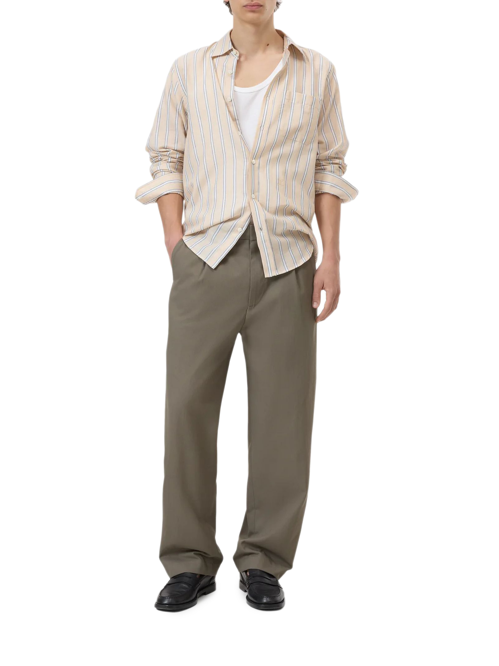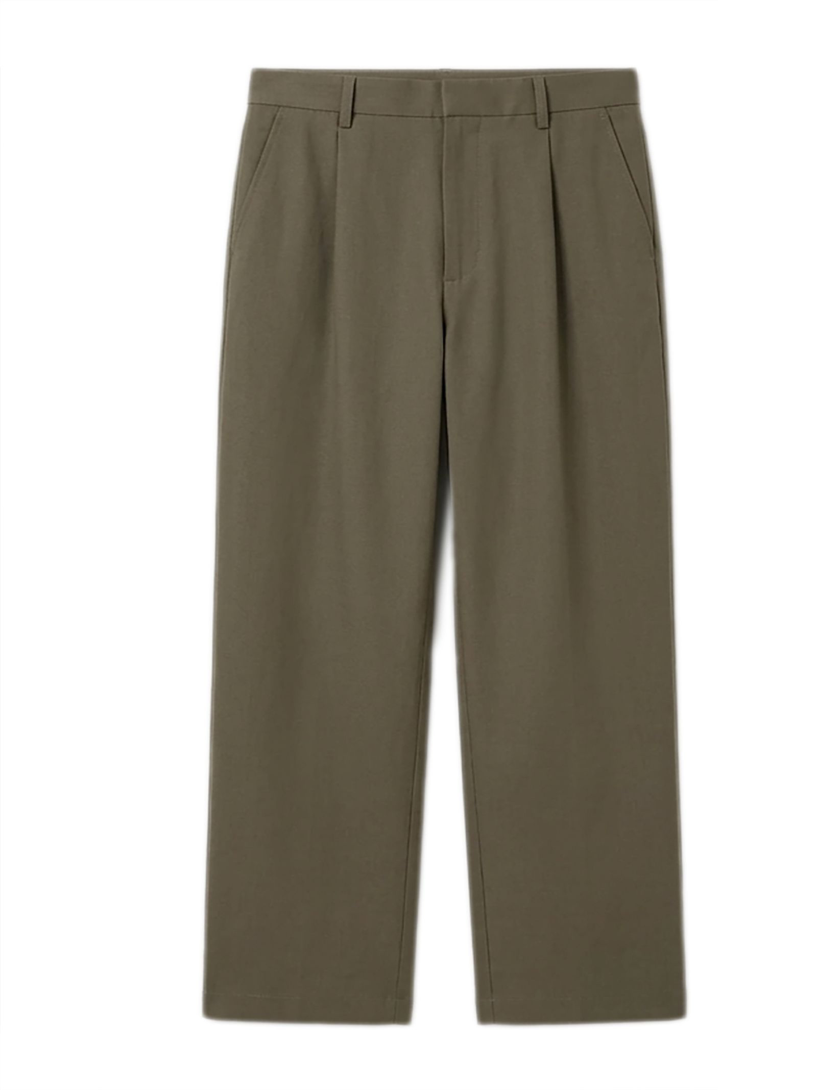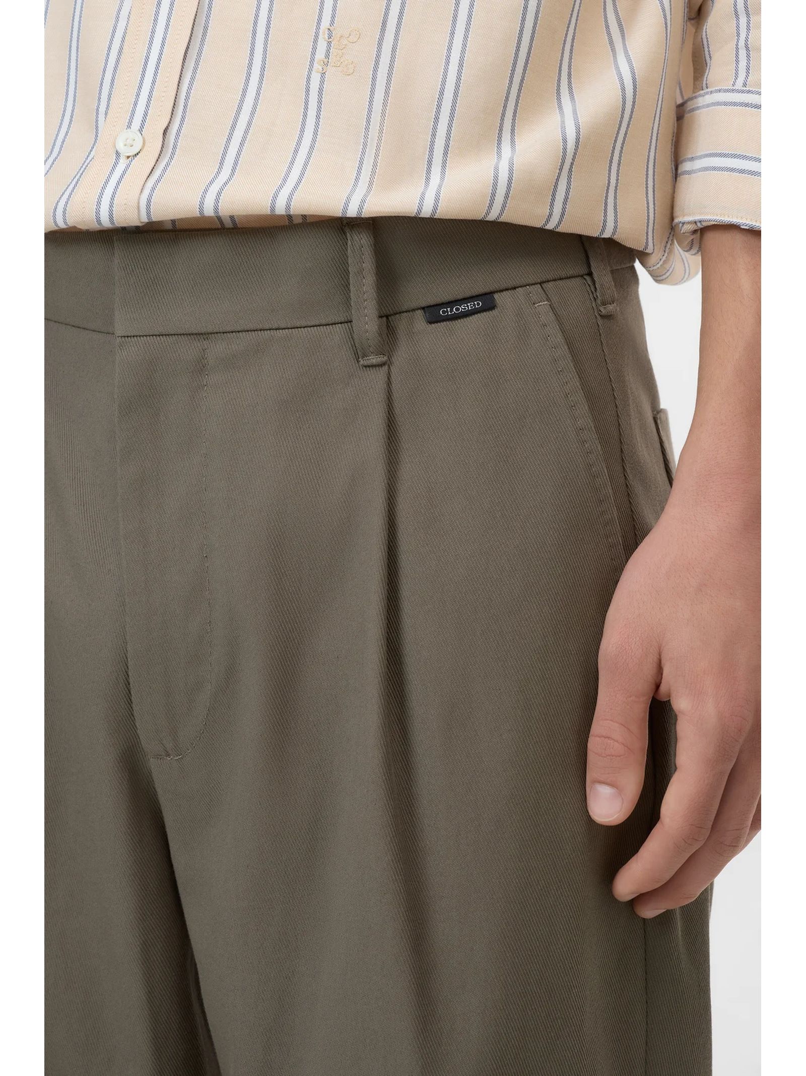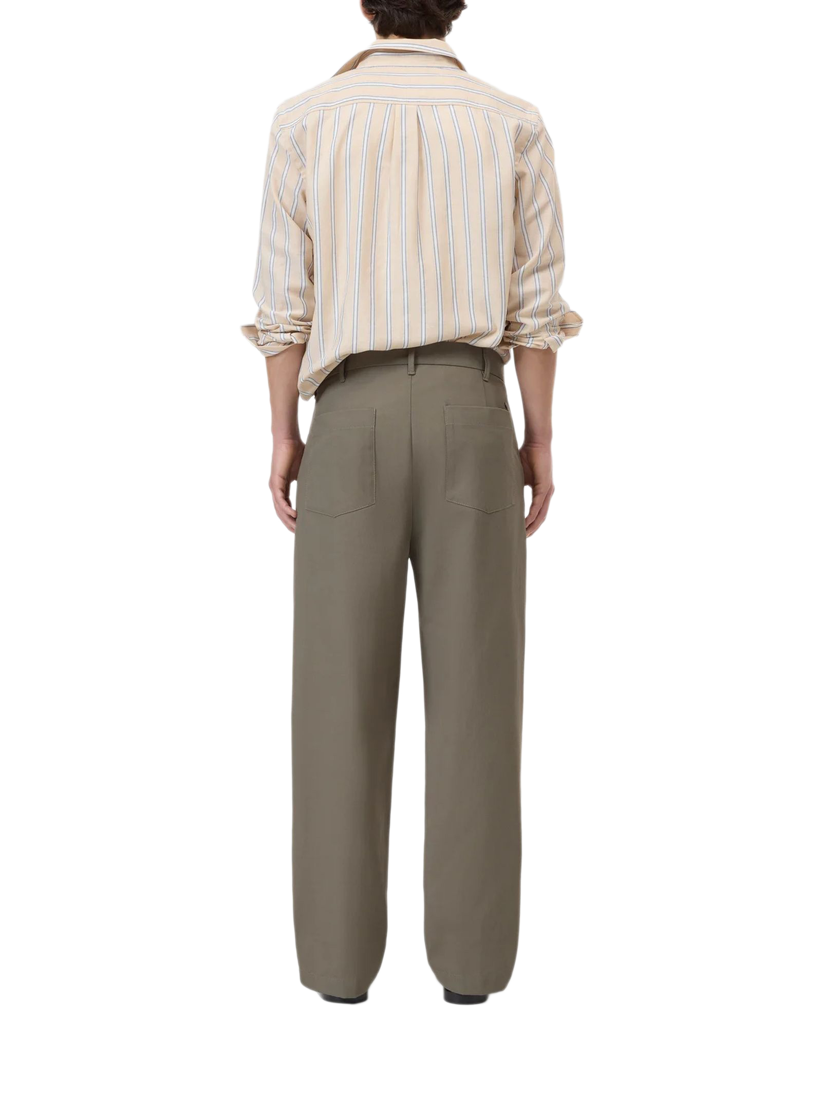 Pantaloni Bloomberg Straight In Cotone Verde, Chiusura Con Gancio E Occhiello Nascosti Sul Davanti, Pieghe In Vita E Tasche Posteriori Ispirate All'abbigliamento Da Lavoro, Trama Twill E Una Finitura Pulita