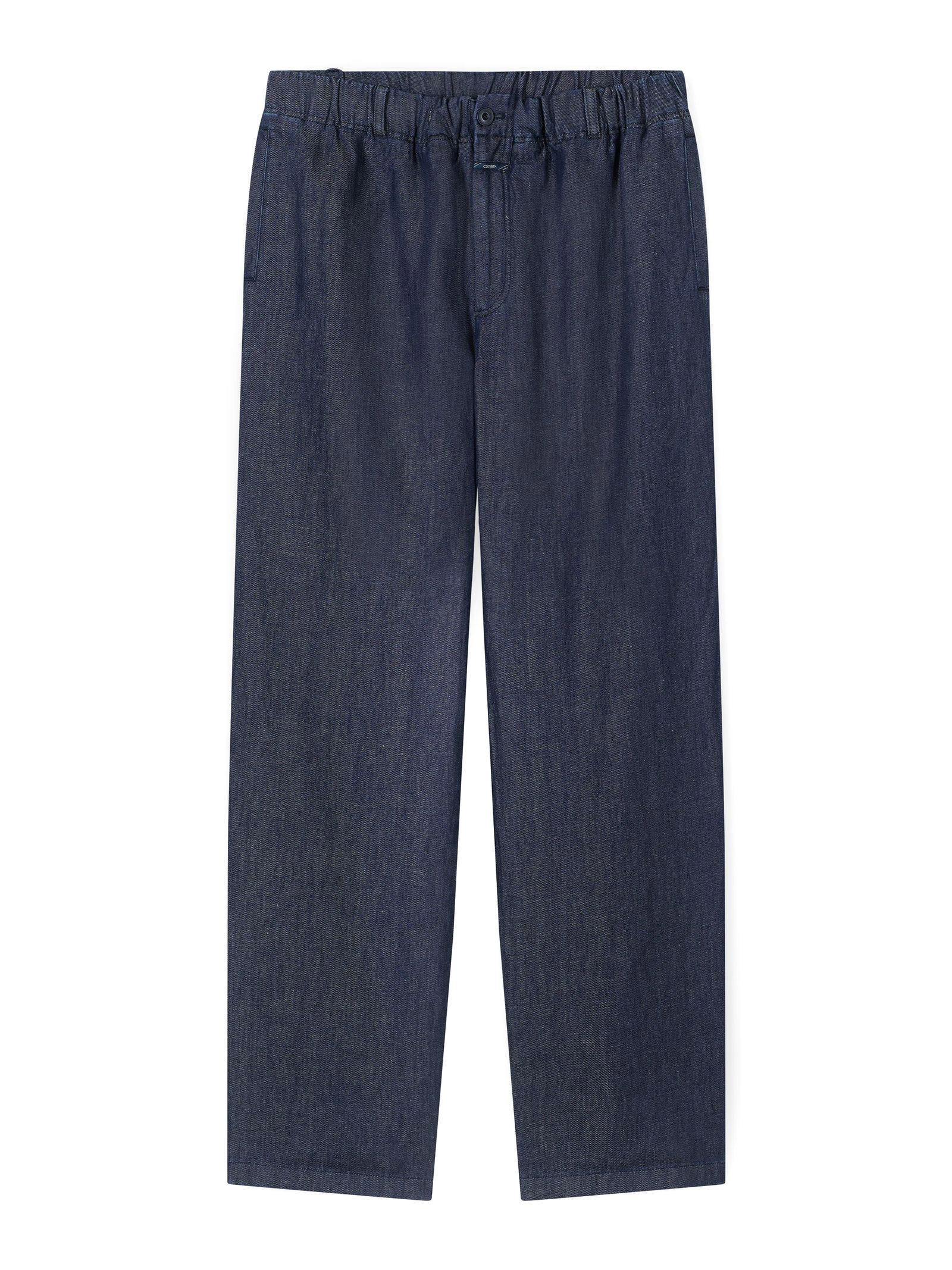 Pantaloni comodi modello Tropea, con vita media, caratterizzati da una cintura elasticizzata con coulisse e da una tasca posteriore in stile workwear, misto cotone e lino