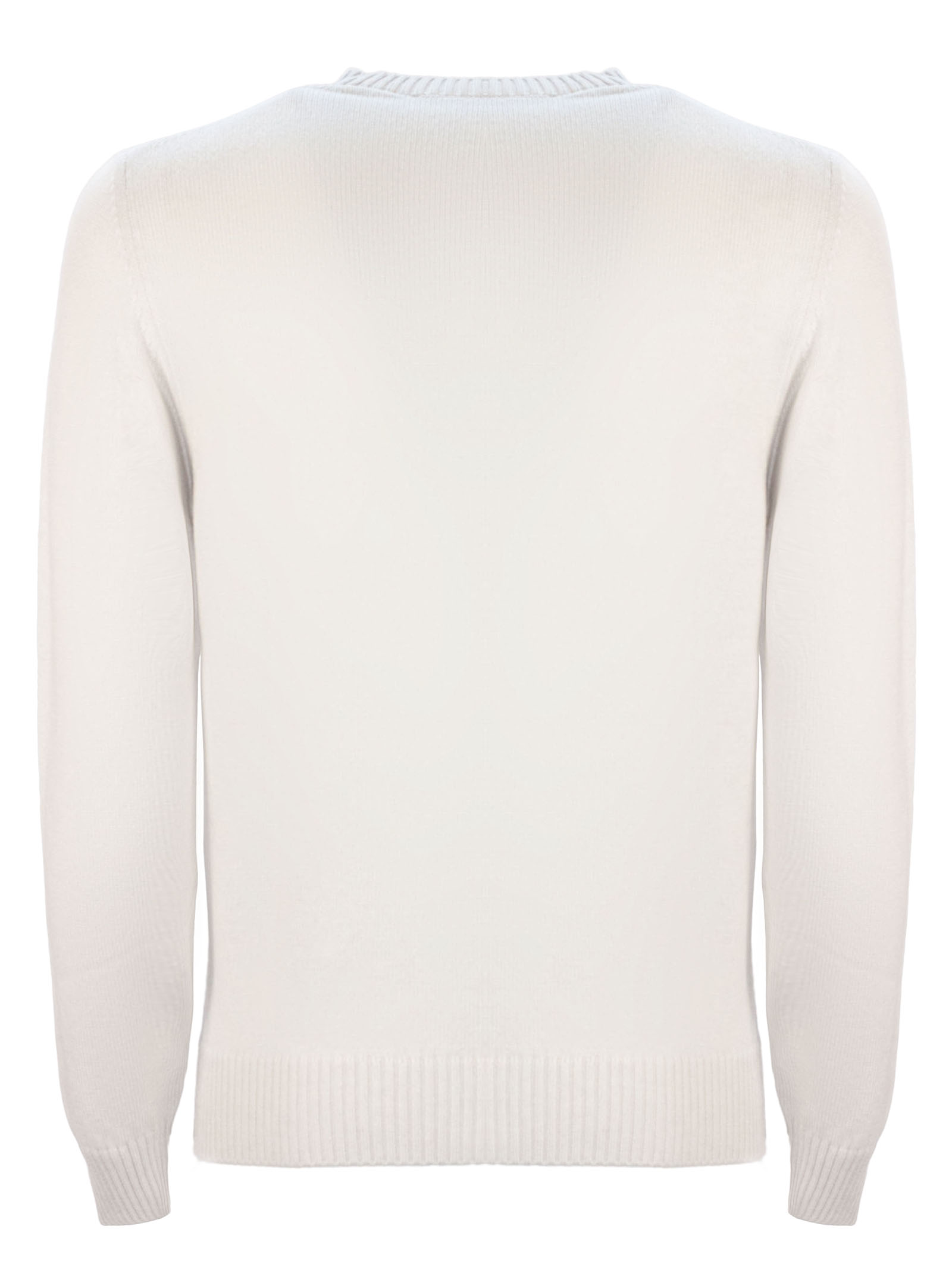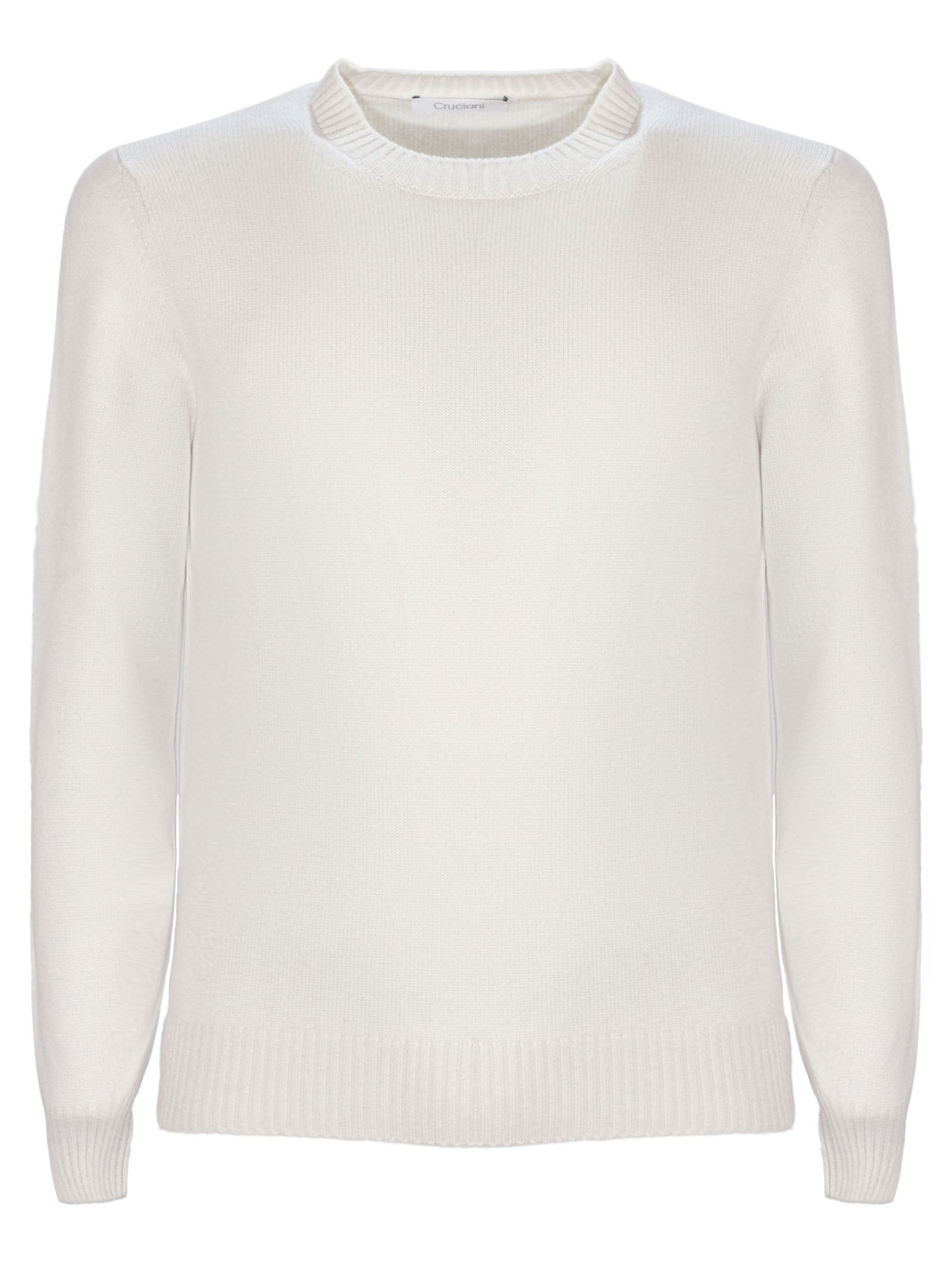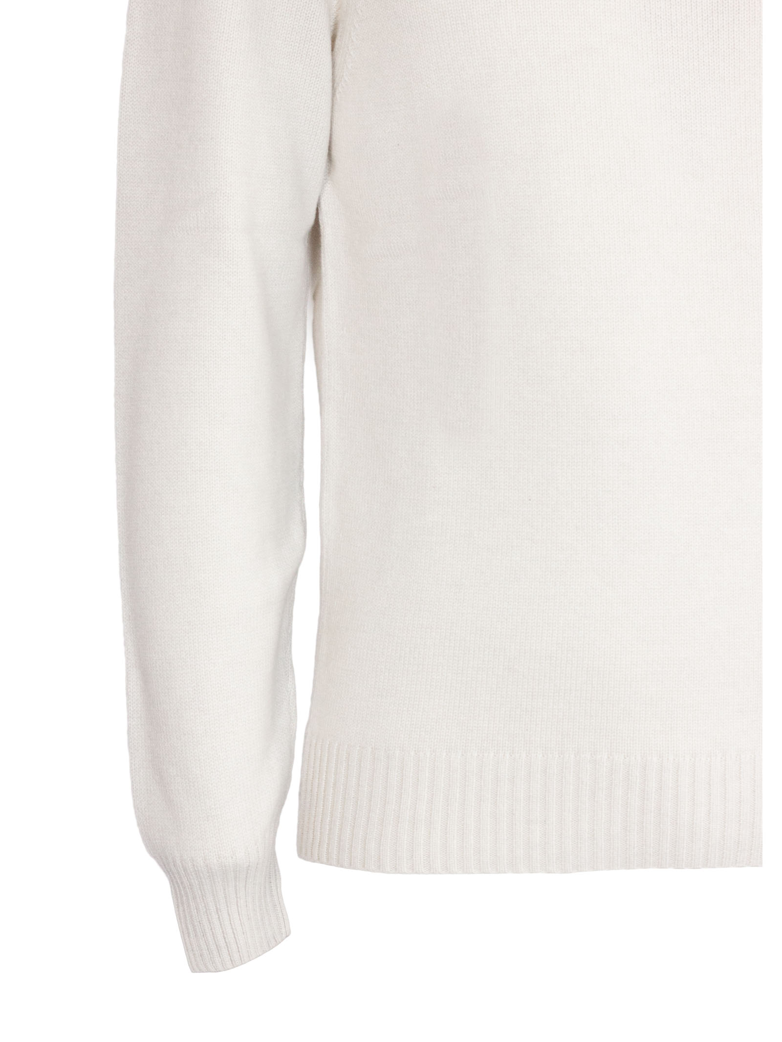 Maglia in cashmere beige con girocollo, maniche lunghe, finiture a coste