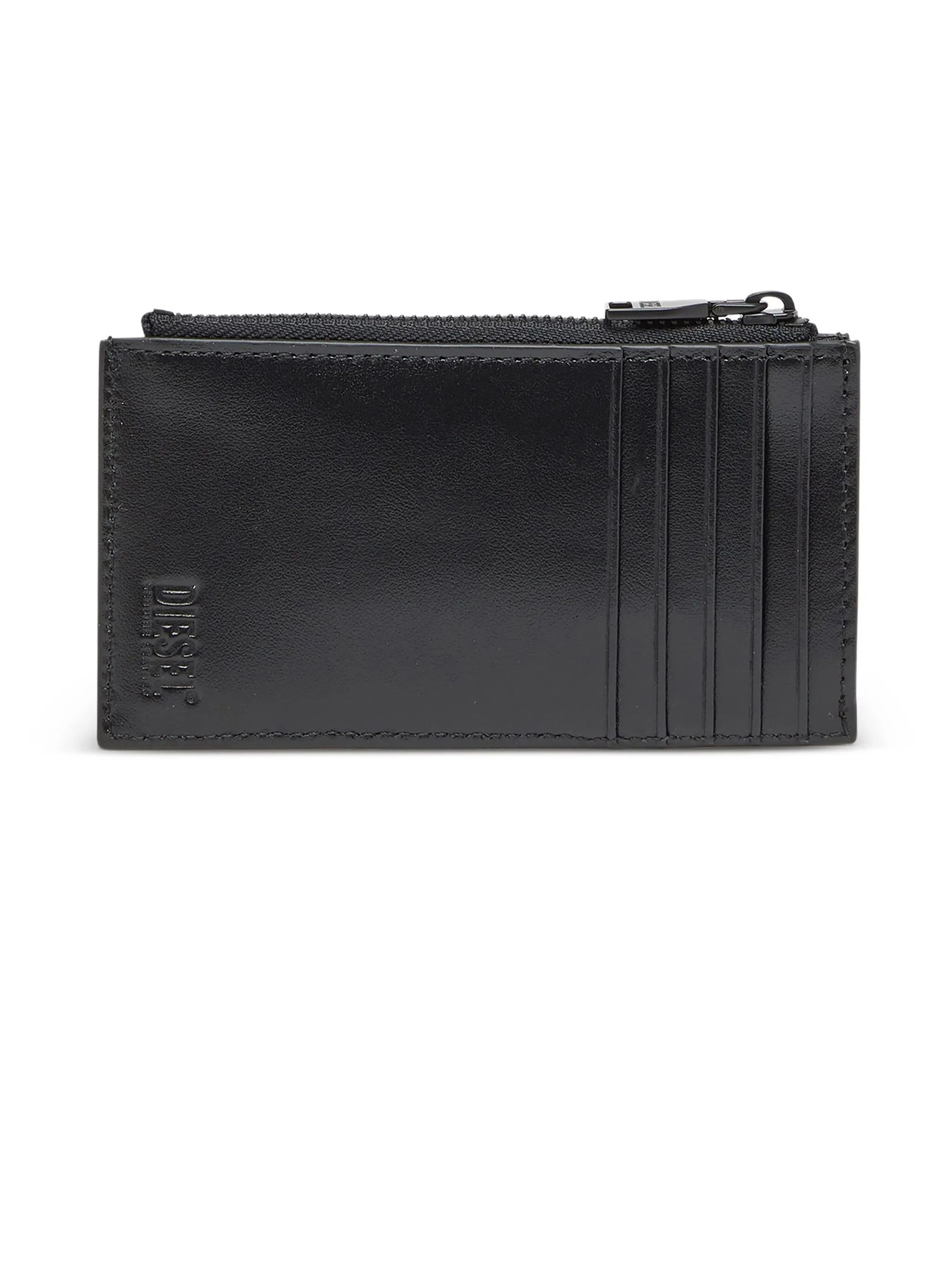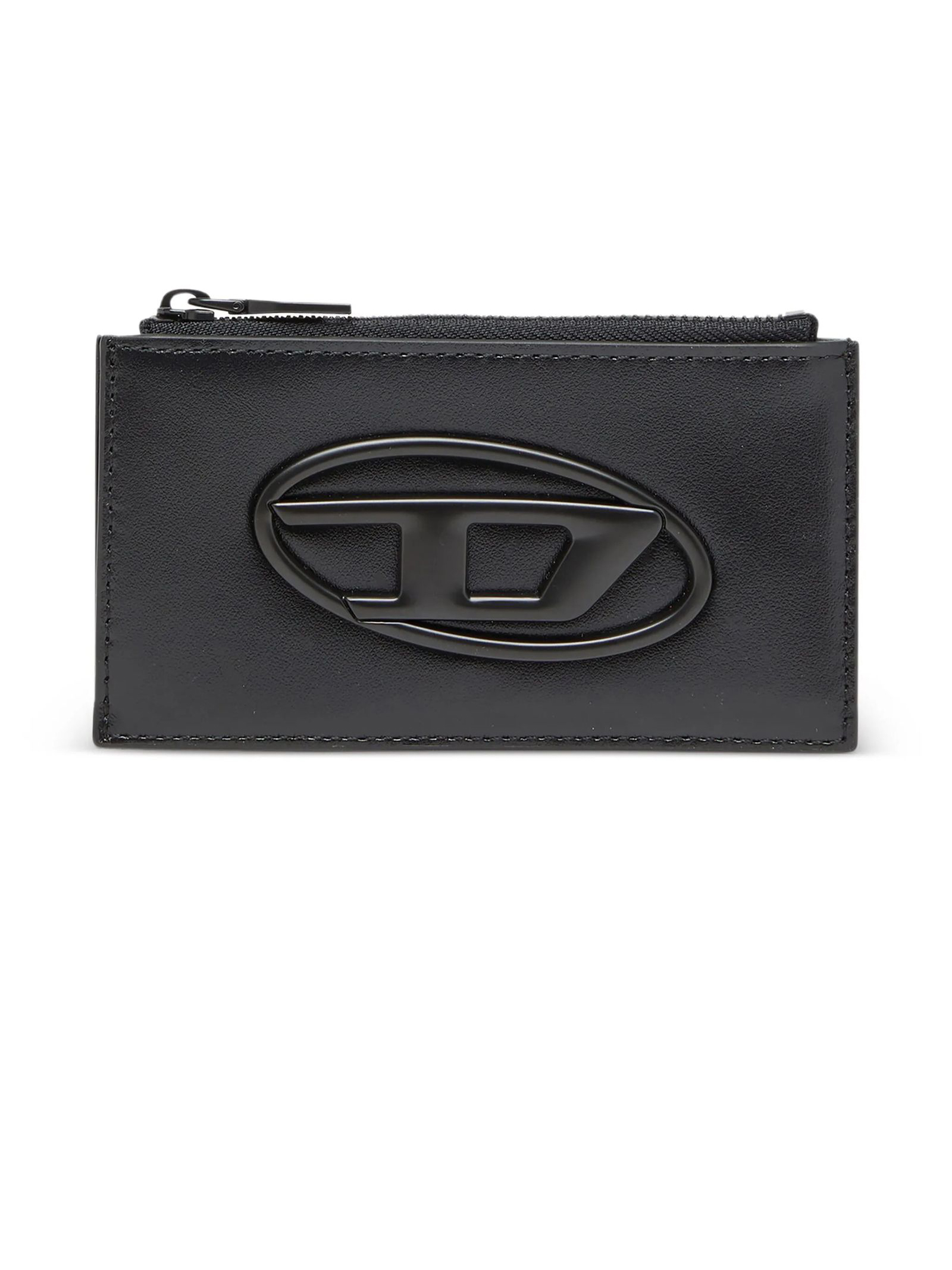 Portacarte in pelle nera, composto da diversi slot per carte e una tasca zip per monete o banconote ripiegate. Completato da logo Oval D in metallo tono su tono, portamonete con chiusura a zip, 5 spazi per carte, Profondità 1,5 cm, Lunghezza 7,5 cm, Largh