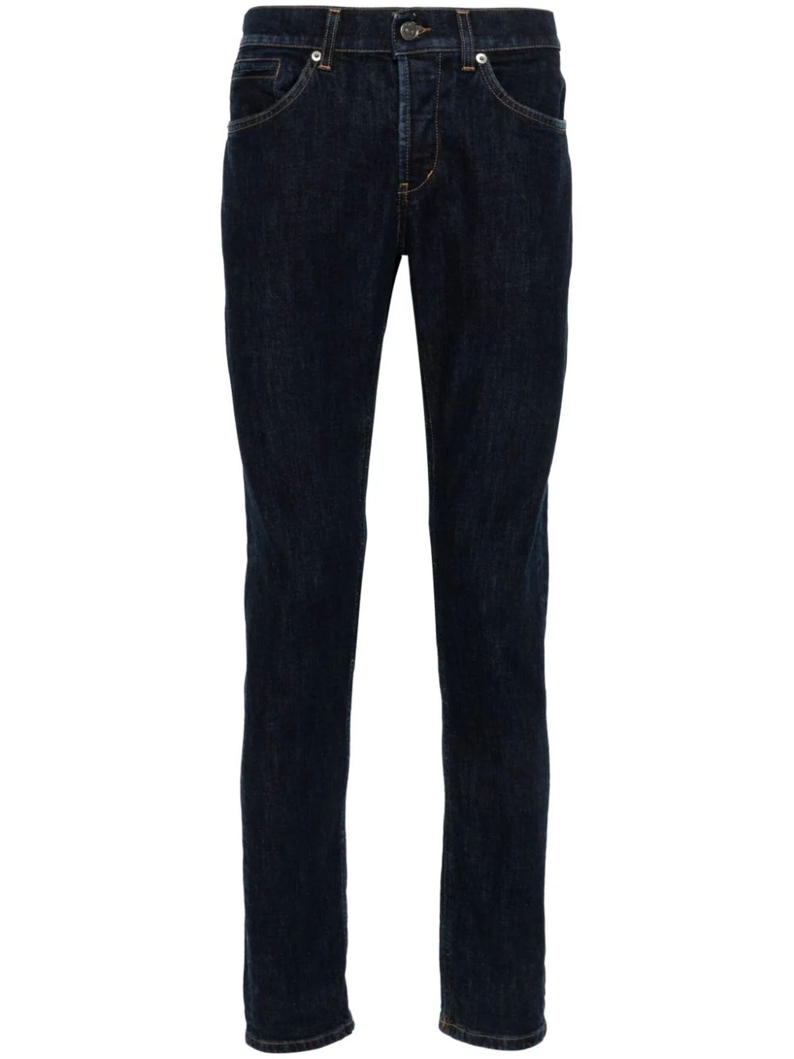 Jeans skinny George in misto cotone blu, denim, lavaggio scuro, cuciture a contrasto, passanti, design classico a cinque tasche, taglio skinny, chiusura con bottoni
