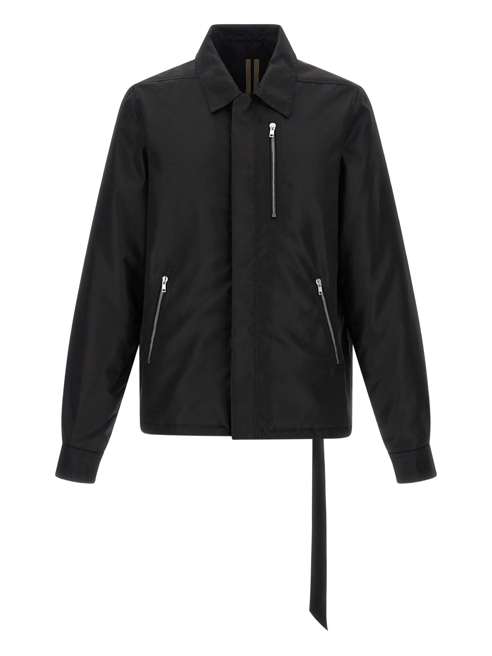 Giacca-camicia in nylon nero con chiusura con zip nascosta, colletto in stile camicia, maniche con polsini, tasche con zip