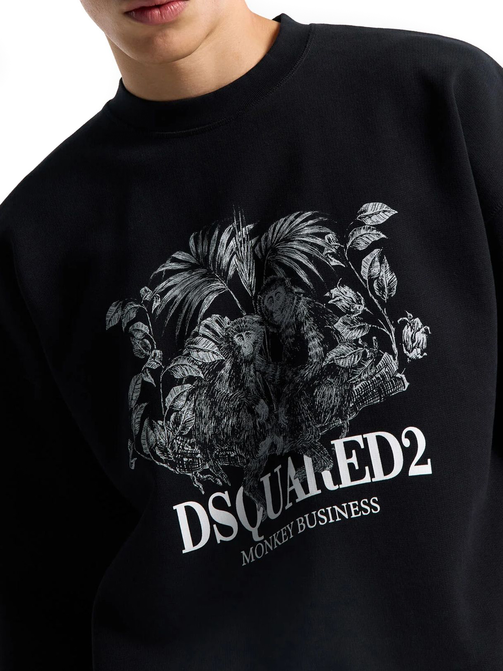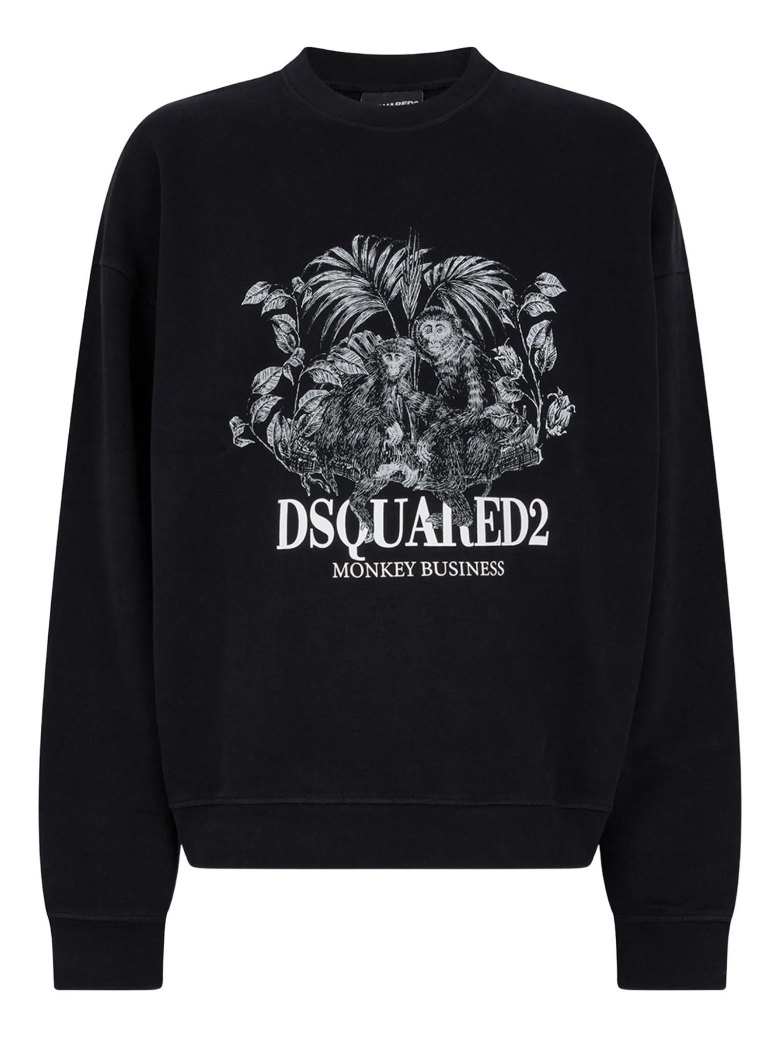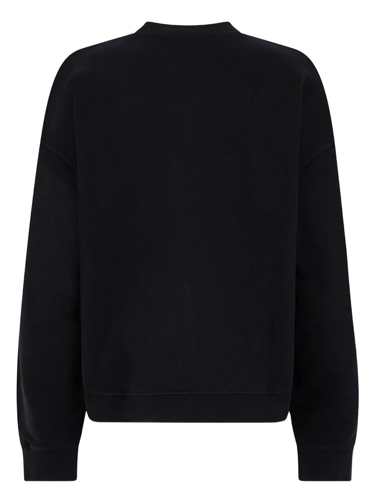 Felpa in cotone nero con stampa grafica, girocollo, maniche lunghe, orlo a coste, orli a coste